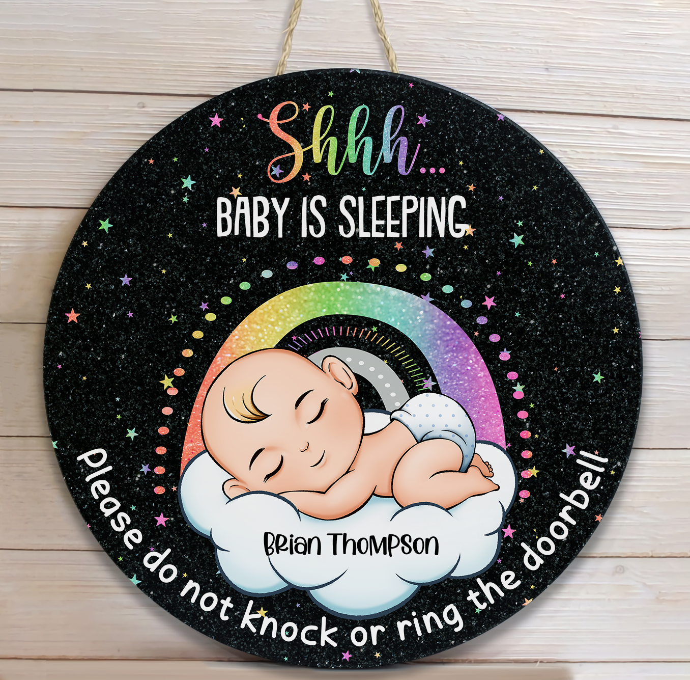 This personalized wood sign is the perfect gift for a birthday, baby shower, or new housewarming. It's a great way to welcome your new family member with a personalized character representing the sleeping baby.