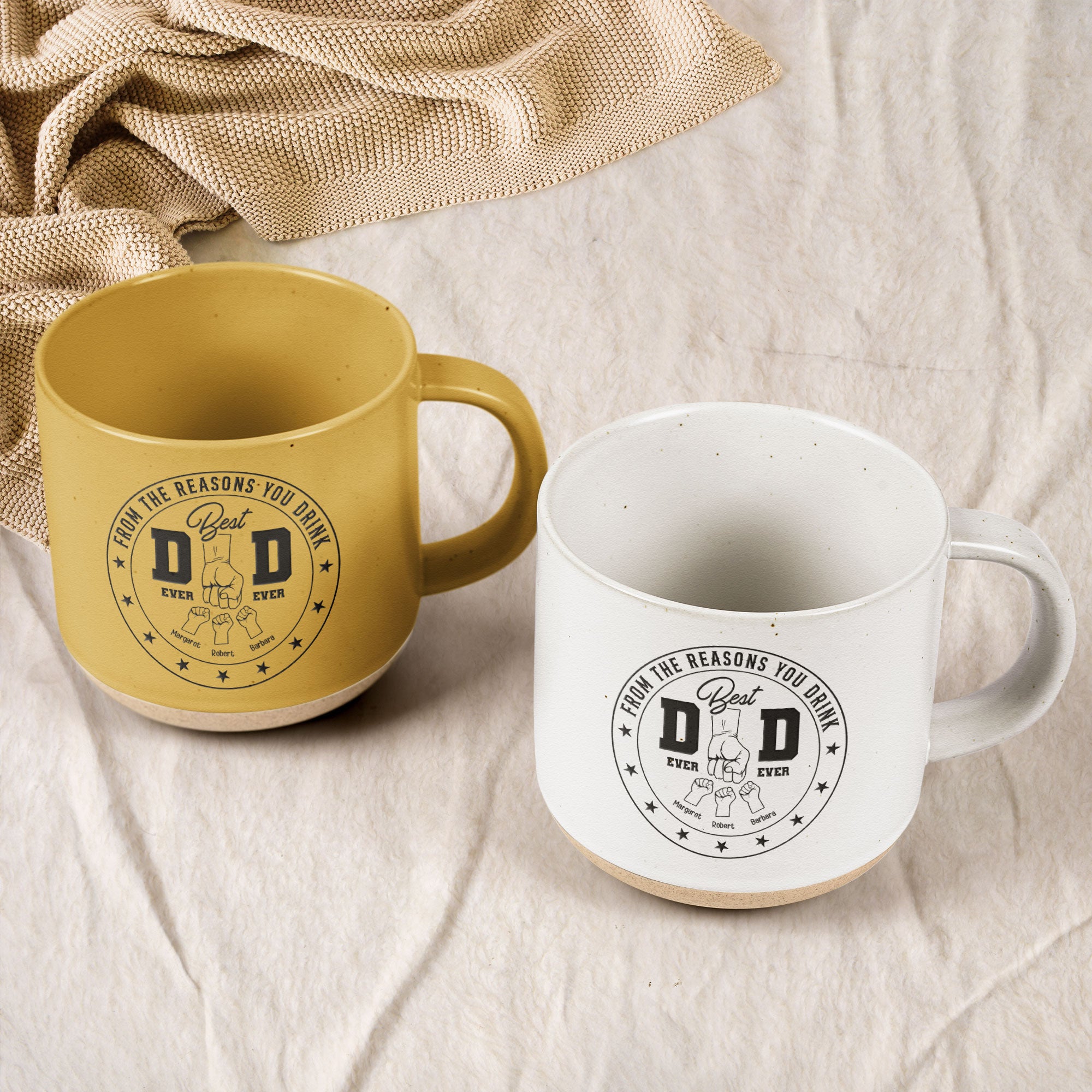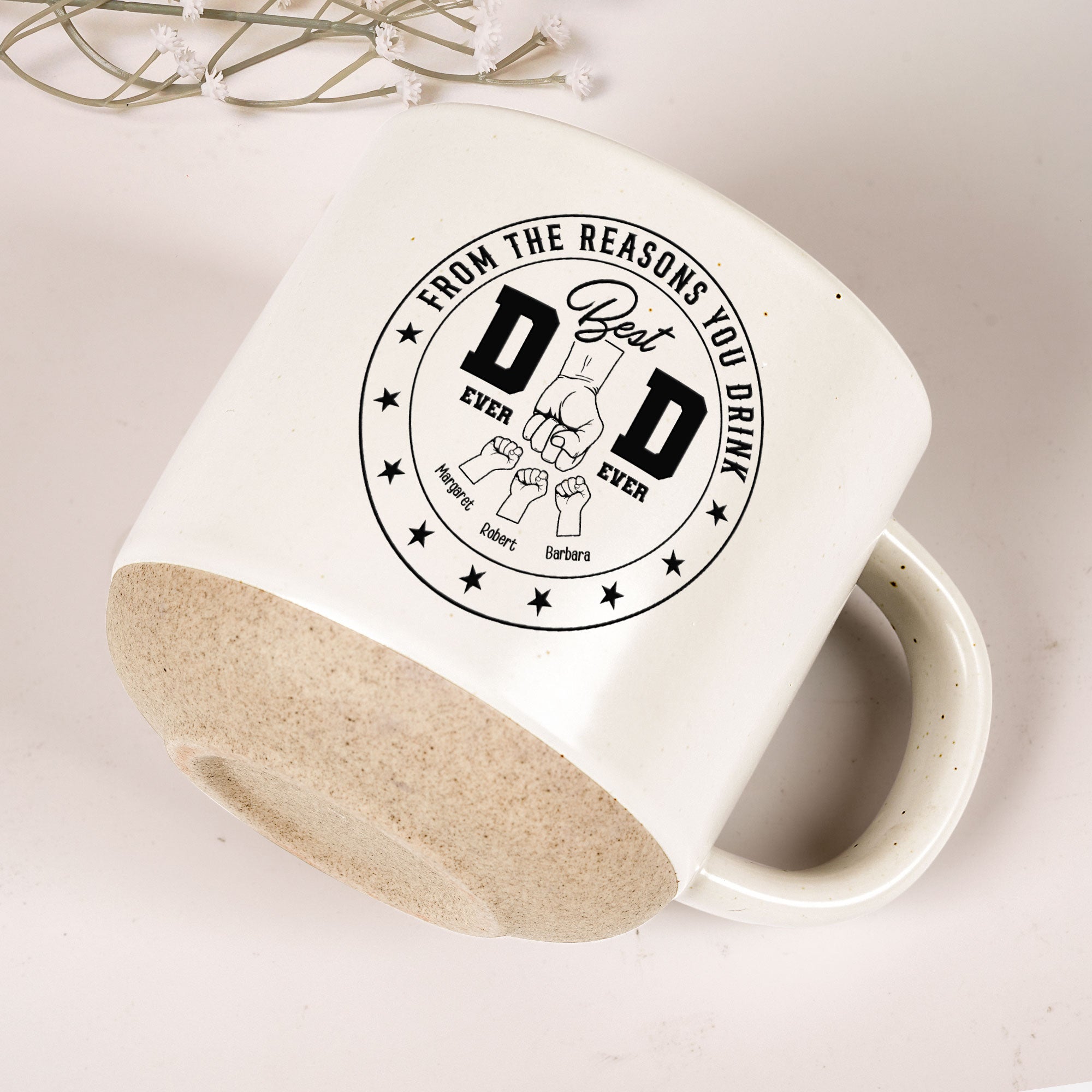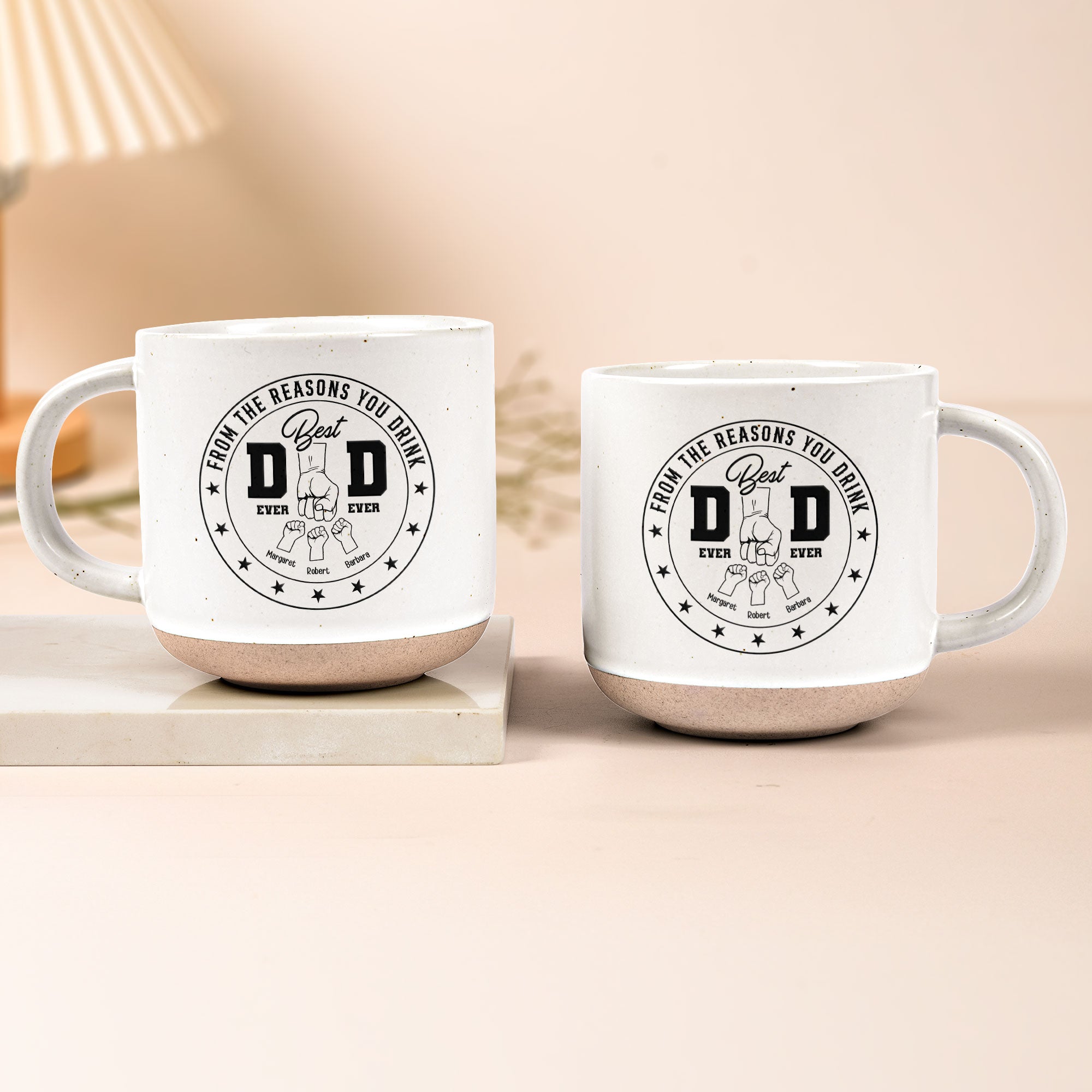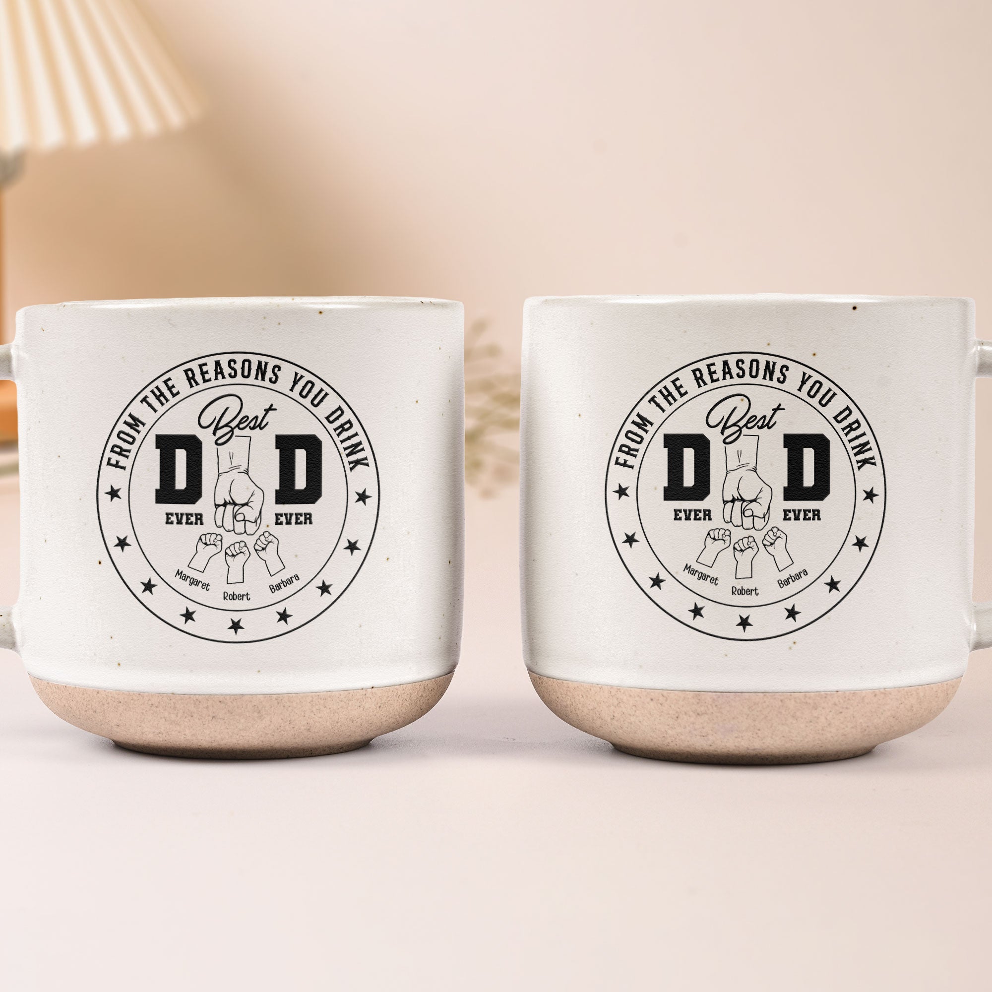 Best Dad Ever Ever From the Reasons You Drink - Personalized Pottery Mug. Give Dad a laugh with this funny and heartfelt pottery mug, showcasing the text "Best Dad Ever...From the Reasons You Drink" along with the personalized names of his kids. A perfect balance of humor and love, this mug makes every sip extra special.