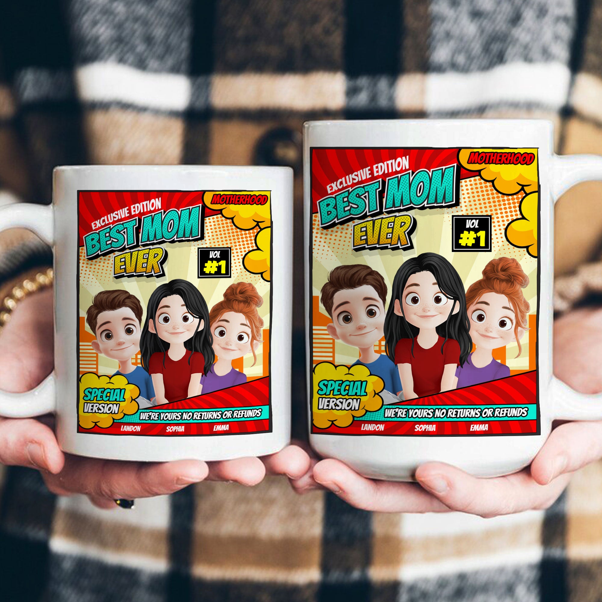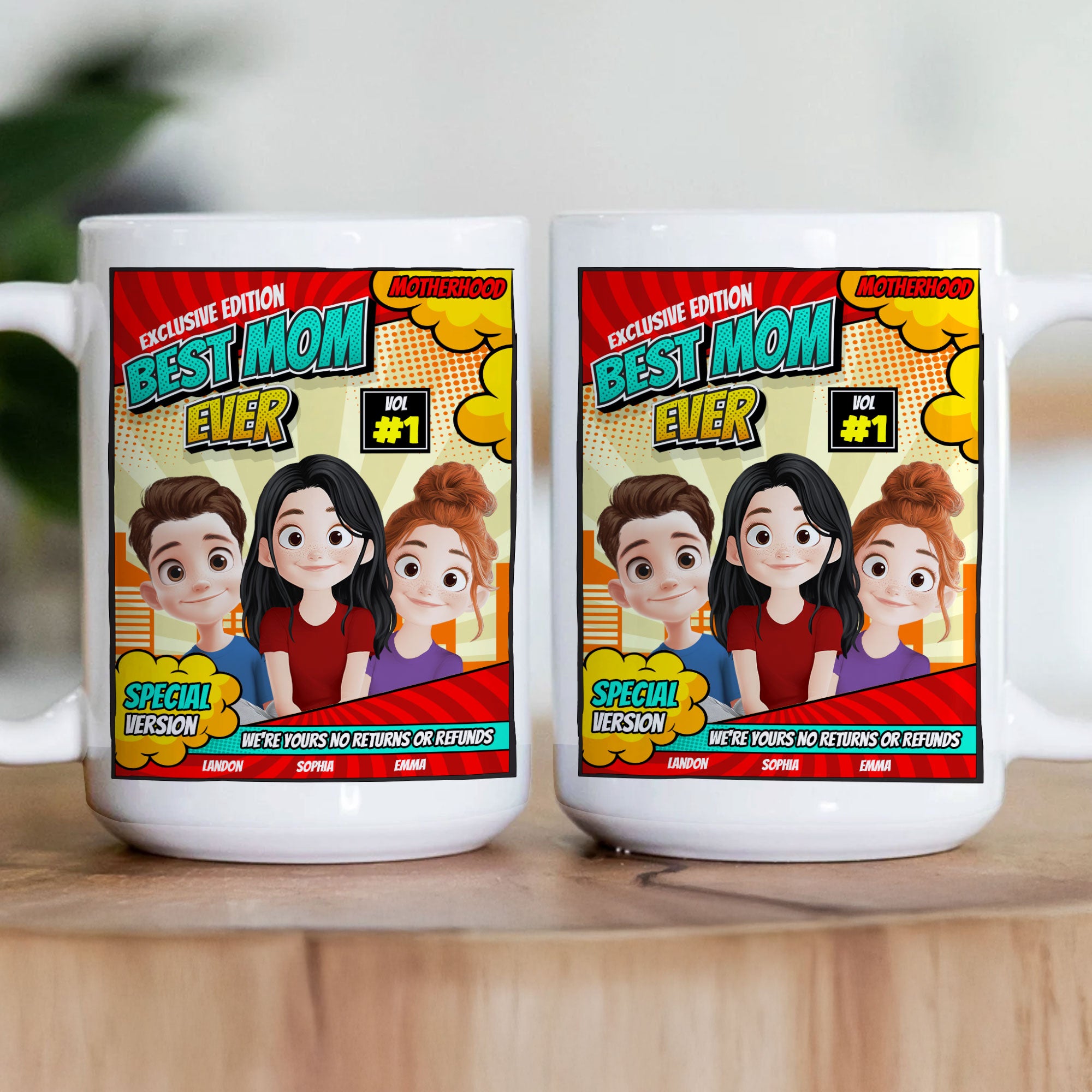 Make Mom laugh every morning with this Best Mom Ever - We're Yours No Returns or Refunds personalized coffee mug! A funny yet heartfelt gift from kids, this mug is perfect for Mother’s Day, birthdays, Christmas, or just because. Personalize it with kids’ names to make it even more special! Whether she loves coffee, tea, or hot cocoa, this custom mom mug is a daily reminder of how much she’s loved no exchanges allowed! The high-quality ceramic design ensures long-lasting use, making it a thoughtful and practical gift for moms, new moms, stepmoms, or mother figures who deserve a smile with every sip.