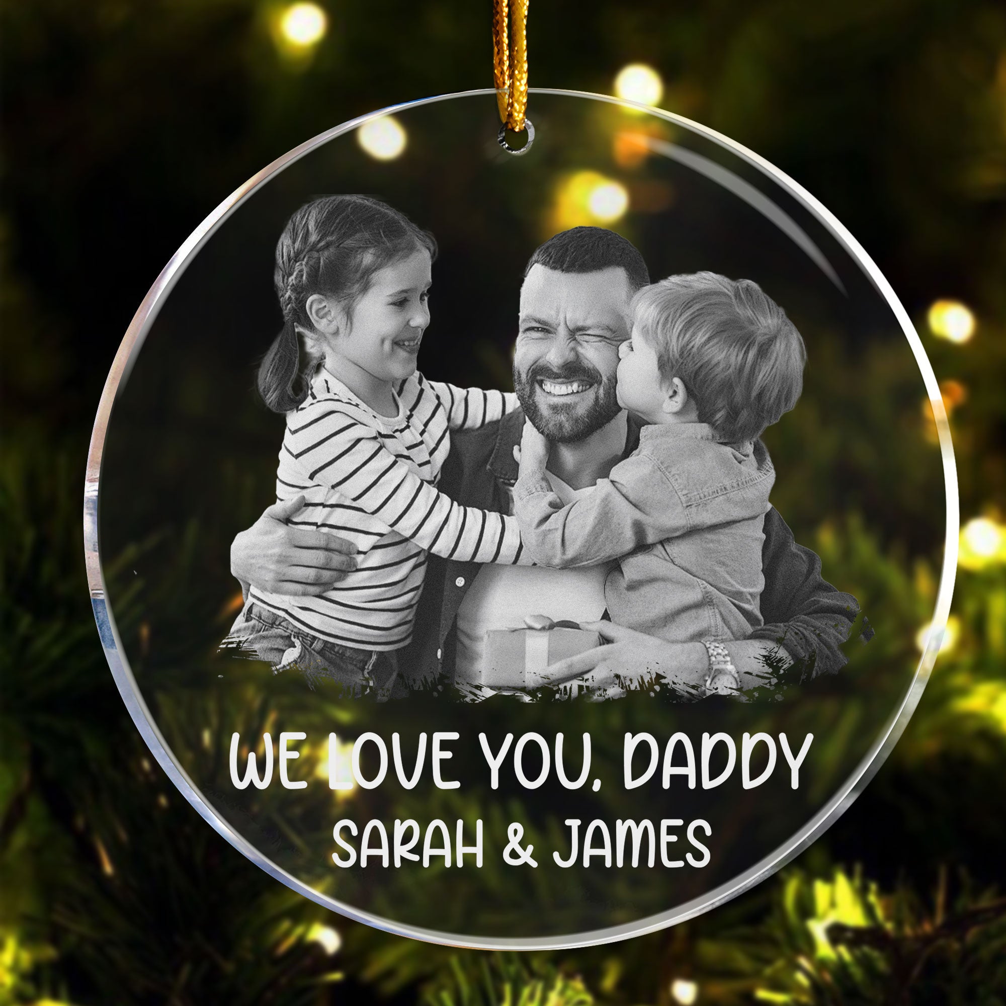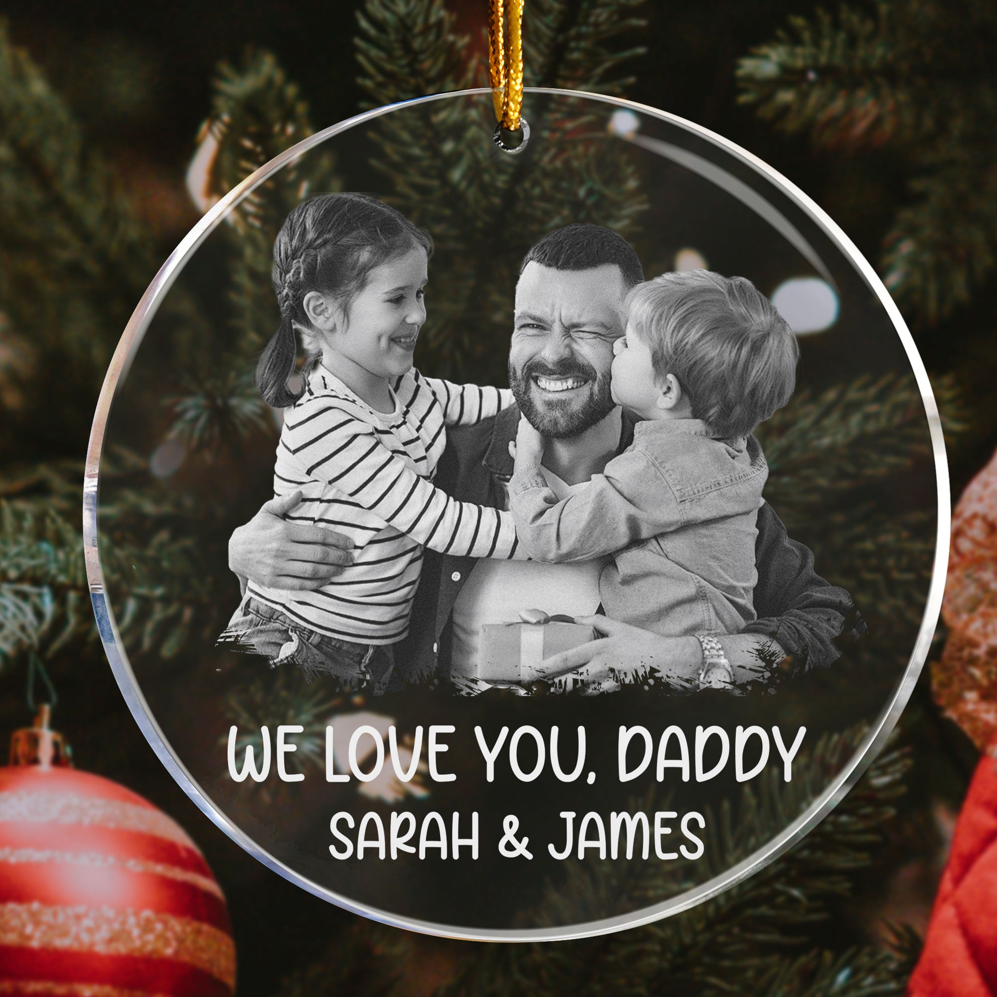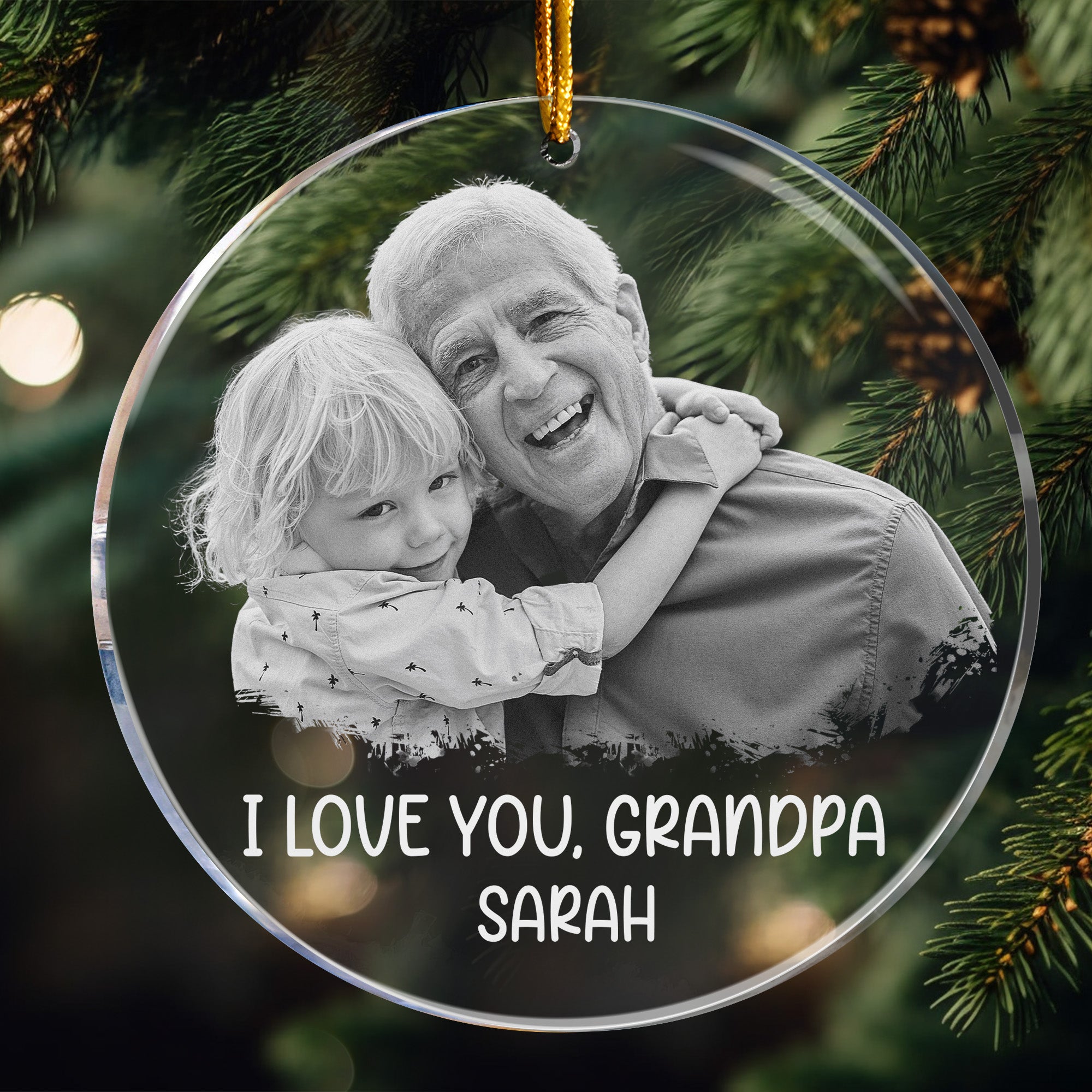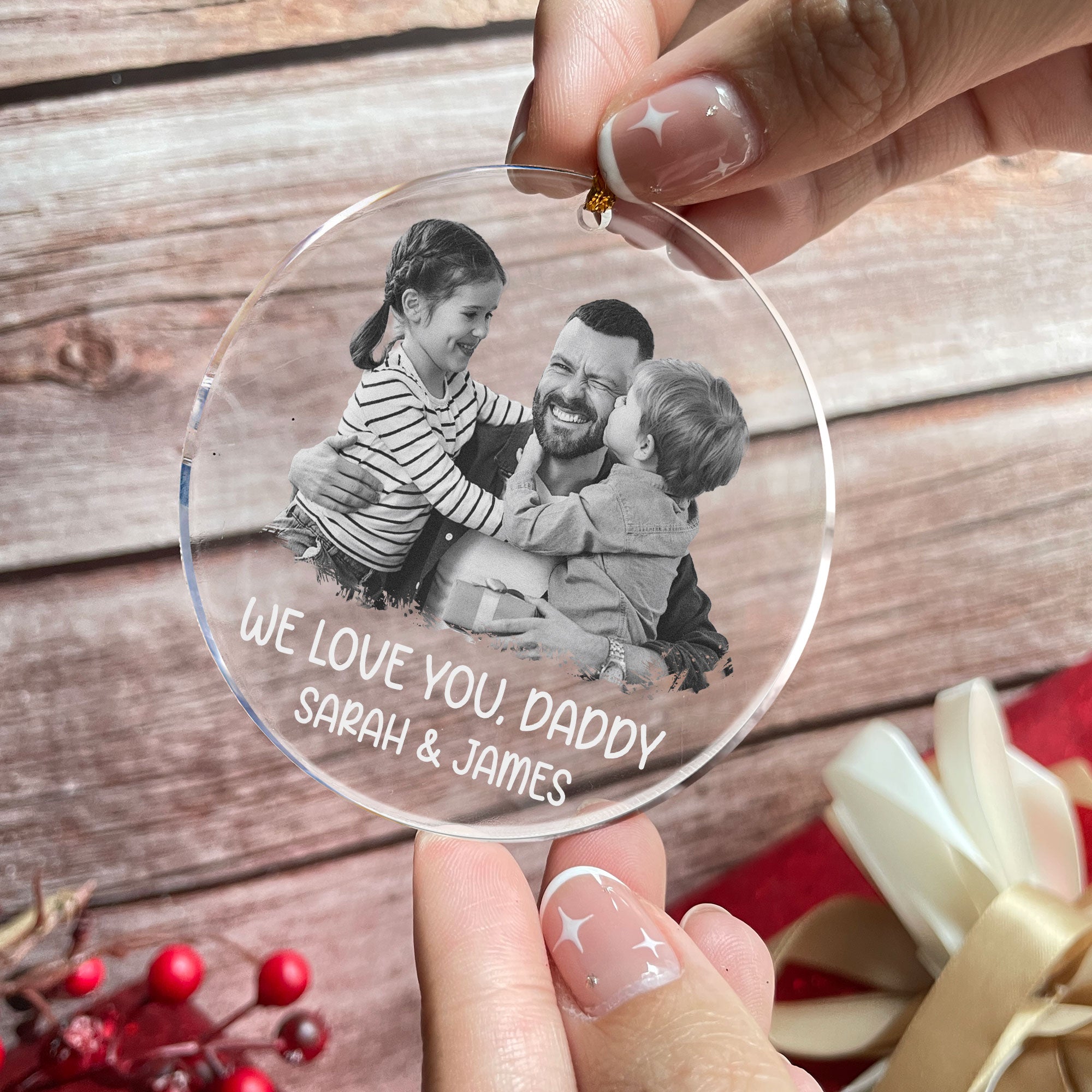 Celebrate the special bond with Grandpa or Dad this holiday season with our Personalized Custom Photo Ornament, a heartfelt gift that captures cherished memories. Customize it with a favorite photo and a meaningful message to create a keepsake that will be treasured for years to come.