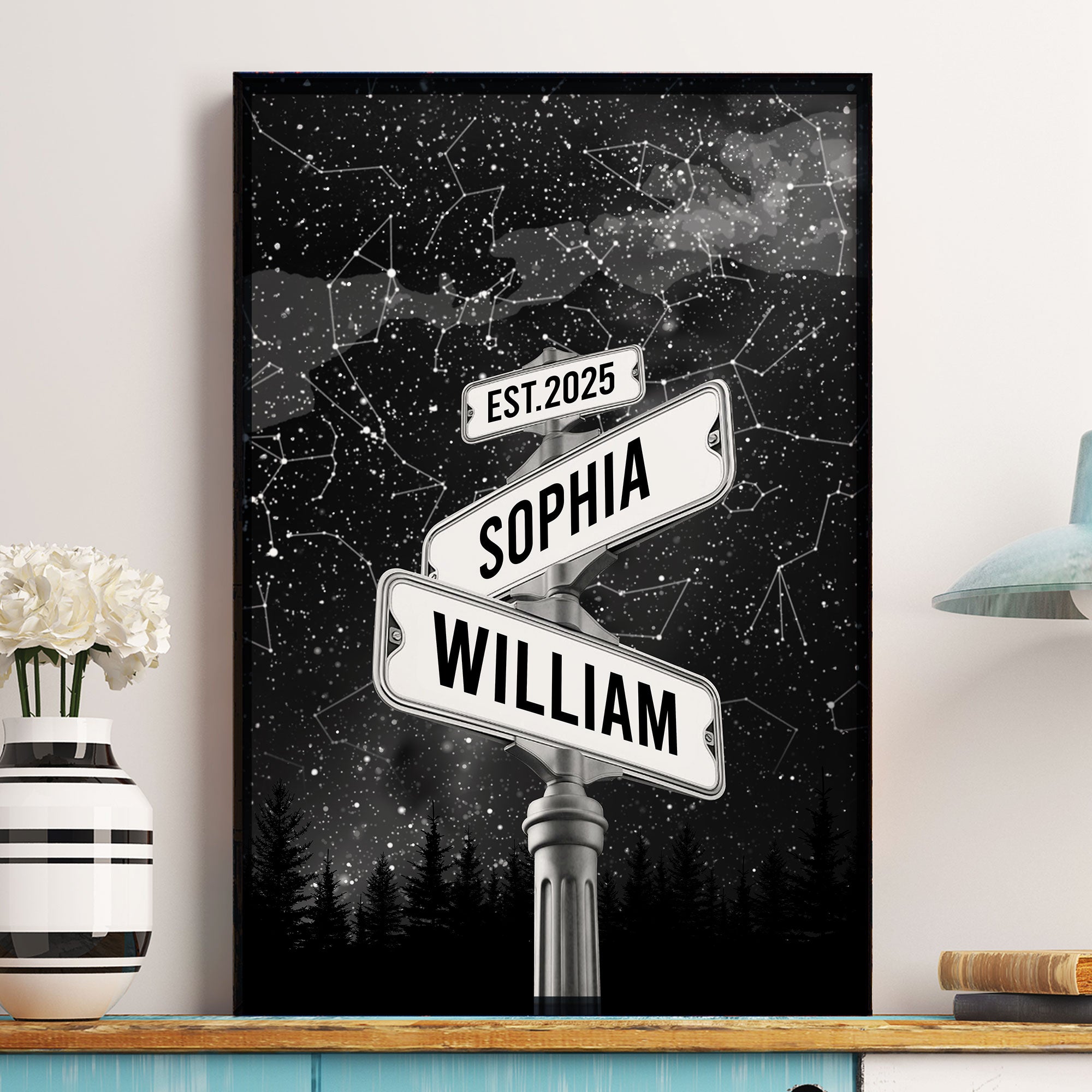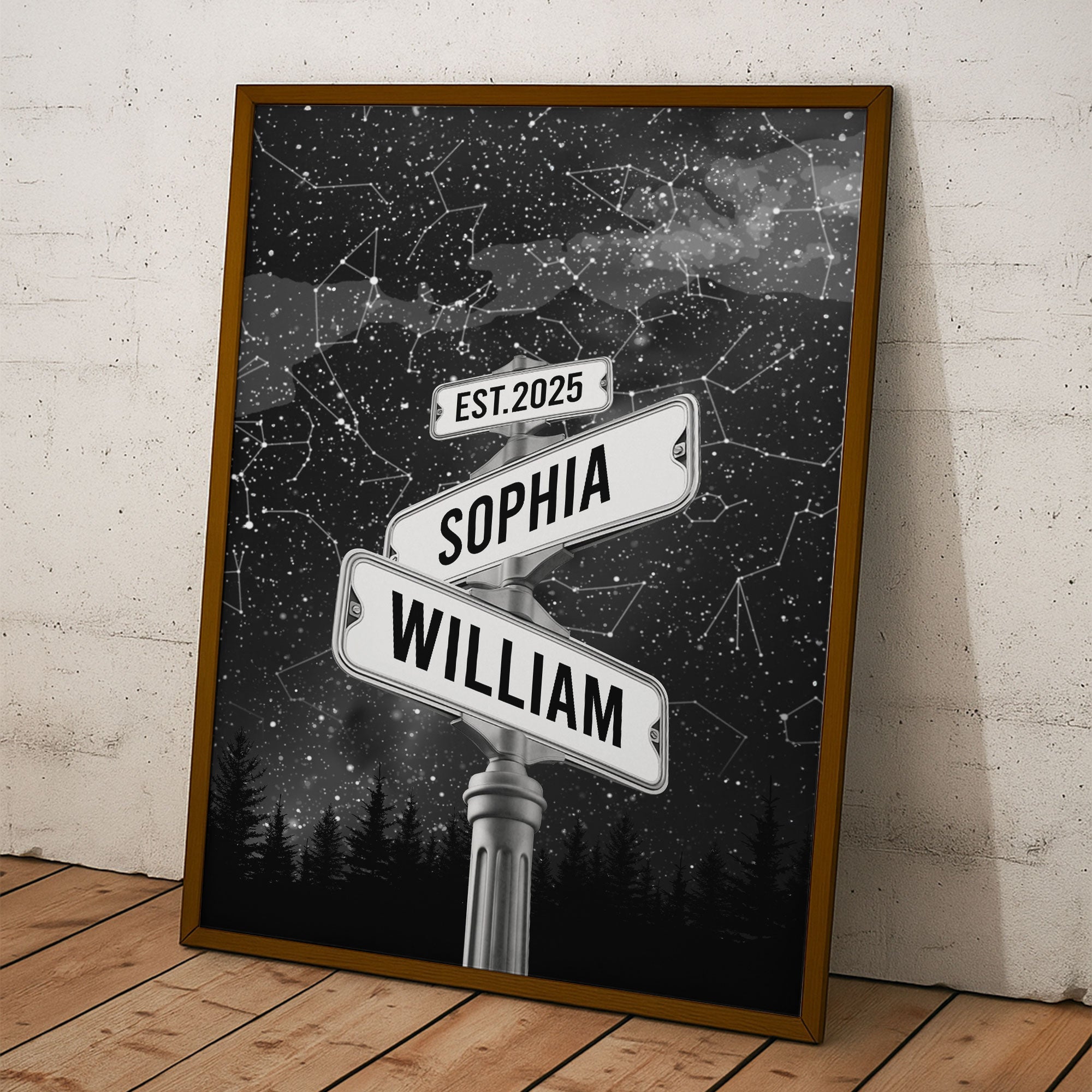 Celebrate love and cherished memories with our Custom Star Map Street Sign Couple Anniversary Gift - a Personalized Poster that is perfect for couples or families. This poster isn't just another piece of art; it's a beautiful representation of the bond and resemblance you share with your loved one. You can commemorate an Anniversary, a special family moment, or simply show your affection, making it the perfect gift for anniversaries, birthdays, or any other special occasion.