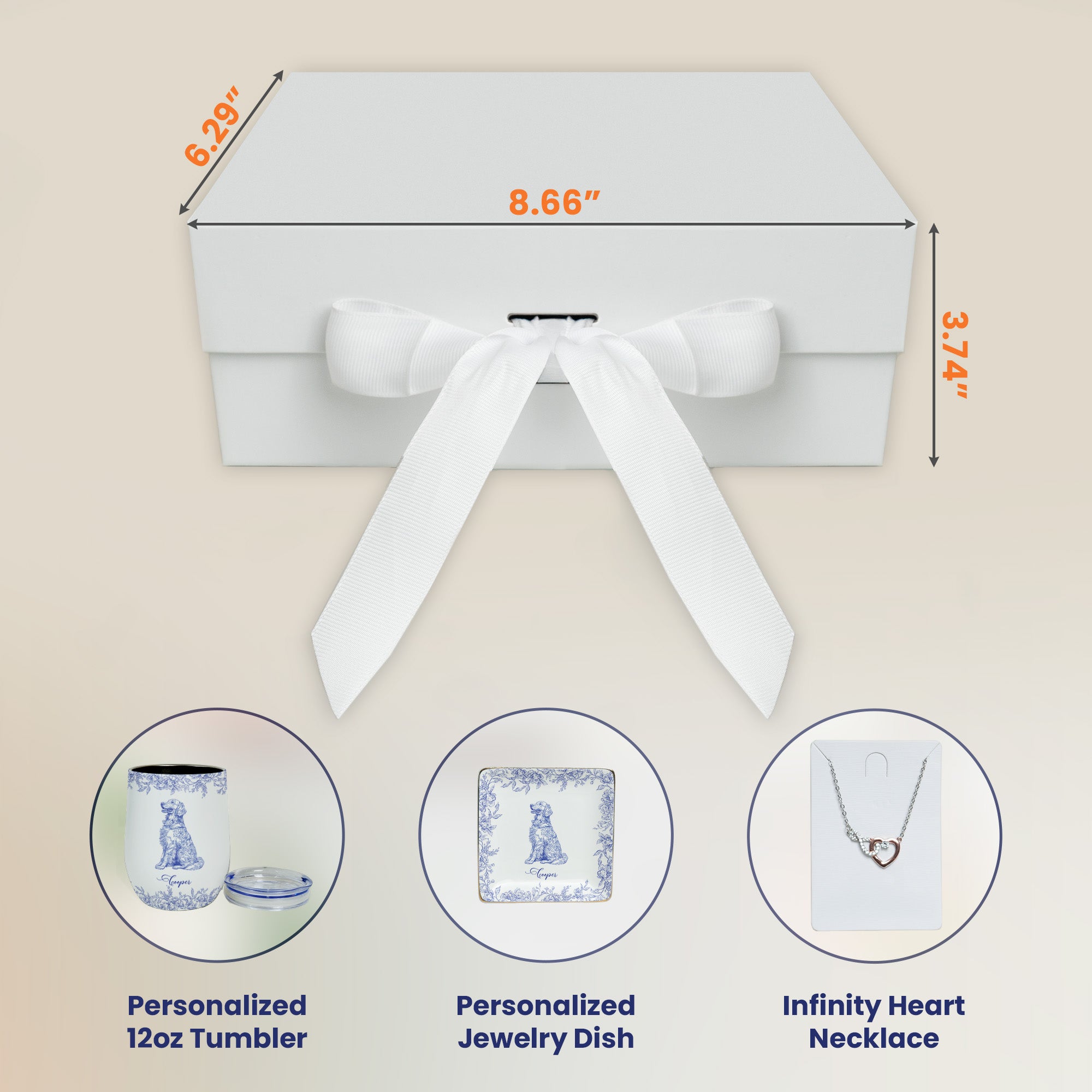 + Personalized Jewelry Dish (3.9 x 3.9 x 0.7 inches): A charming ceramic keepsake tray, perfect for holding rings, earrings, or small accessories.