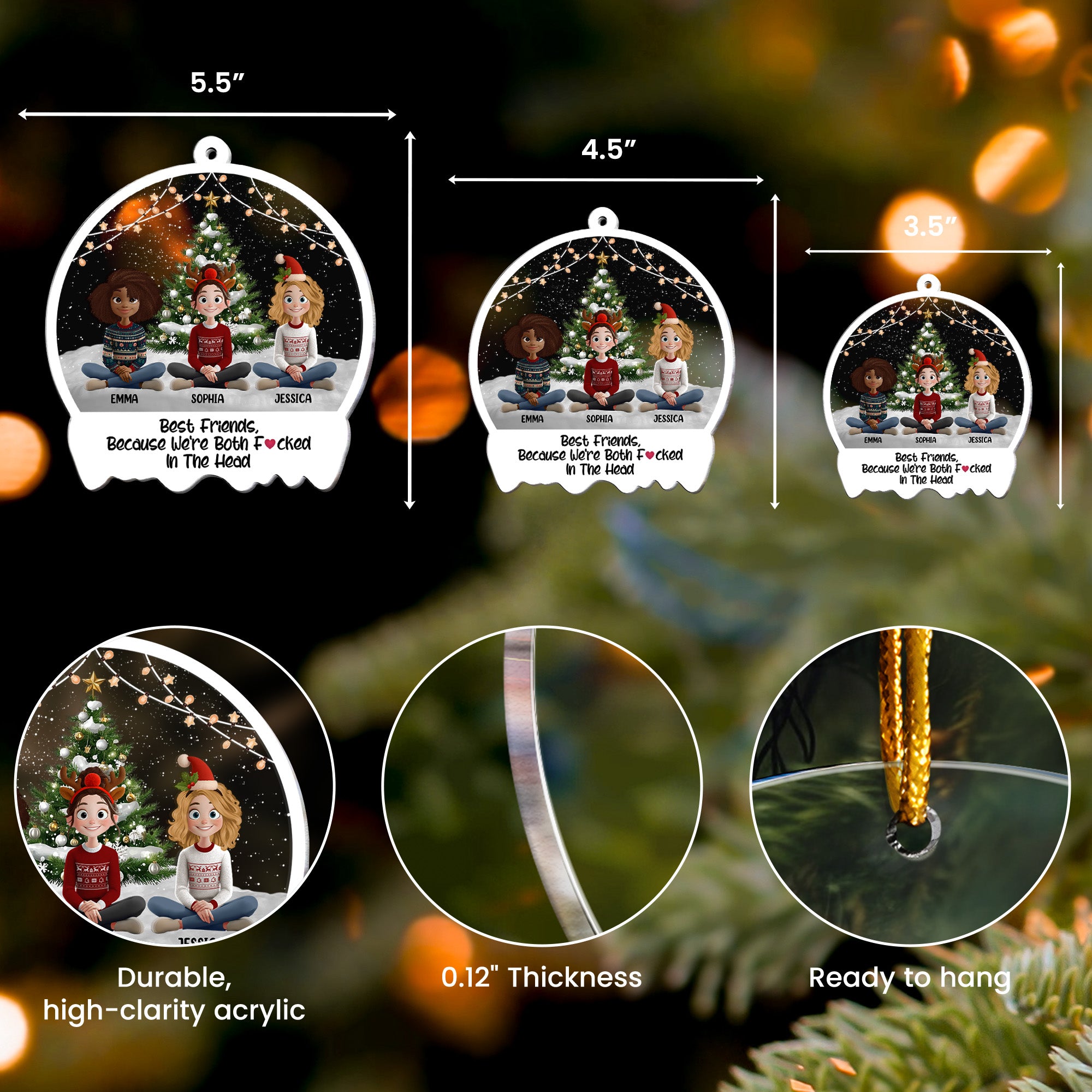 What better gift to give for Christmas, birthdays, or any such occasions than our Funny Christmas Acrylic Ornament? It's perfect for those friends with whom you share a close bond and a good sense of humor. Besides serving as a delightful hanging ornament for the Christmas tree, it doubles as a year-round keepsake, reminding them of the warmth and joy of your friendship. Don't wait till it's too late - order this humorous gift now and make the forthcoming festive season an occasion to remember for your friend.