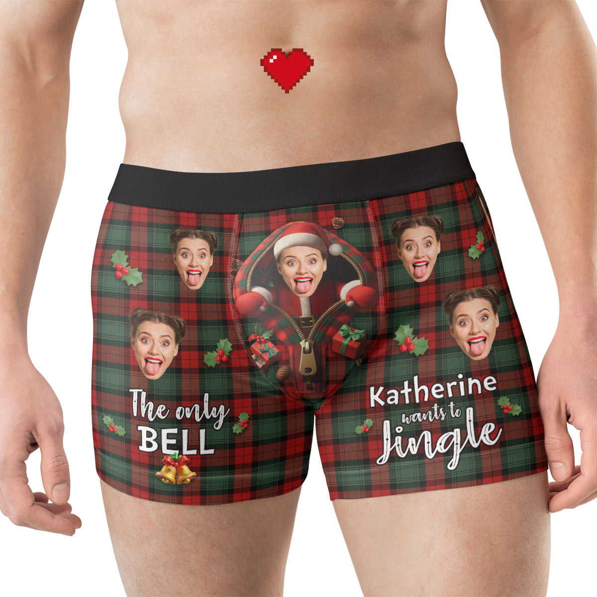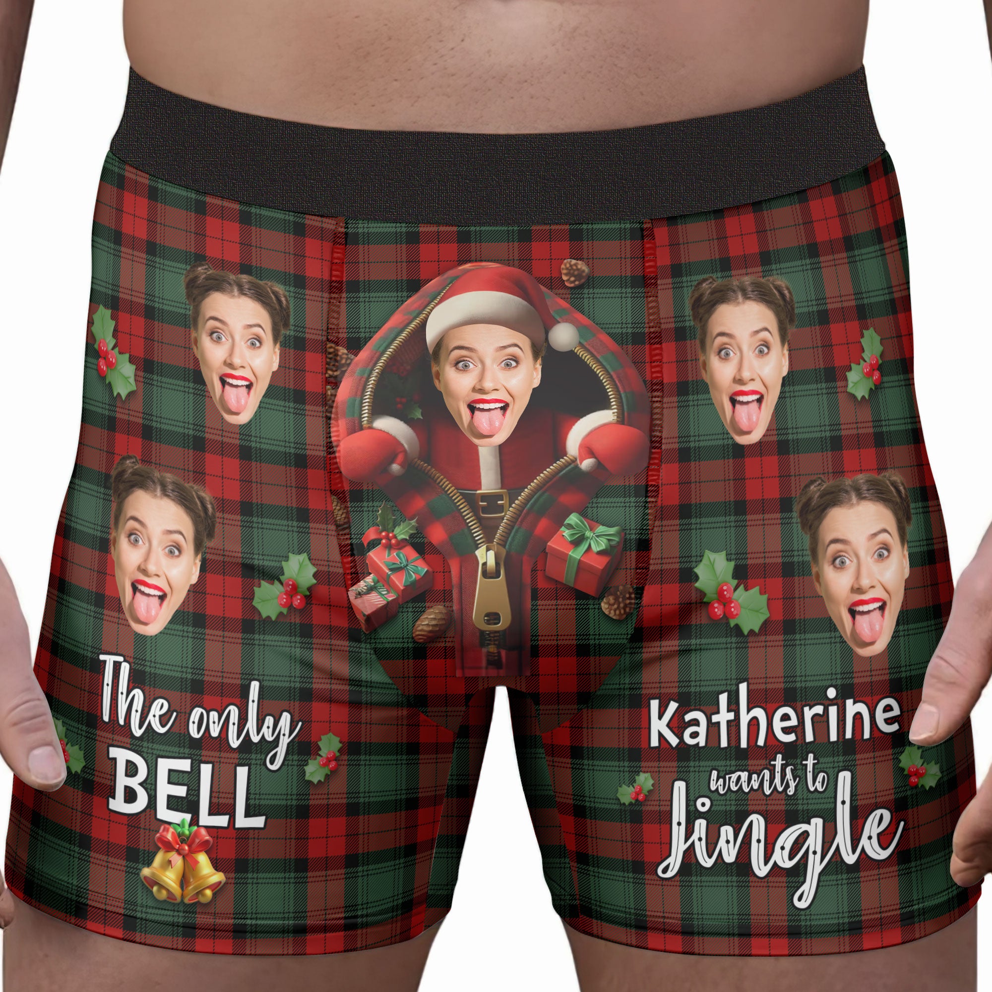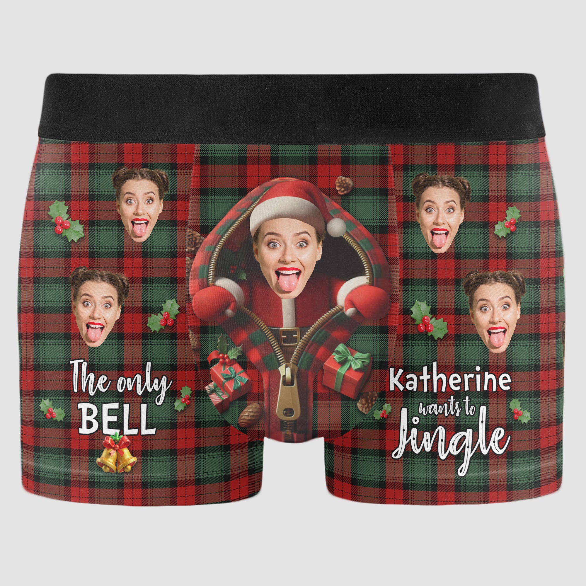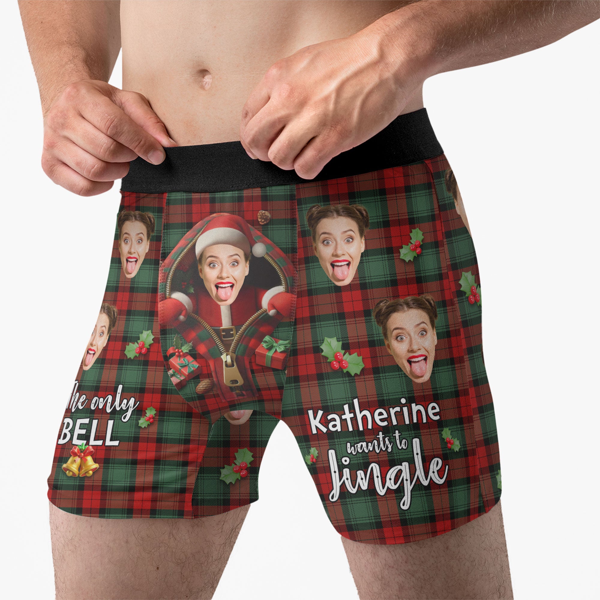Add a dash of humor and holiday cheer to his wardrobe with our Personalized Photo Boxers featuring the playful message, "The only bell wife wants to jingle." These fun and festive boxers are customized with your photo, making them a one-of-a-kind gift that’s both cheeky and heartwarming! Crafted from soft, breathable fabric, they’re designed for all-day comfort with a fit he’ll love.