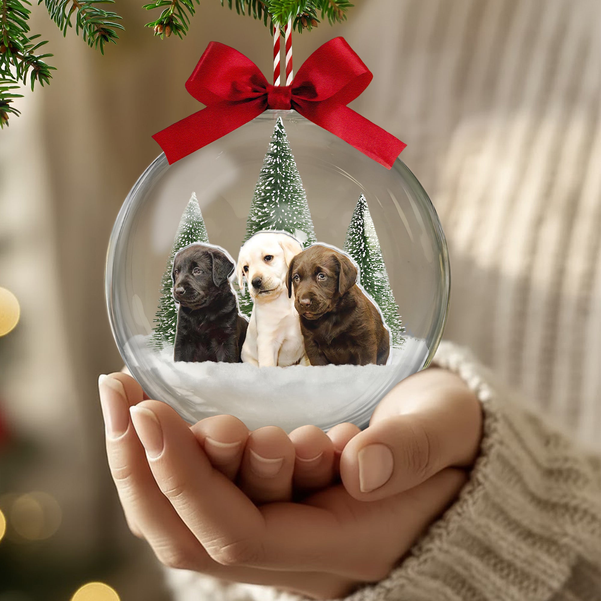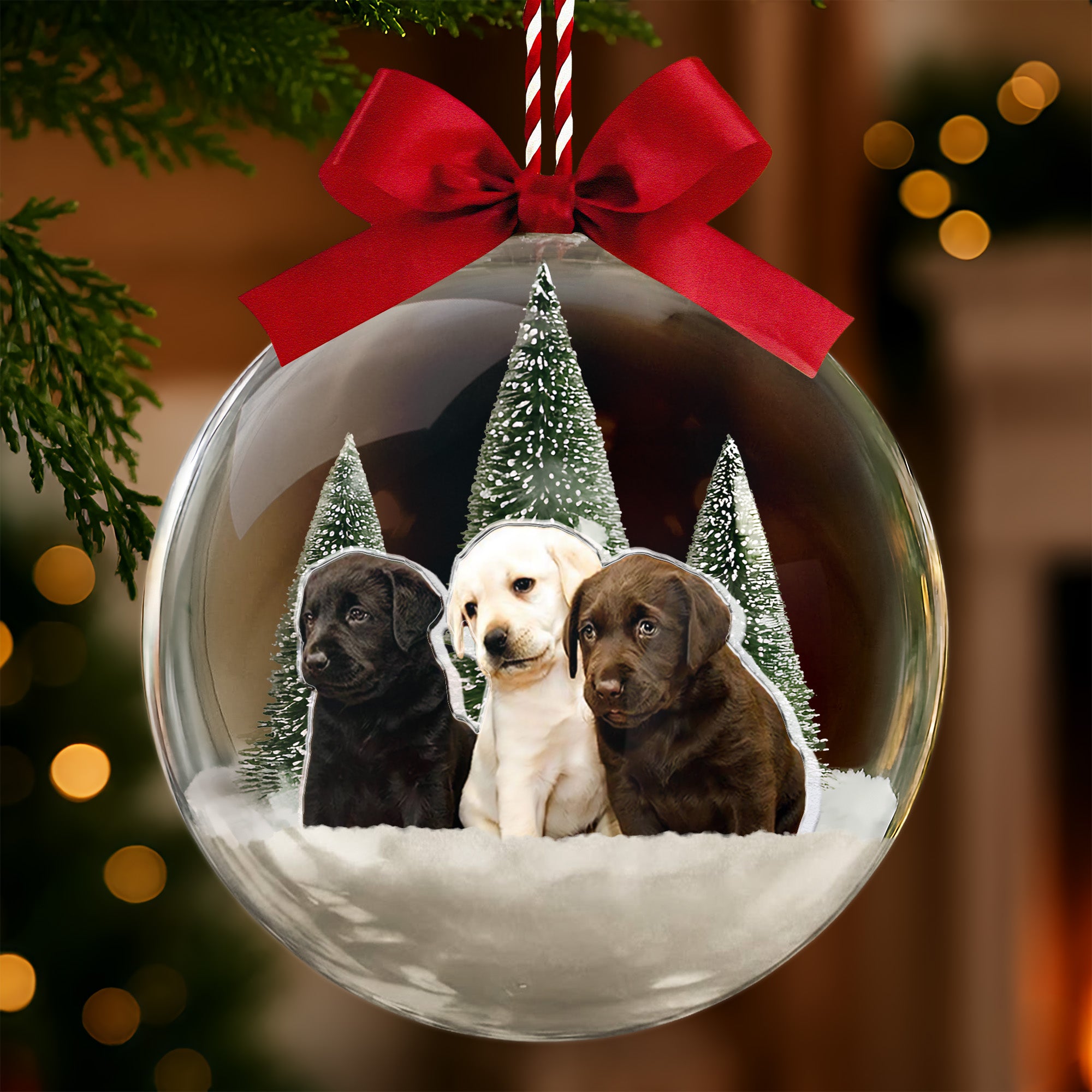 Give this Christmas ball ornament as a holiday gift, birthday present, or just because. This Christmas Ball Ornament is sure to capture their heart and become an instant favorite decoration. Choose your favorite picture of their dog playing, cuddling, or just being cute!