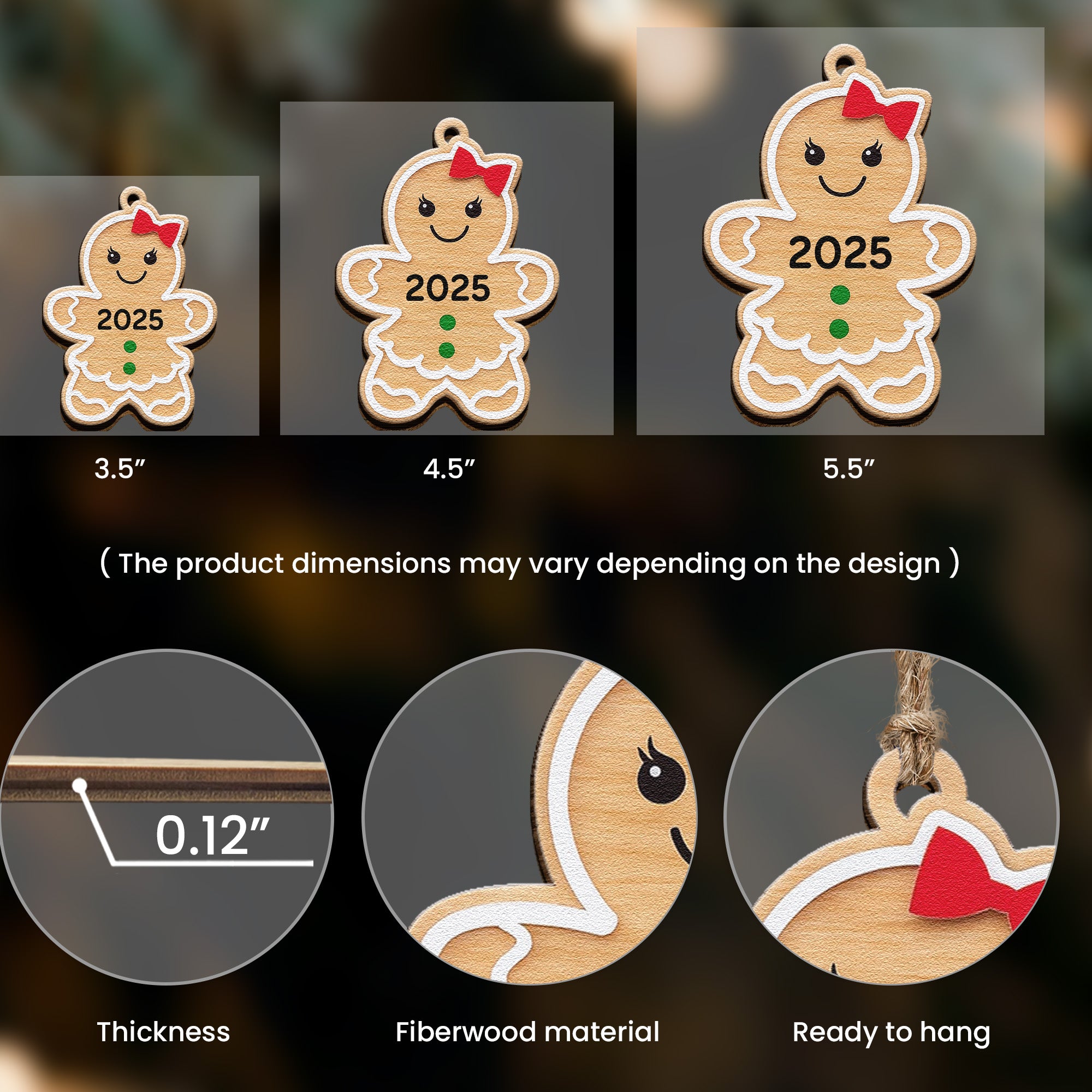 Perfect for Christmas, birthdays, anniversaries, or any occasion where you wish to share a little love and nostalgia. The Gingerbread Christmas Cookie ornament finds its place not just on your Christmas tree, but also in your dear ones' hearts. Its versatility and unique charm make it an ideal gift for family members and children. So why wait? Bring home this custom-shaped wooden ornament, and add that touch of personal charm to your festive decor. Let's make this festive season memorable with a token of love and warmth that resonates with you and your family.
