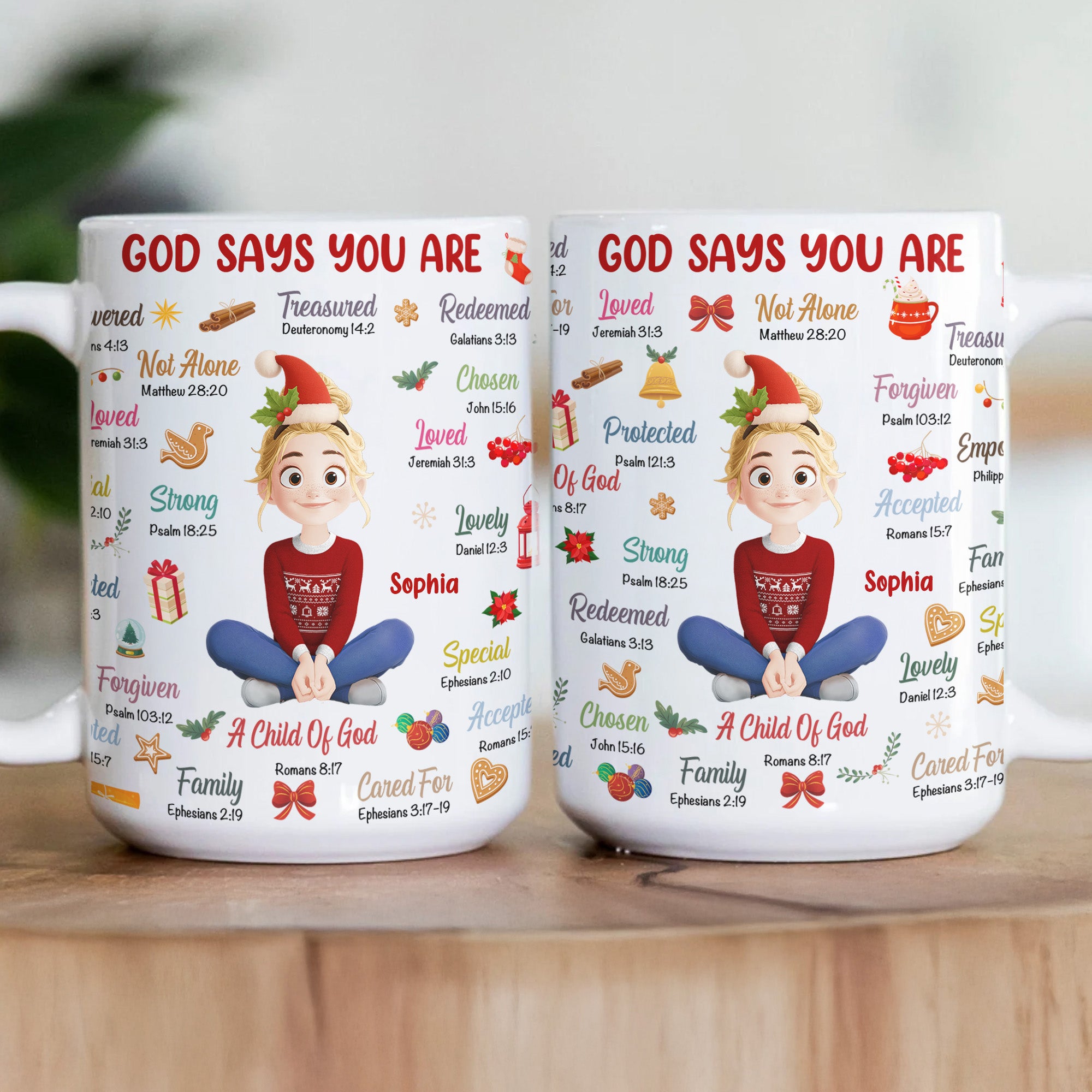 Savor the true essence of Christmas with our God Says You Are Christmas Affirmation - Personalized Mug. This meticulously crafted mug is not just a vessel for your beloved beverages, but also a testament to the bond and resemblance in the family. It's the perfect gift that surely speaks to the heart of your Christian loved ones. Whether it's a Christmas morning coffee or a hot chocolate on a cold night, each sip becomes a special reminder of faith and love. This mug serves as a simple but profound affirmation, subtly reminding its user of their worth.
