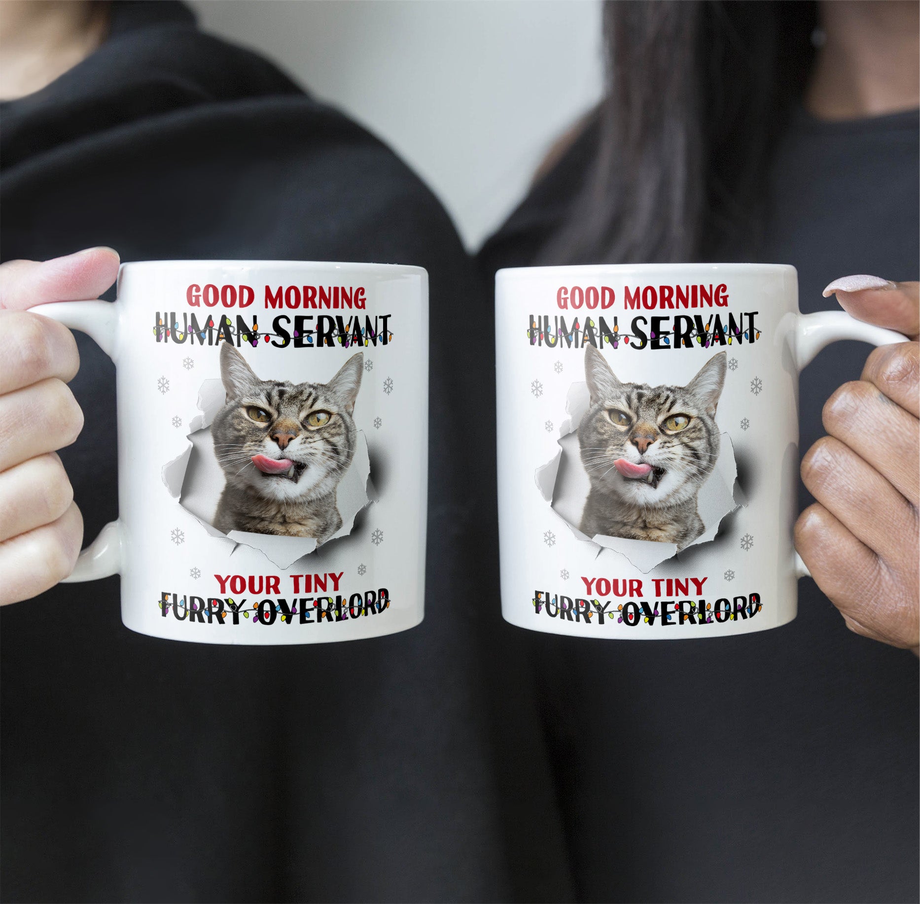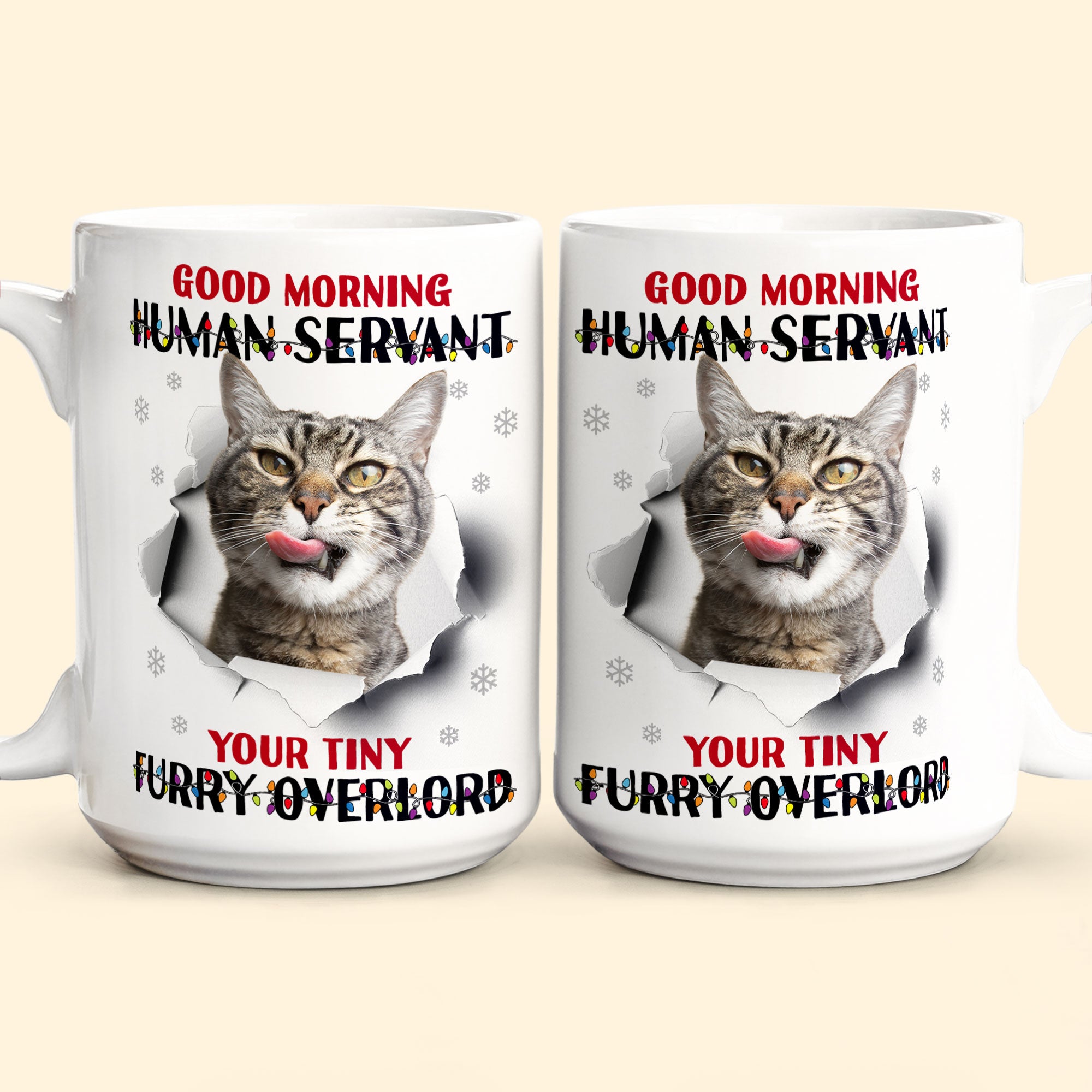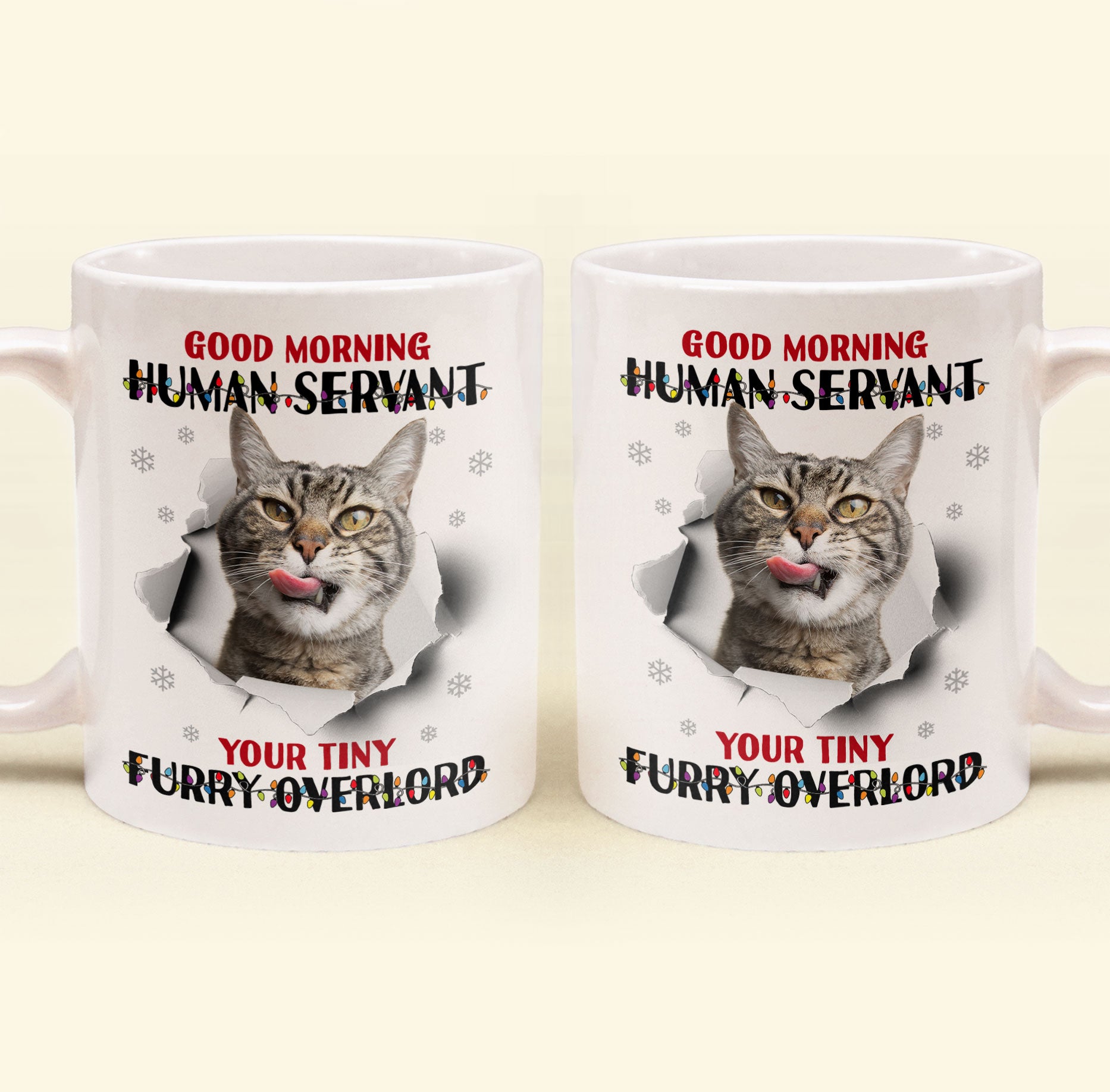 This cheeky mug is the purrfect gift to give any cat lover in your life! Imagine their delight sipping their morning coffee from a mug with their pet's sassy greeting. They'll get a kick out of being called their cat's "human servant" to start each day.