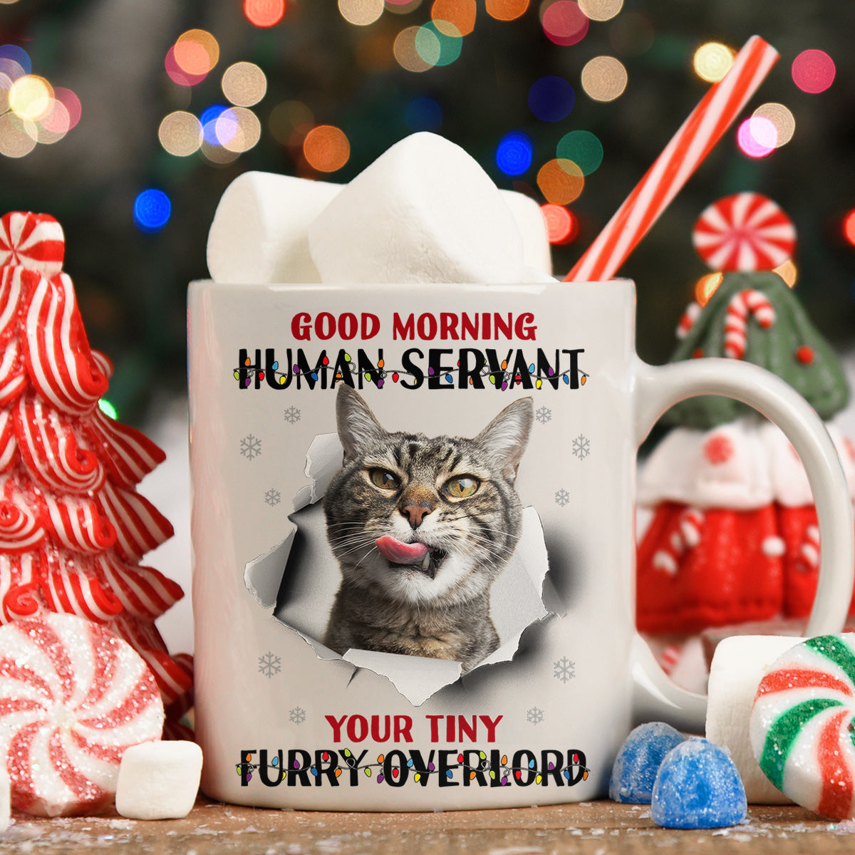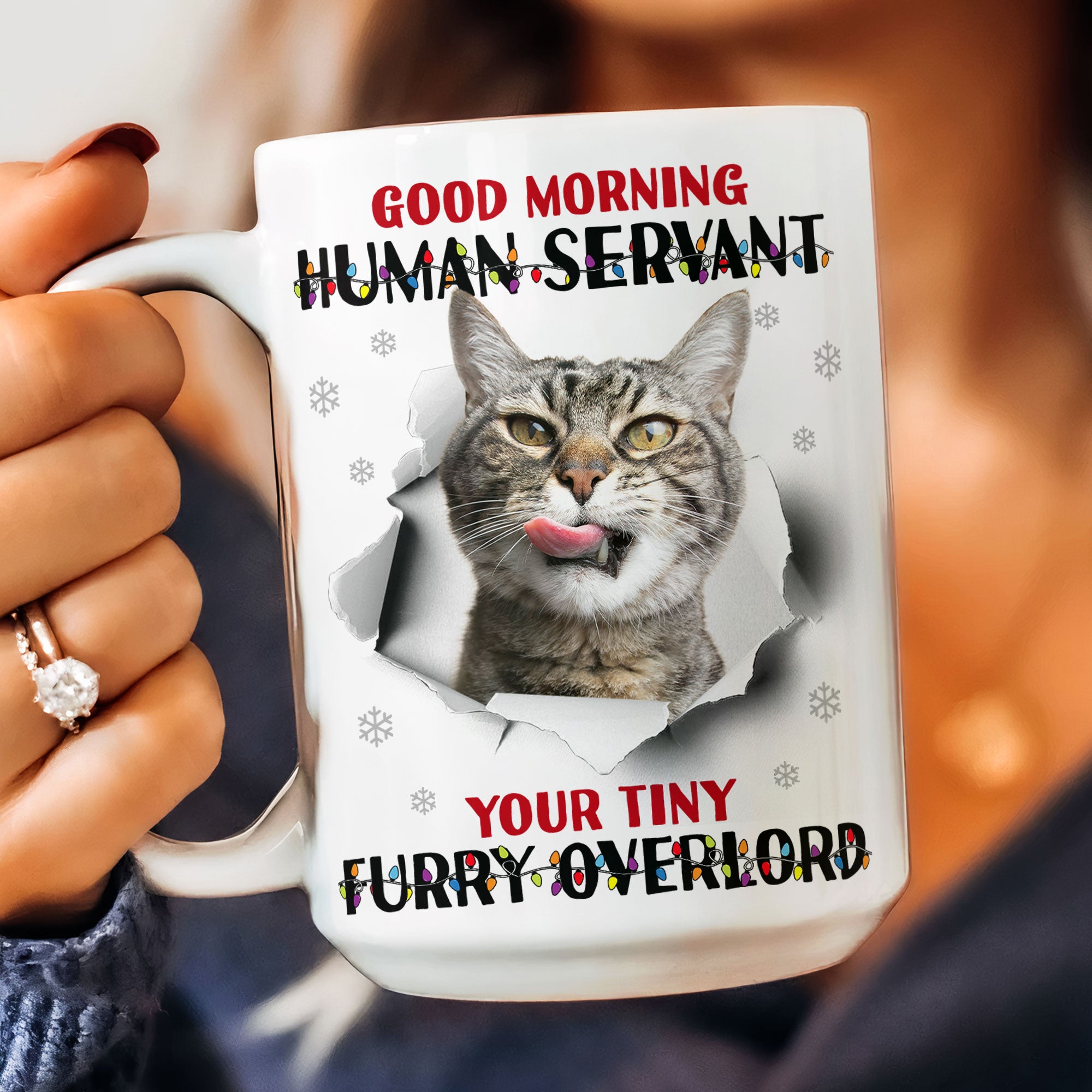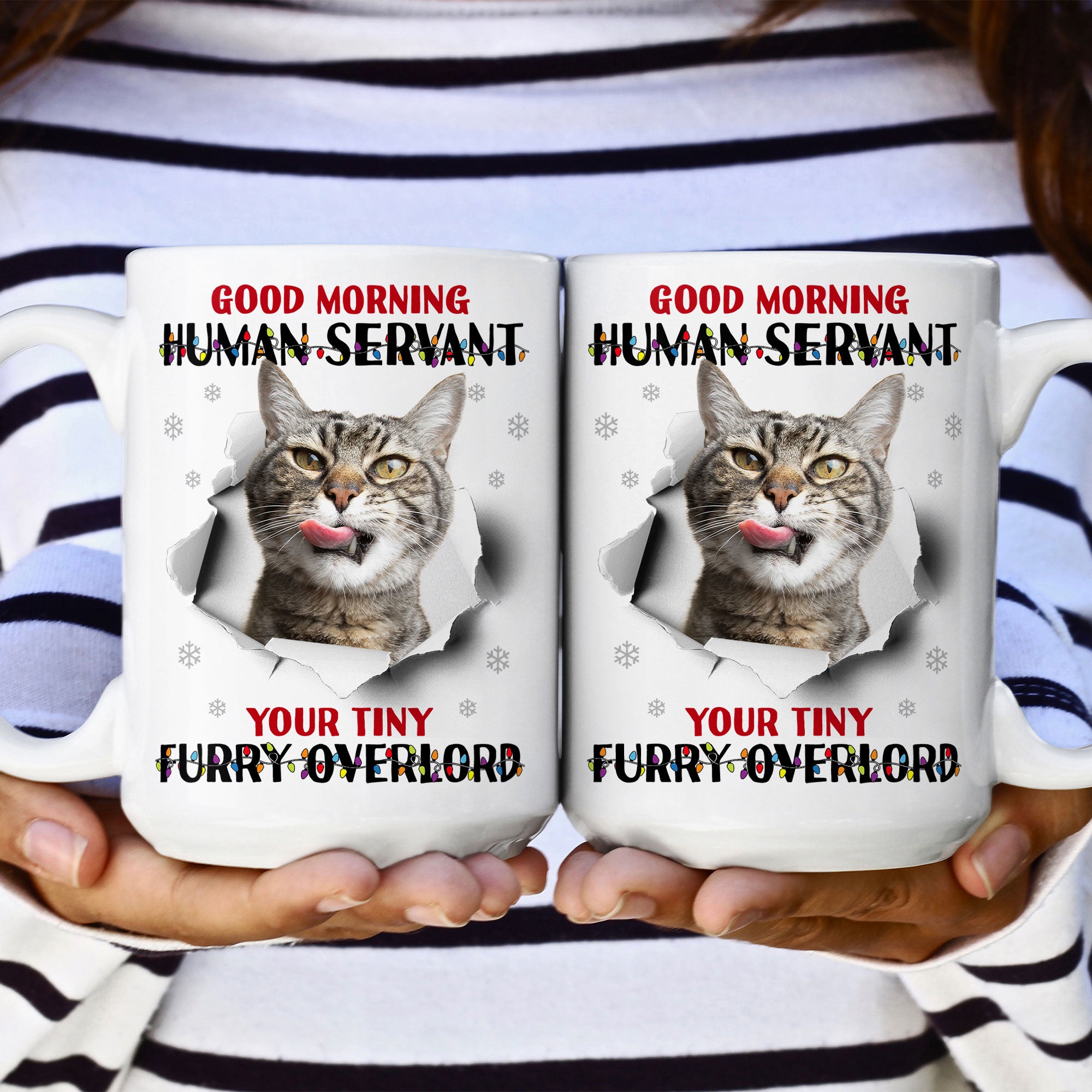 This cheeky mug is the purrfect gift to give any cat lover in your life! Imagine their delight sipping their morning coffee from a mug with their pet's sassy greeting. They'll get a kick out of being called their cat's "human servant" to start each day.