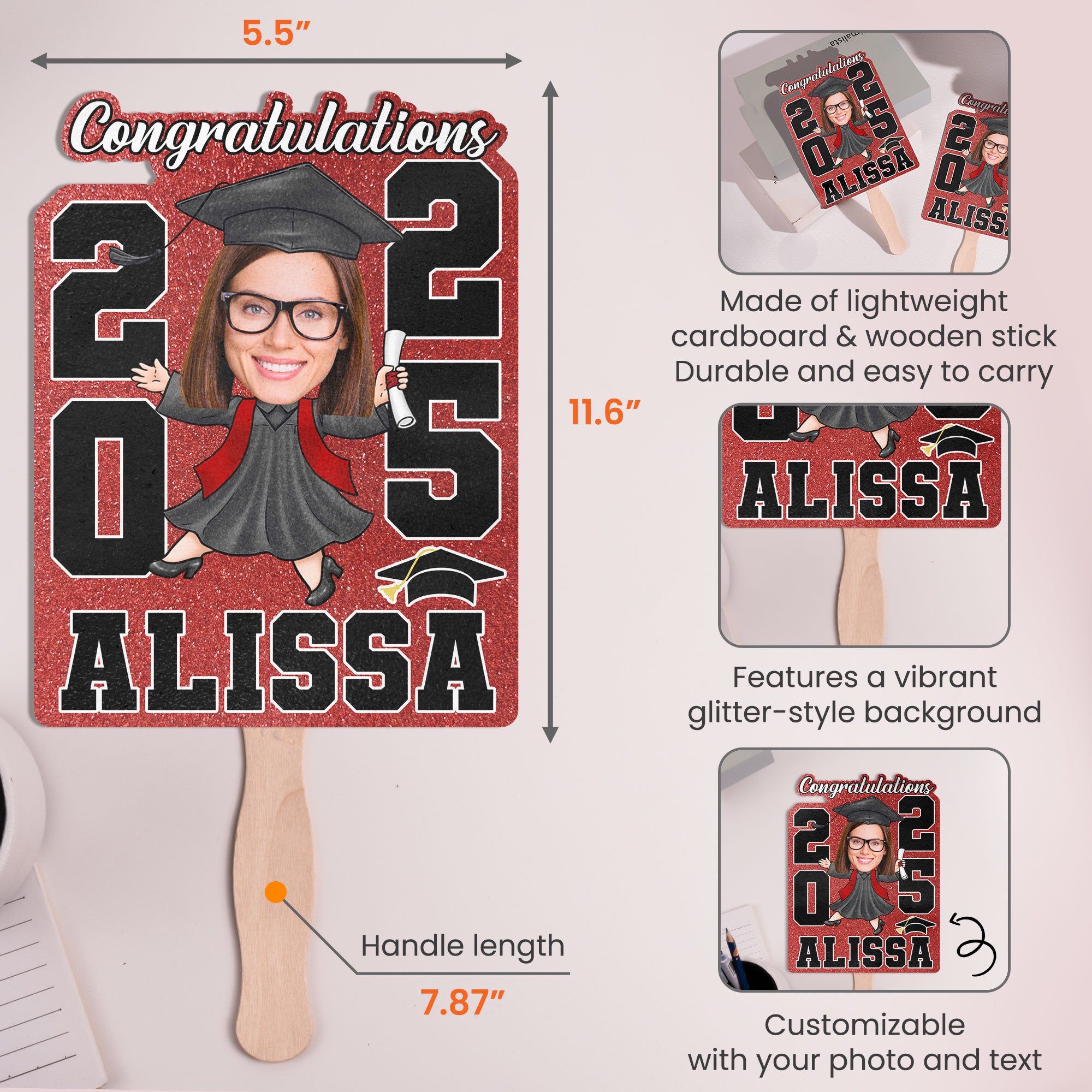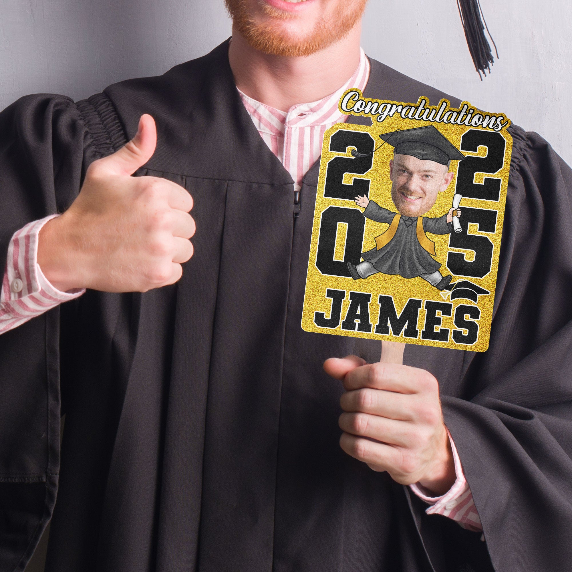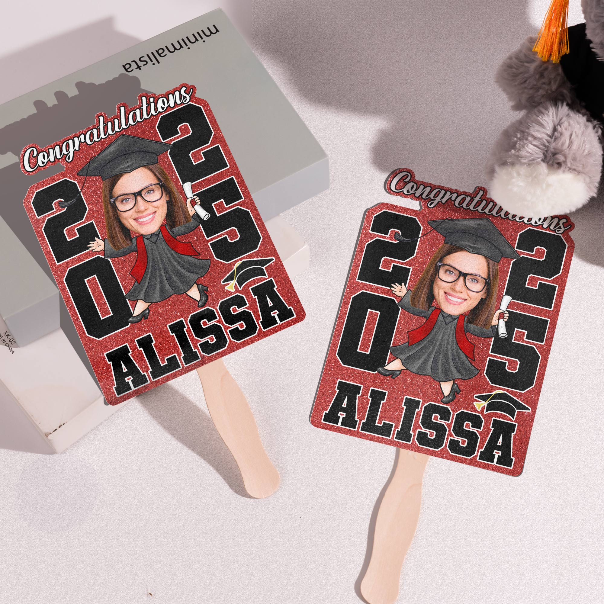 Proudly display a picture of your graduate on this fan and let them know how proud you are of their accomplishments. Designed bearing in mind the recipient's best interest, these fans serve as both a cooling accessory and a piece of emotive memorabilia. Imagine the waves of joyful nostalgia each time they use it, taking them back to their milestone moment. Don't wait, order one now to put a sprinkle of happiness on your loved one's special day. This Graduation Fan with Picture is more than just a gift, it's a treasure of memories.