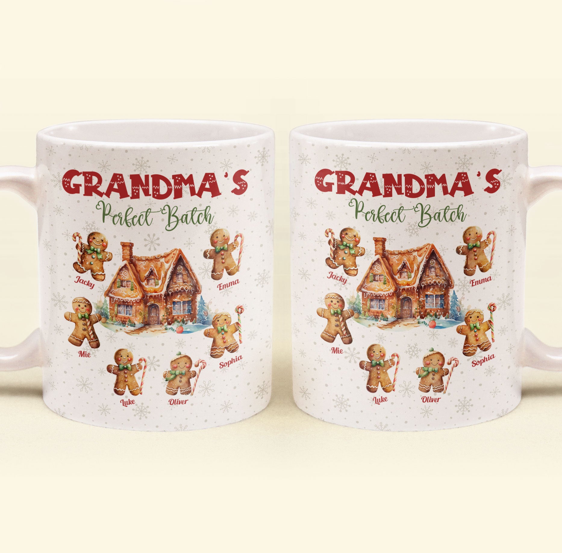This personalized "Grandma's Perfect Batch" Christmas mug is the perfect gift for any proud grandma! Customizable with her grandkids' names, this mug celebrates the sweet bond between grandma and her little ones. Whether it's a Christmas gift, birthday surprise, or just because this thoughtful mug is a heartwarming way for grandkids to show their love. Perfect for enjoying her favorite coffee or tea, it's a keepsake she'll cherish every day! Ideal for grandmas, Grammys, and Nanas, it's the ultimate gift from grandkids this holiday season.