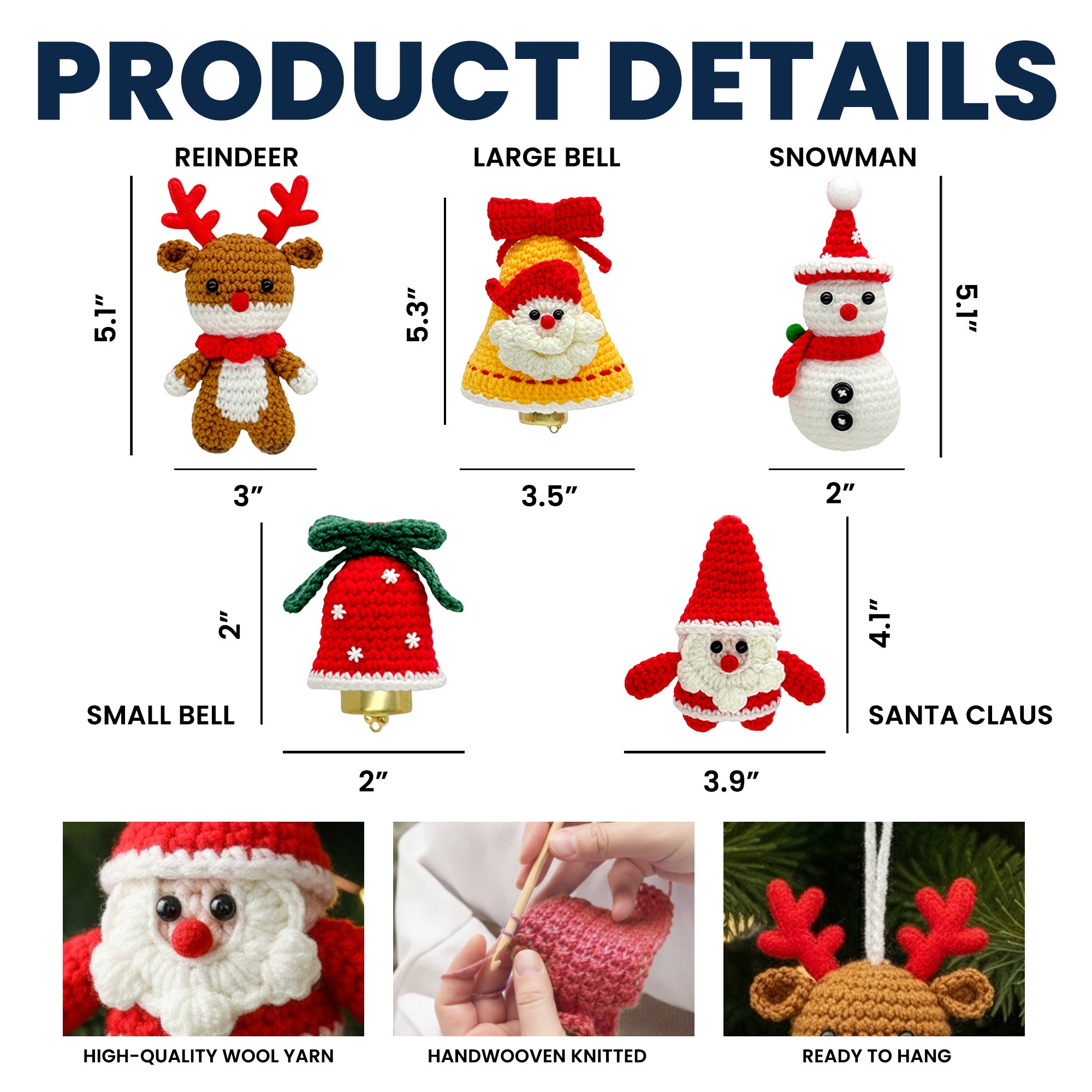 + Handcrafted Crochets: Each ornament is skillfully hand-crocheted from soft yet durable yarn, offering a cozy handmade texture that’s long-lasting and fade-resistant.