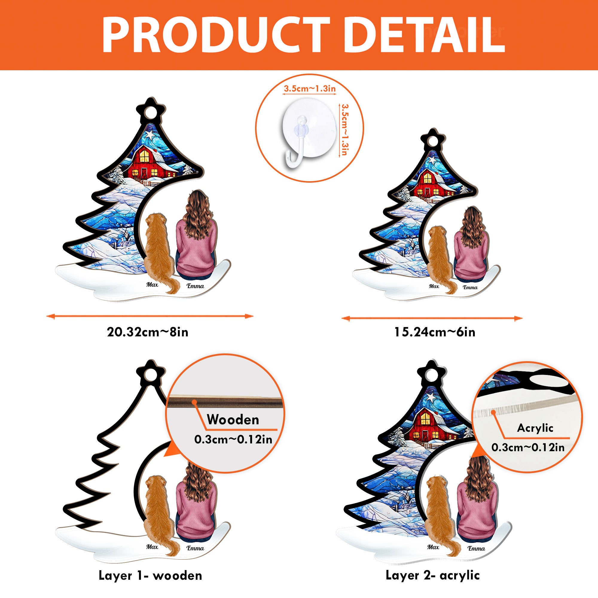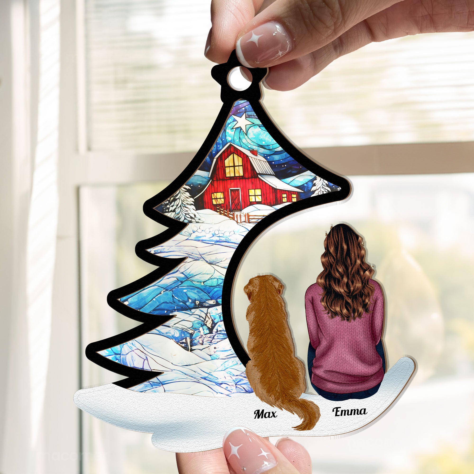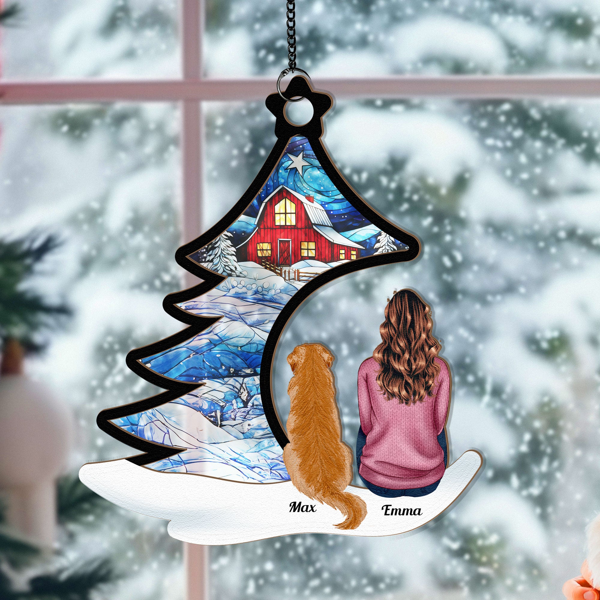Celebrate the joy of your furry friends with the Happily Sitting With Dogs, Cats Under Christmas Tree Personalized Suncatcher Ornament. Perfectly personalized with your pets' names and breeds, this ornament makes a thoughtful keepsake for years to come. Whether it’s a Personalized Pet Christmas Ornament or a Memorial Gift for a beloved dog or cat, this suncatcher captures the love and happiness your pets bring to the family. A special Christmas Gift for Pet Lovers, it’s the perfect way to celebrate your furry companions or give as a heartfelt gift to pet parents this holiday season. Display it as a Window Suncatcher or hang it on the tree for a cherished memory that will last for years to come!