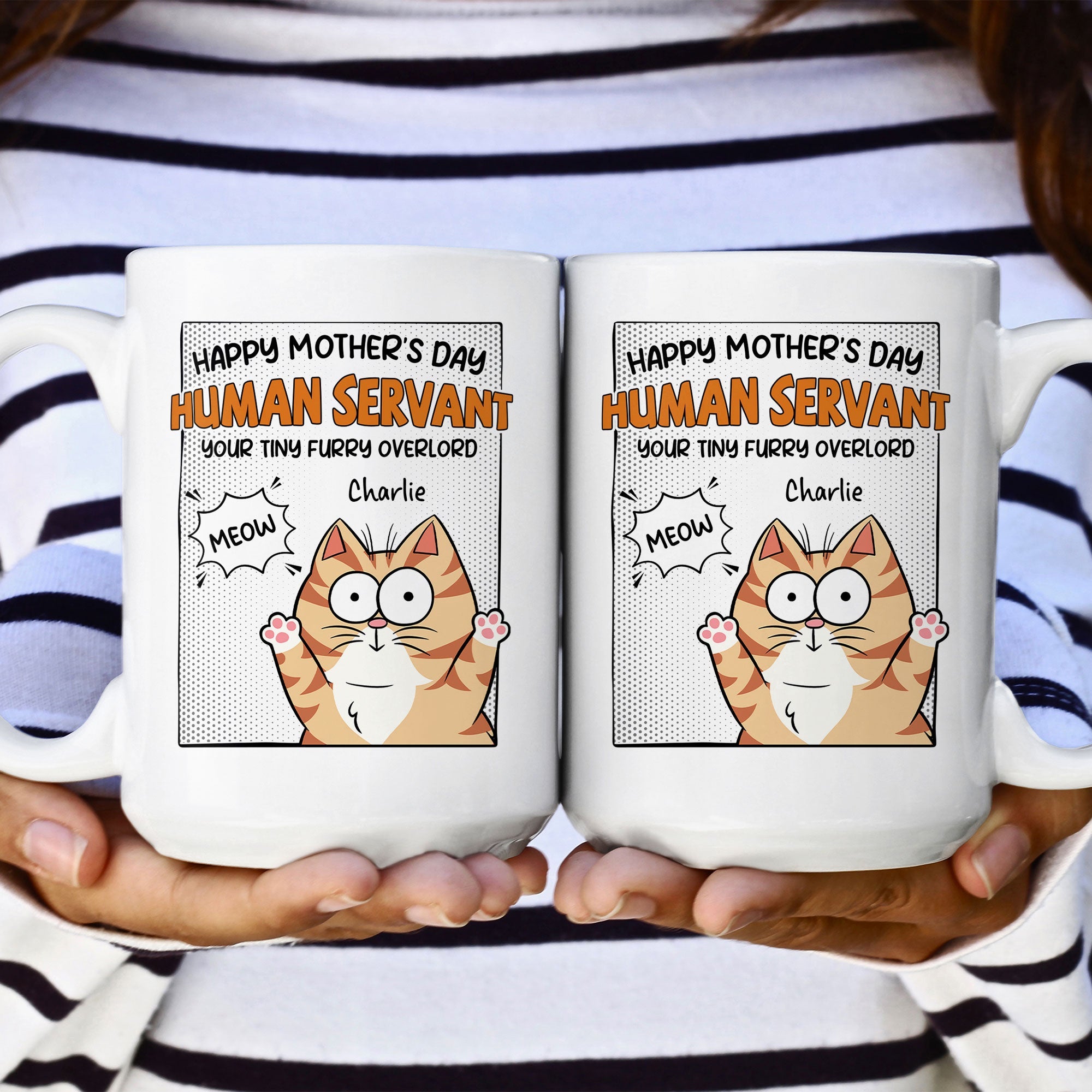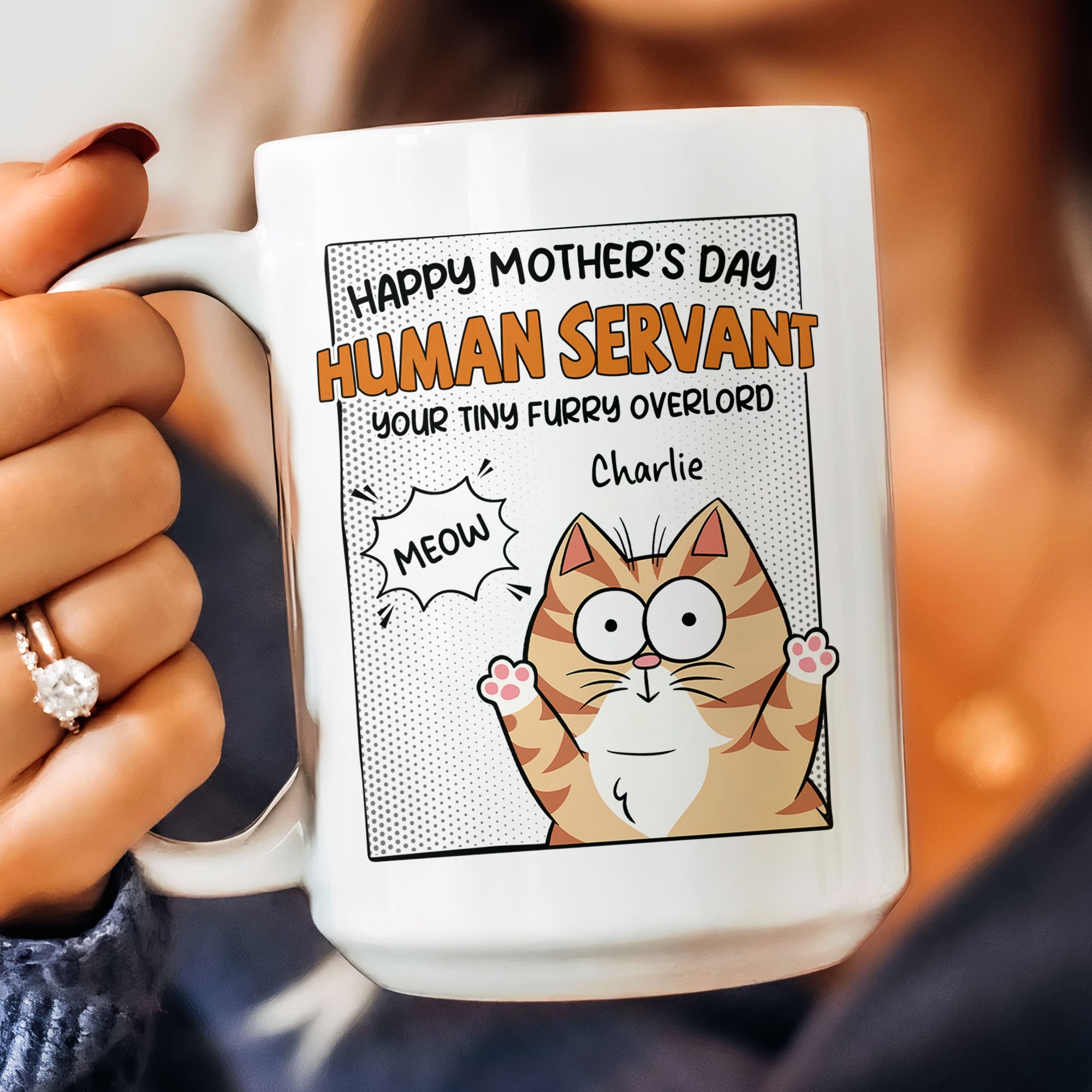 This cheeky mug is the purrfect gift to give any cat lover in your life! Imagine their delight sipping their morning coffee from a mug with their pet's sassy greeting. They'll get a kick out of being called their cat's "human servant" to start each day.