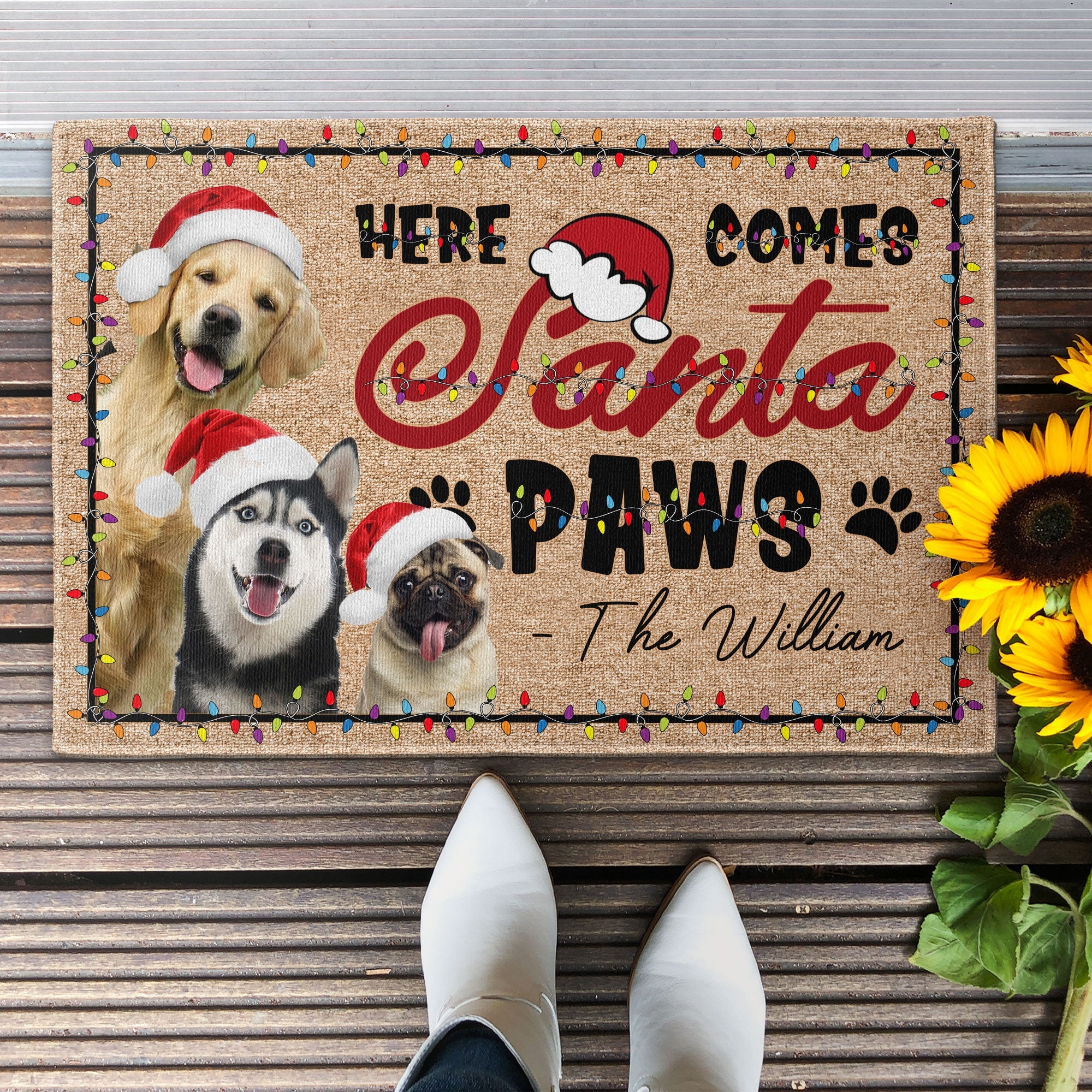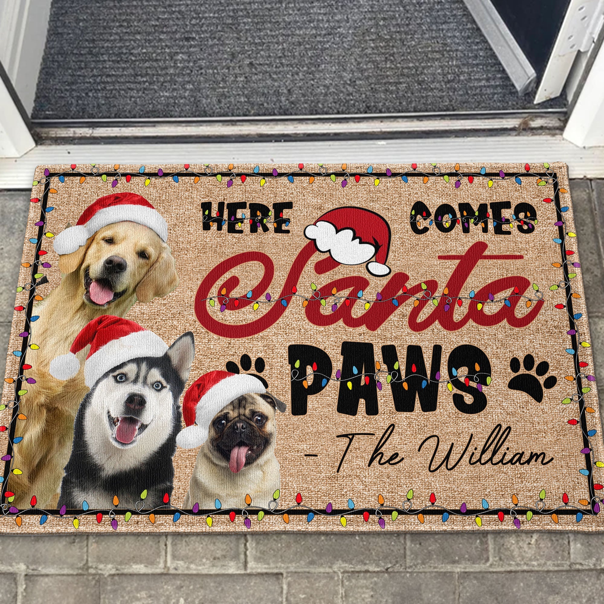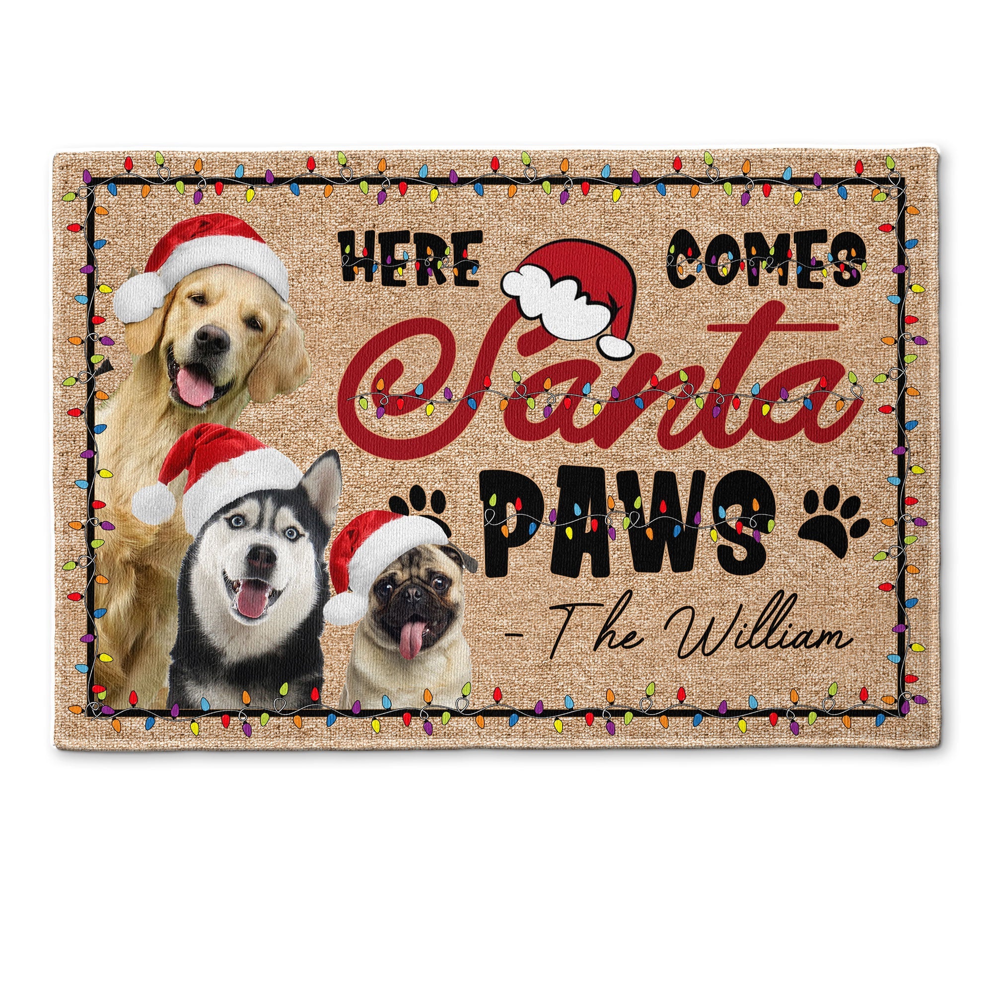 Give your beloved pets a special treat this holiday season with our "Here Comes Santa Paws" Personalized Photo Doormat! Tailored for dogs and cats, this unique mat adds a festive touch to your home. Personalize it with your pet's photo for an extra special touch.