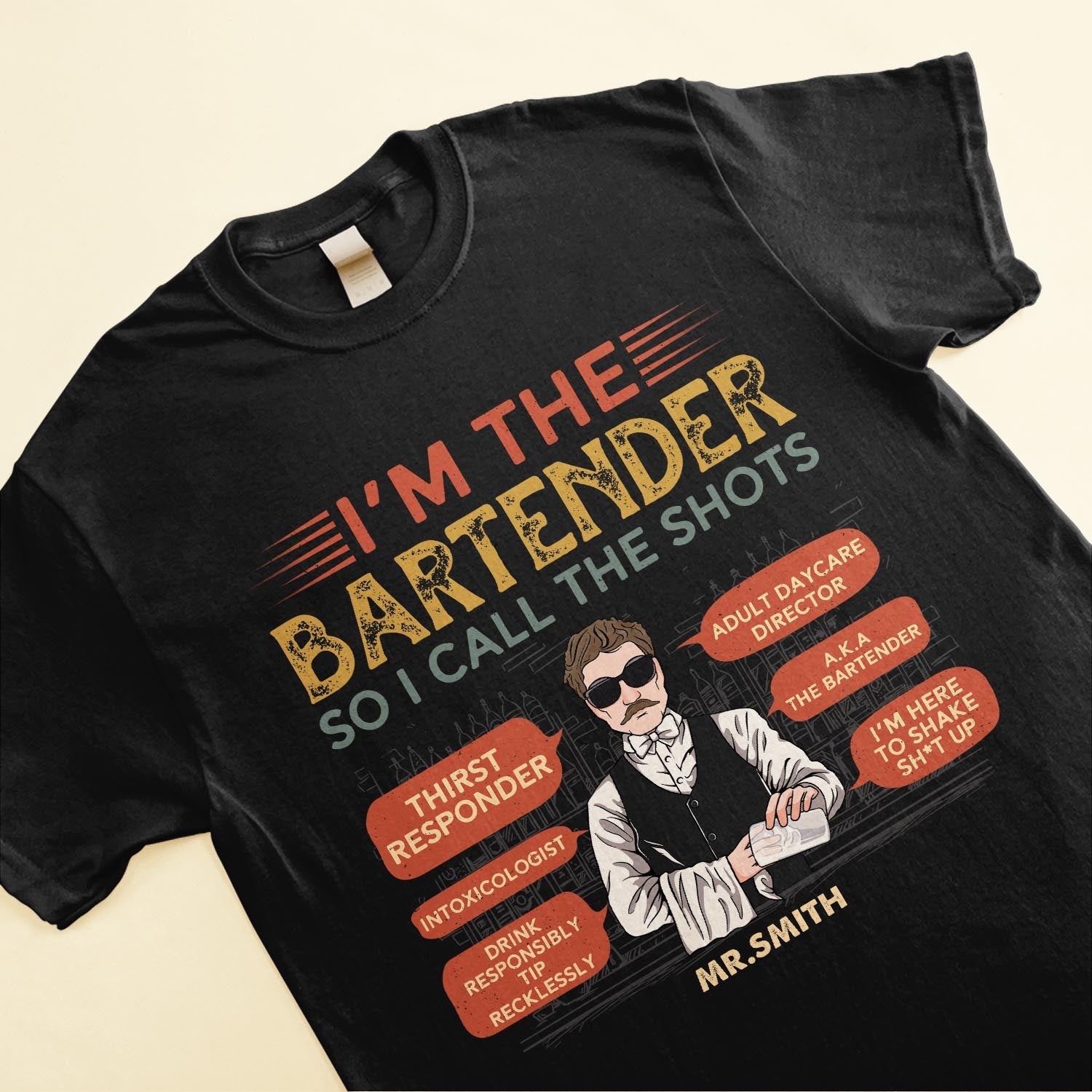 For the mixologist who shakes up creativity behind the bar, our personalized bartender tee is the perfect gift. The soft, breathable fabric will keep them comfortable during busy happy hours and late nights. This bar-themed shirt is great for any mixology pro who loves crafting unique concoctions. Give it to your friend who just graduated bartending school or your cousin who slings drinks on weekends. It makes a thoughtful birthday, holiday or opening night gift. Give them the gift of comfort and self-expression with this personalized ode to their drink-crafting talents. Let their passion for mixology shine every day with this customized bartender tee. From selecting spirits to garnishing drinks, it reflects their mastery of the craft.