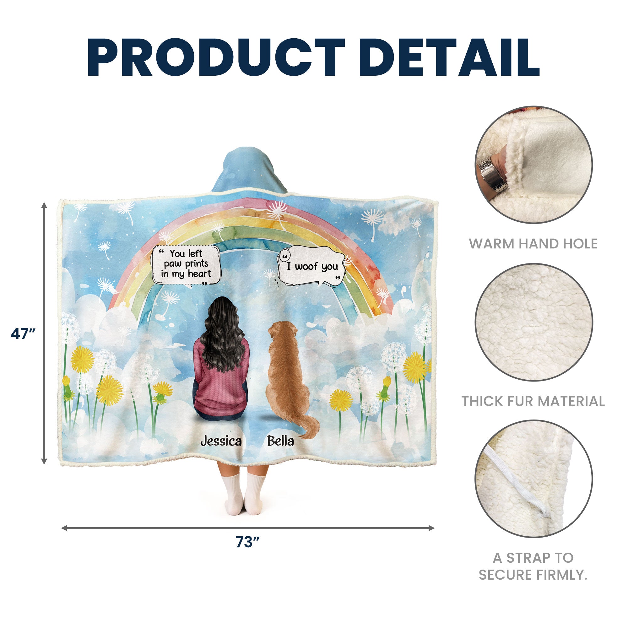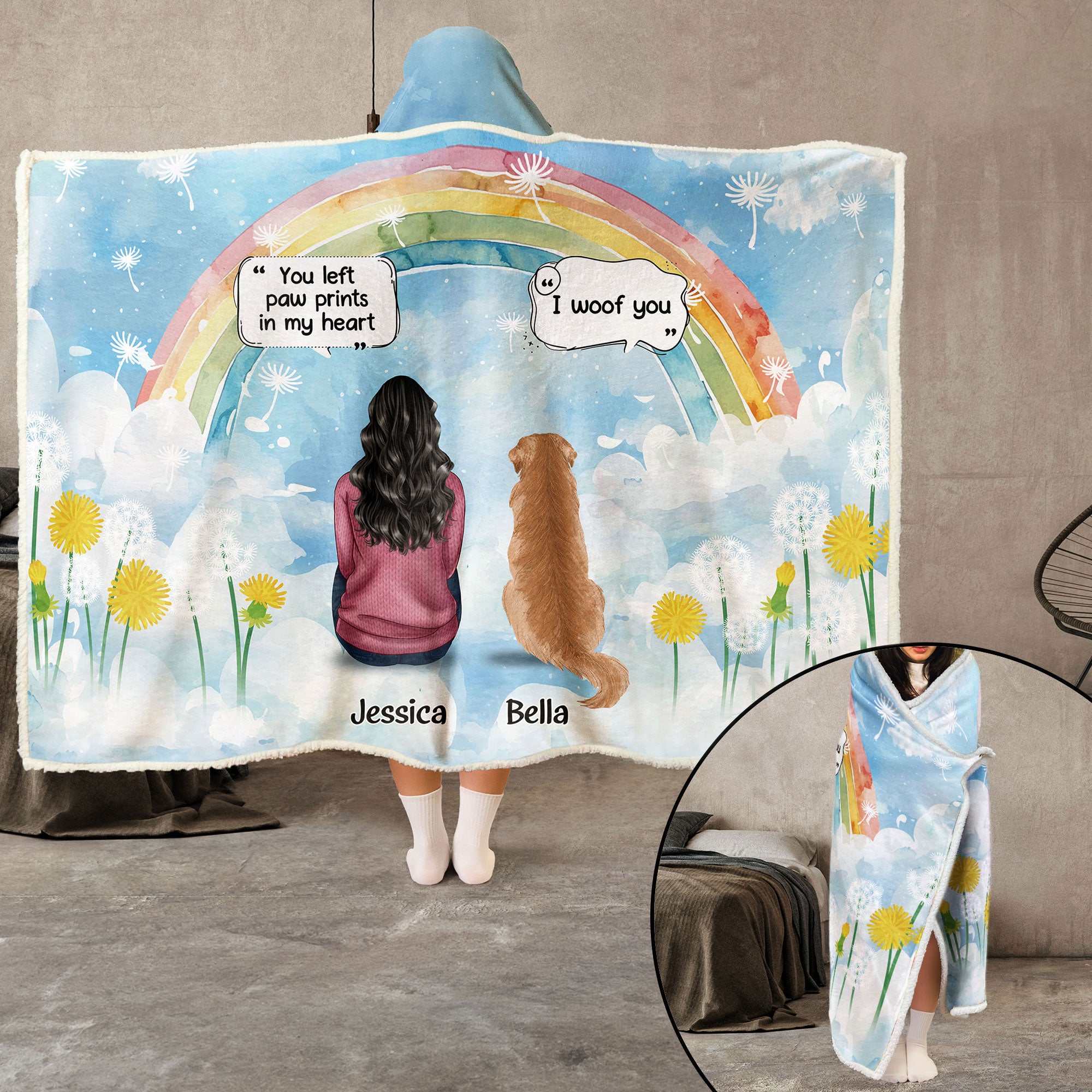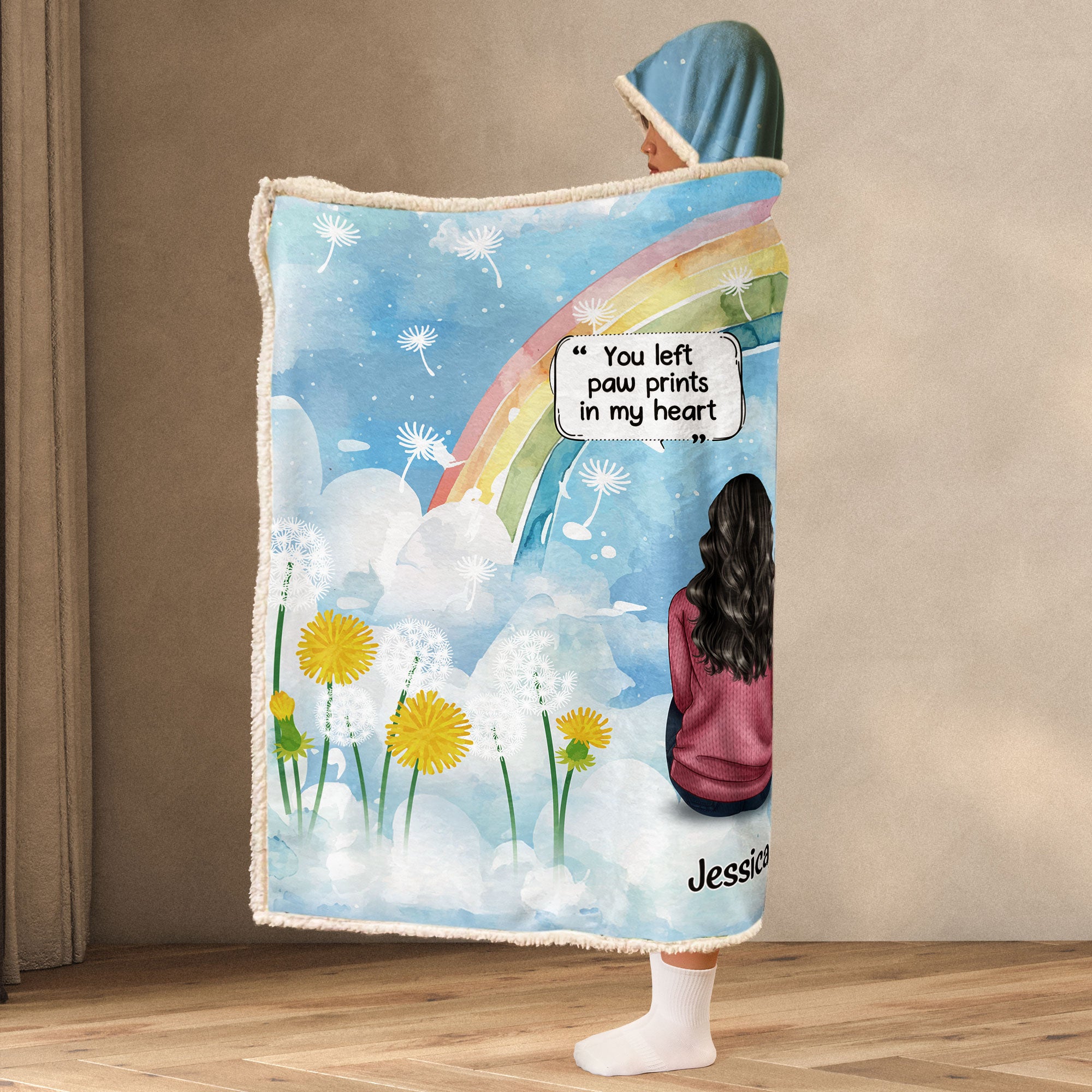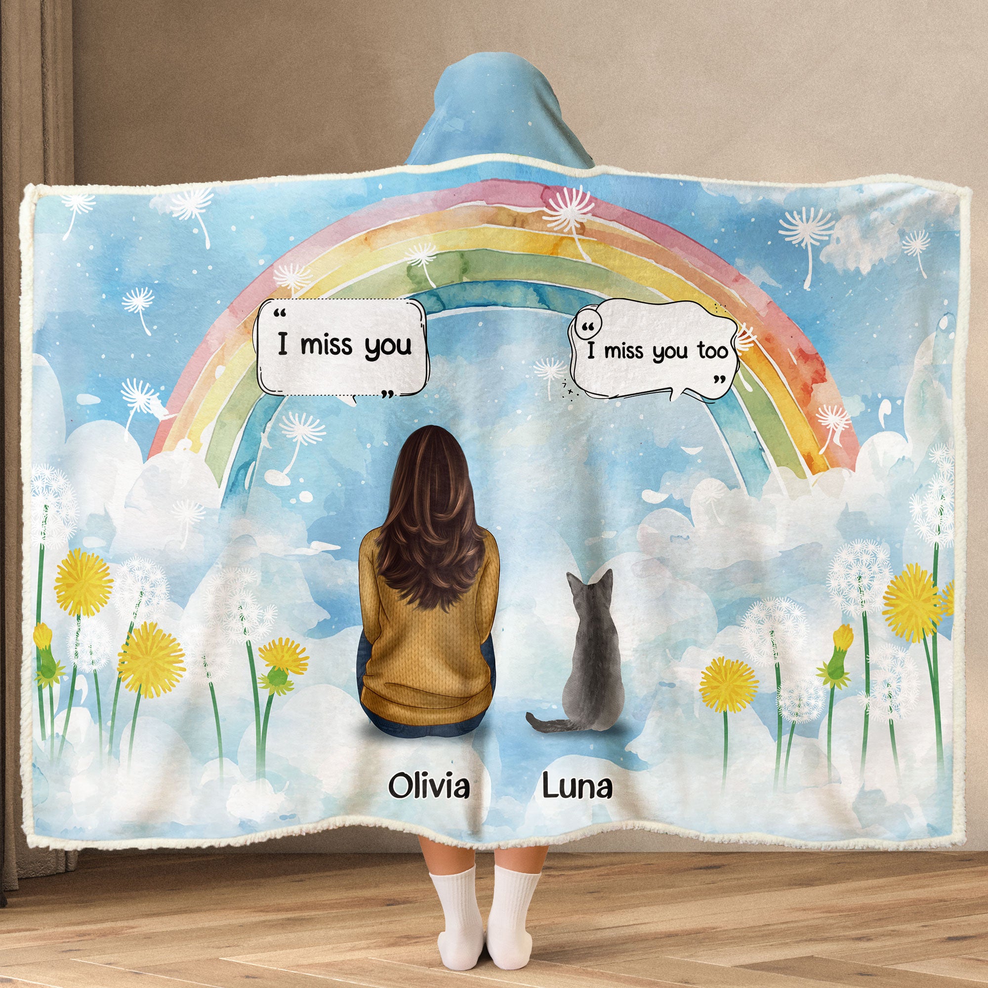 Wrap yourself in comfort and memories with our Personalized Wearable Hooded Blanket a tribute for anyone missing a beloved pet. Imagine a cozy blanket featuring a custom clip art of you sitting alongside your dearly missed furry friend. Whether for yourself or as a gift for a pet-loving friend, this blanket serves as a warm hug on the hardest days, gently reminding you of the love that never truly leaves.