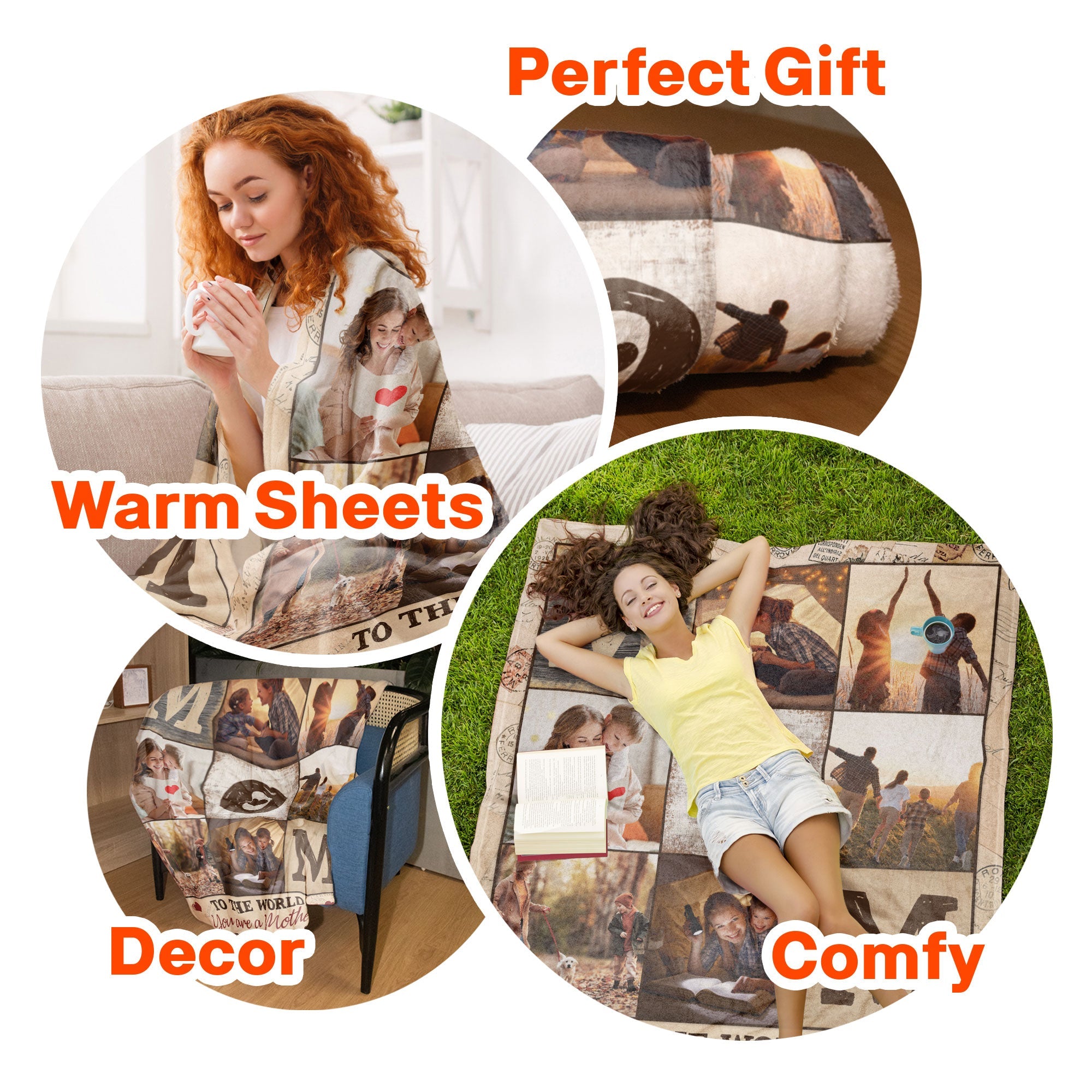 Celebrate the loving bond with mom through a custom blanket that immortalizes your most precious shared memories. This thoughtful gift allows you to relive life's special moments together through a woven tapestry of pictures and words.