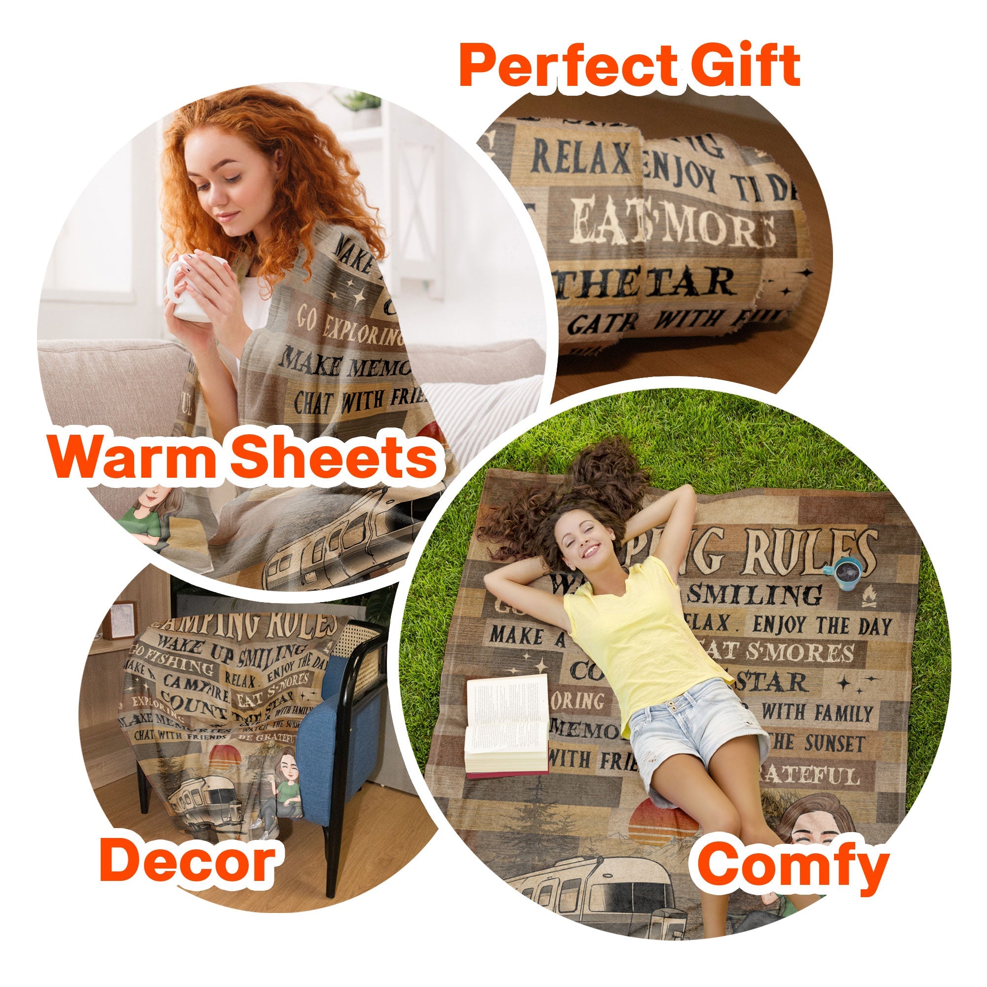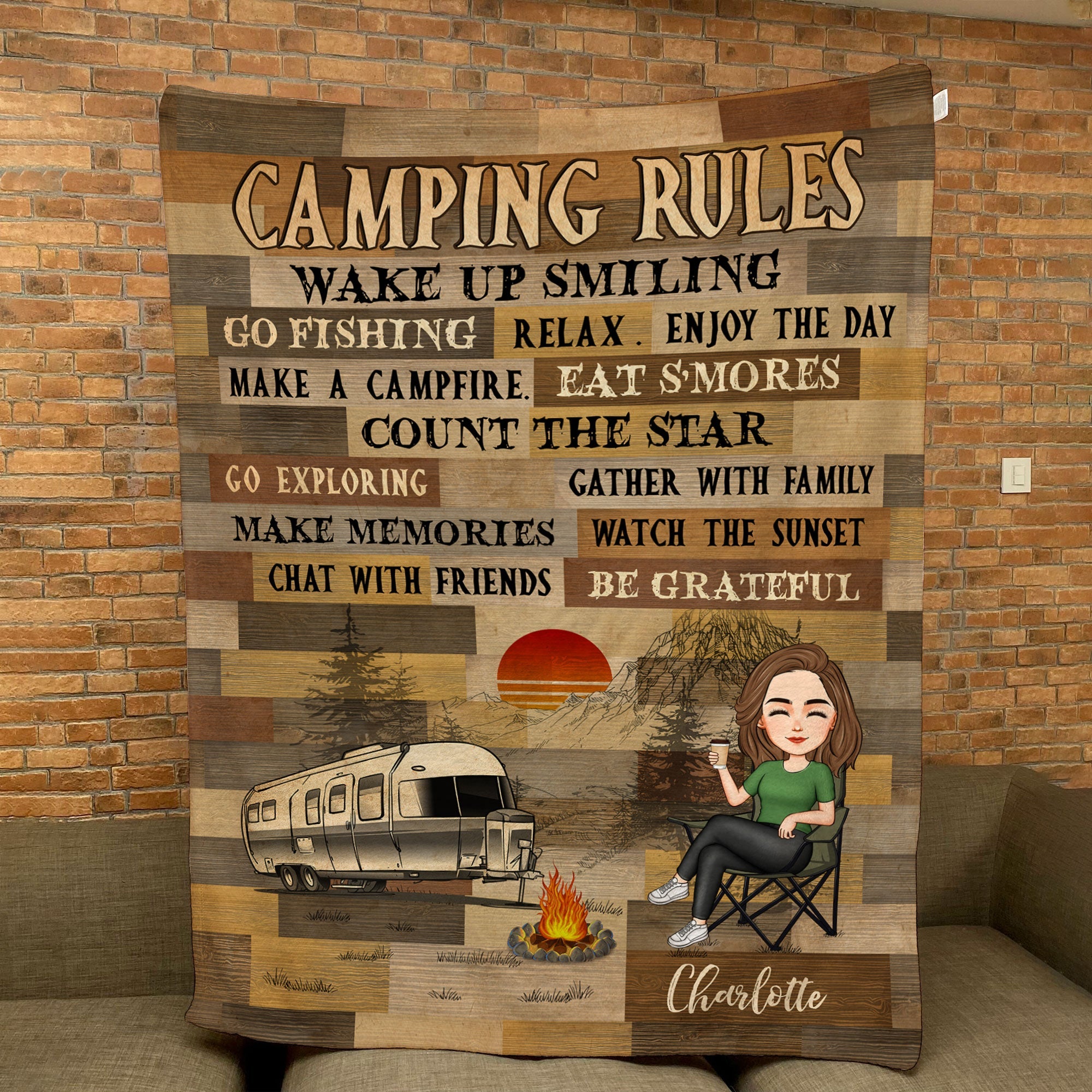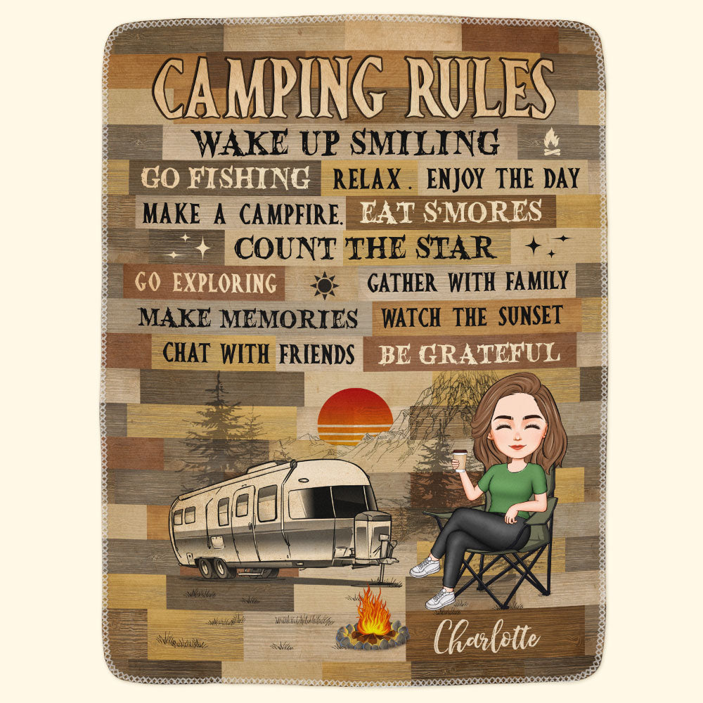 Embrace the cozy warmth of our "My Camping Rules" Personalized Blanket - a high-quality haven of softness and comfort. Ideal for chilly nights on a camping trip or simply lounging at home, this blanket is more than just a piece of warmth; it's a personalized statement. Crafted with the utmost quality, it's perfect for family gatherings or a solo camping adventure. Treat yourself or surprise your camping friends with a thoughtful gift that wraps them in comfort and personalized charm. Whether by the campfire or in the comfort of your home, this blanket is a versatile companion for making lasting memories and keeping warm in style.