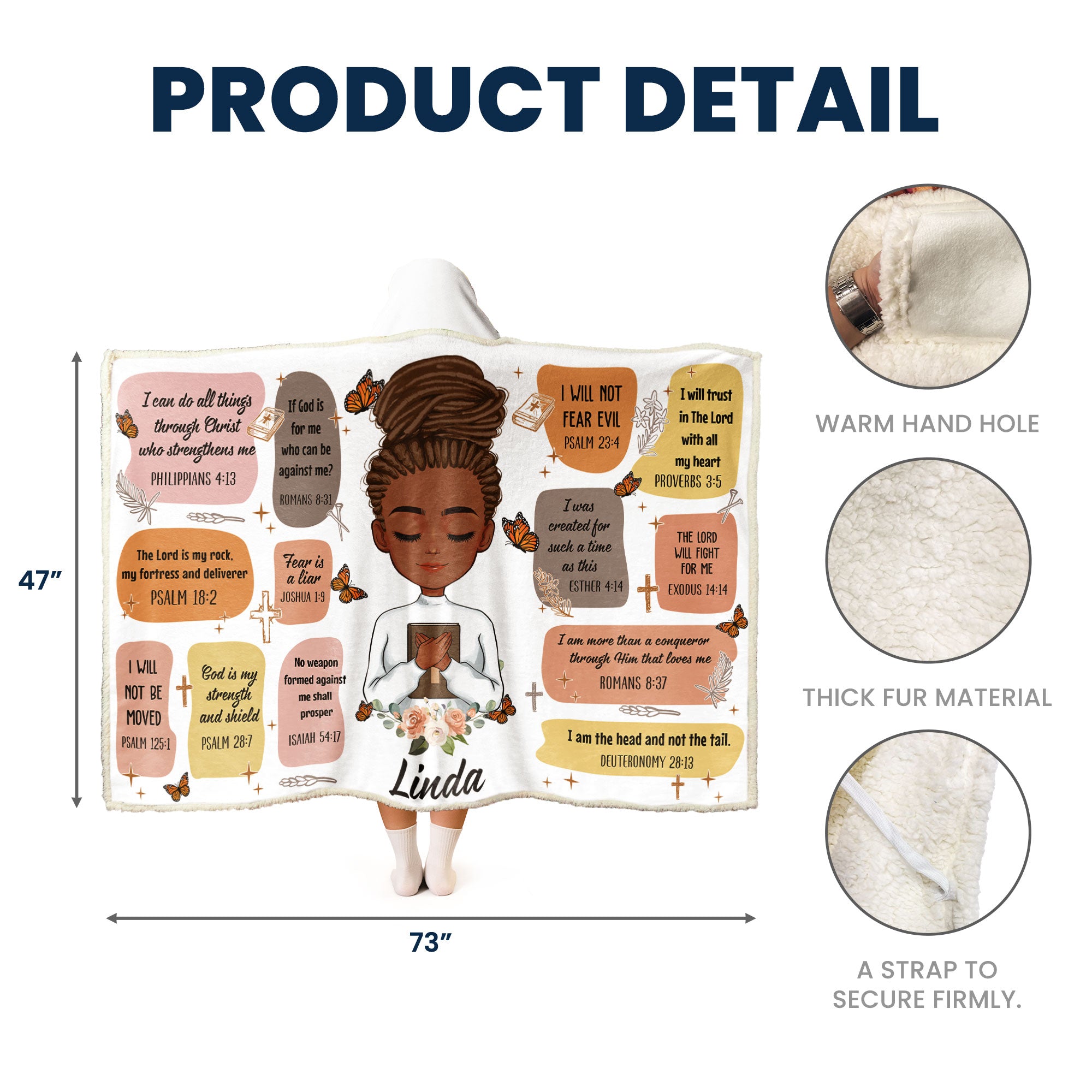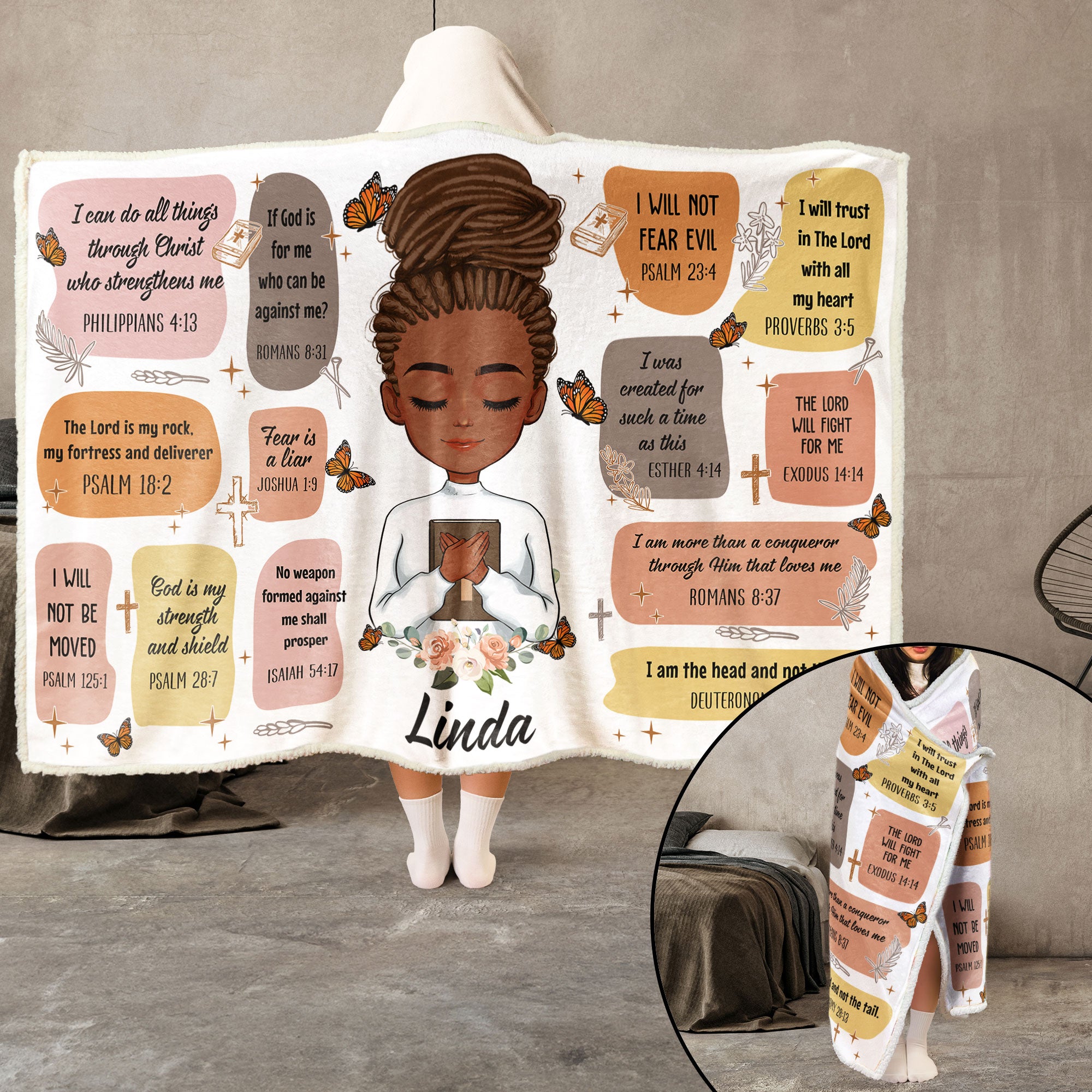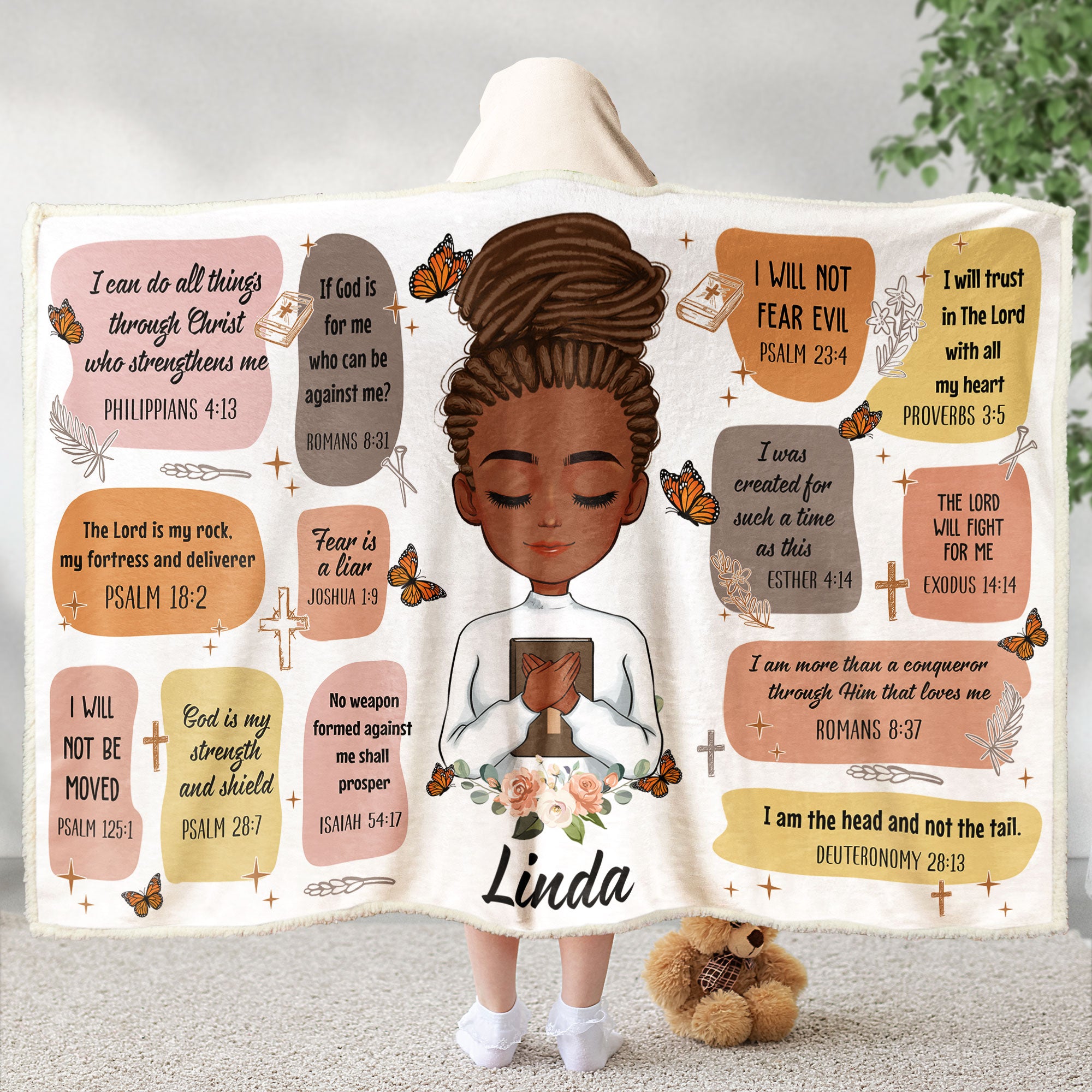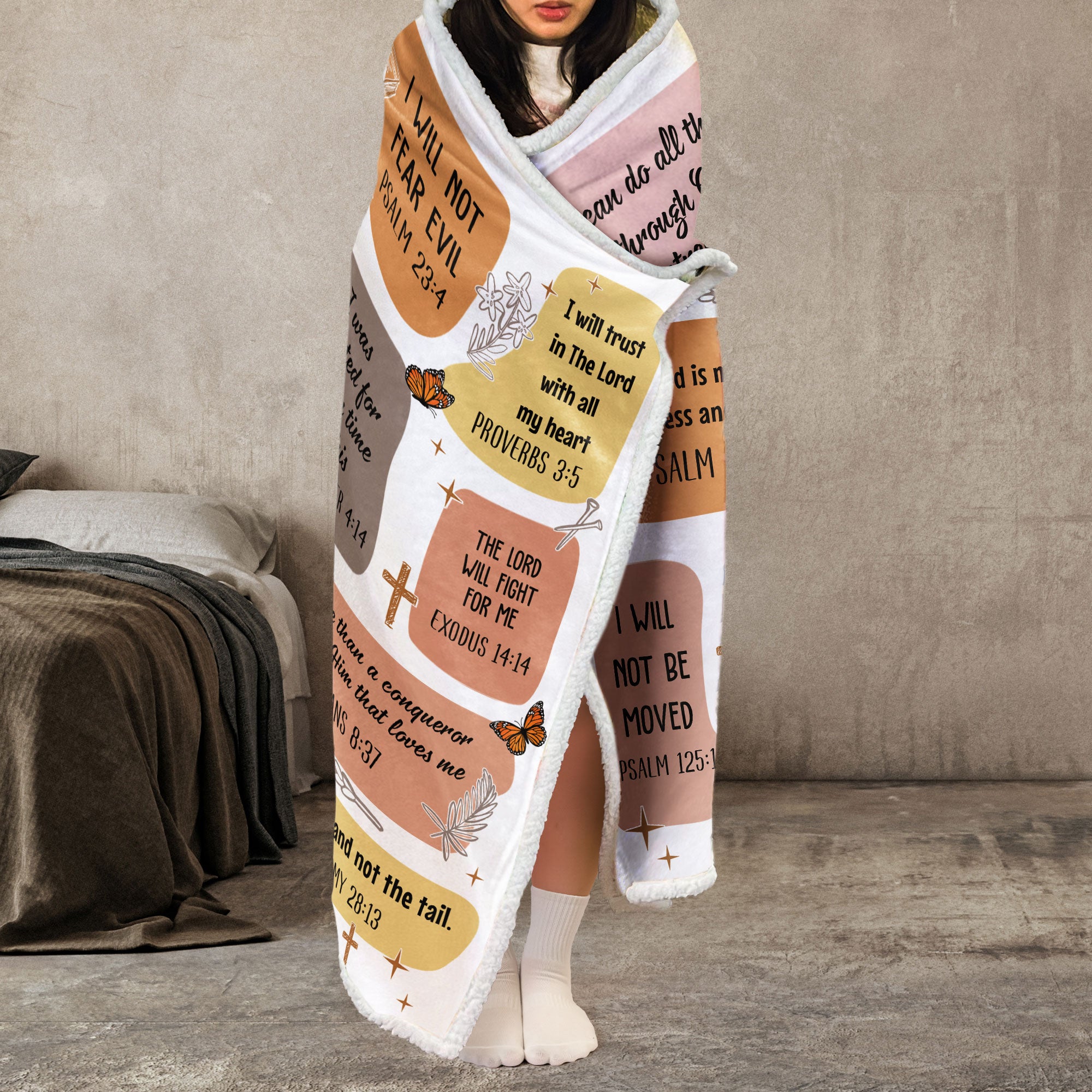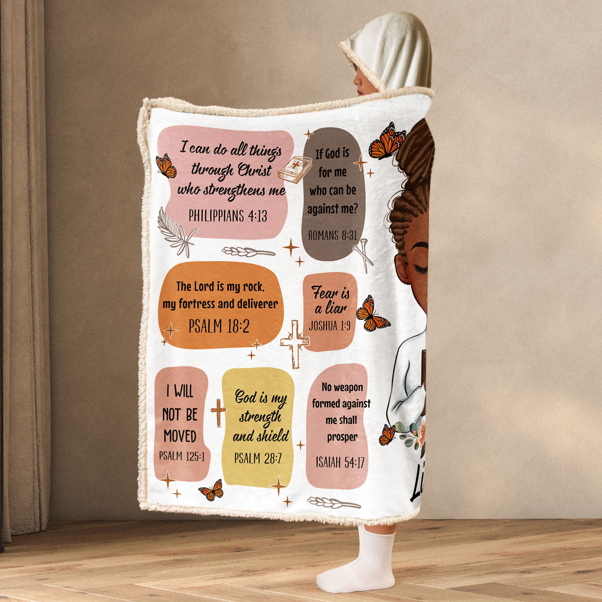 It is adorned with carefully selected Bible verses that serve as empowering affirmations, providing a source of spiritual strength and inspiration whenever she wraps herself in its warmth. This cozy blanket is not only a practical and comforting gift but also a reminder of the love and support that comes from the divine.