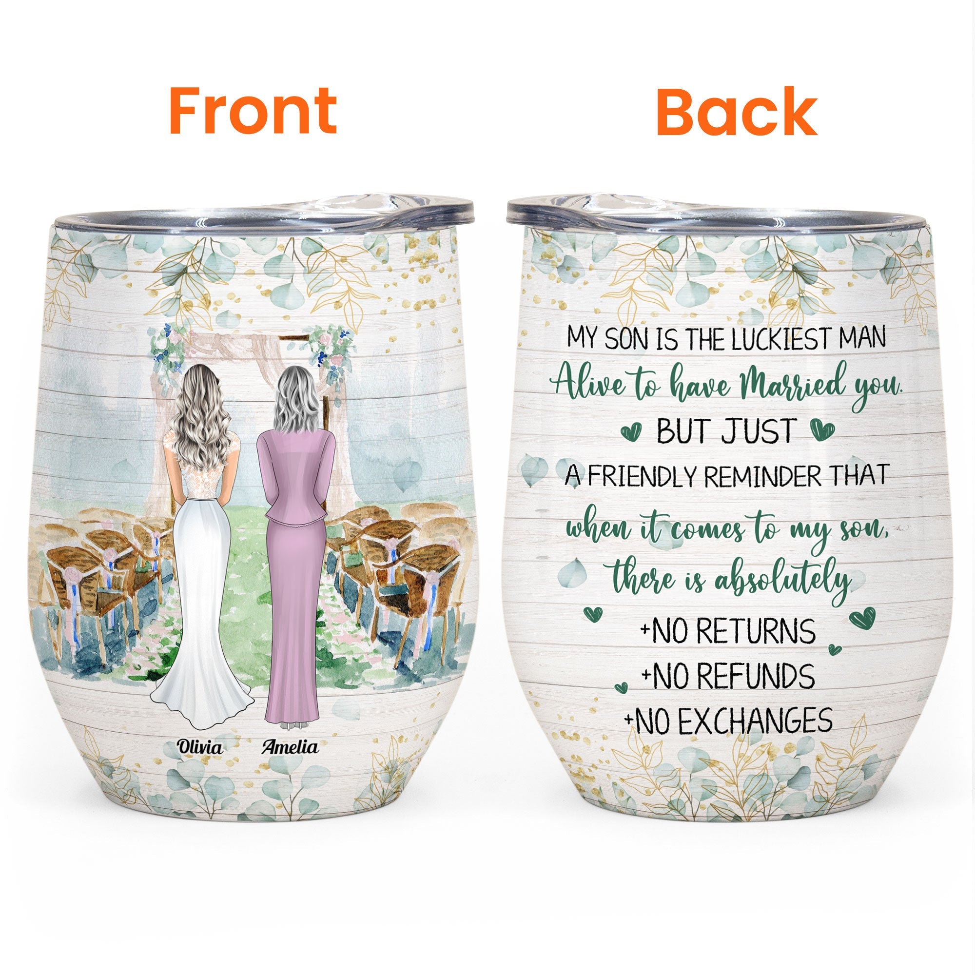 Welcome a new daughter-in-law into the family with a personalized tumbler to commemorate the special occasion. Give it to her at the wedding reception or bridal shower as a thoughtful memento of her marriage. She’ll cherish the tumbler as a keepsake from her new family. Now her days as a newlywed can be refreshed with cool sips. The tumbler is perfect for water while opening gifts, mimosas during brunch with friends, or winding down with a glass of wine. Celebrate her joining your family and the start of a new chapter. The custom design is a heartfelt way to welcome her with open arms. Let the celebrations continue with a personalized toast. Thoughtfully crafted to honor her special day, this tumbler makes a cherished gift for your new daughter-in-law.