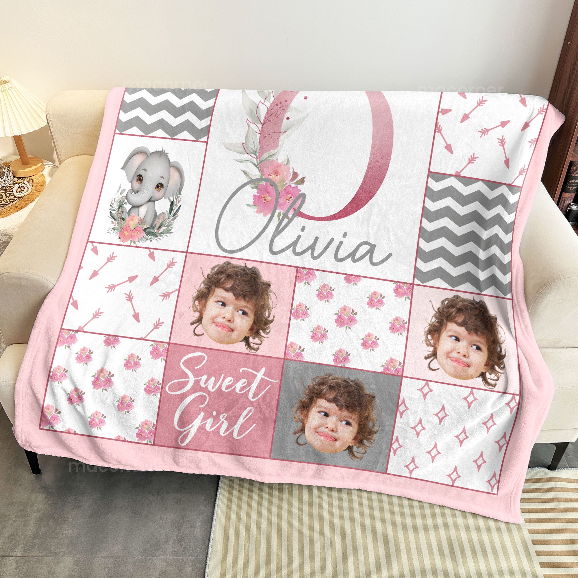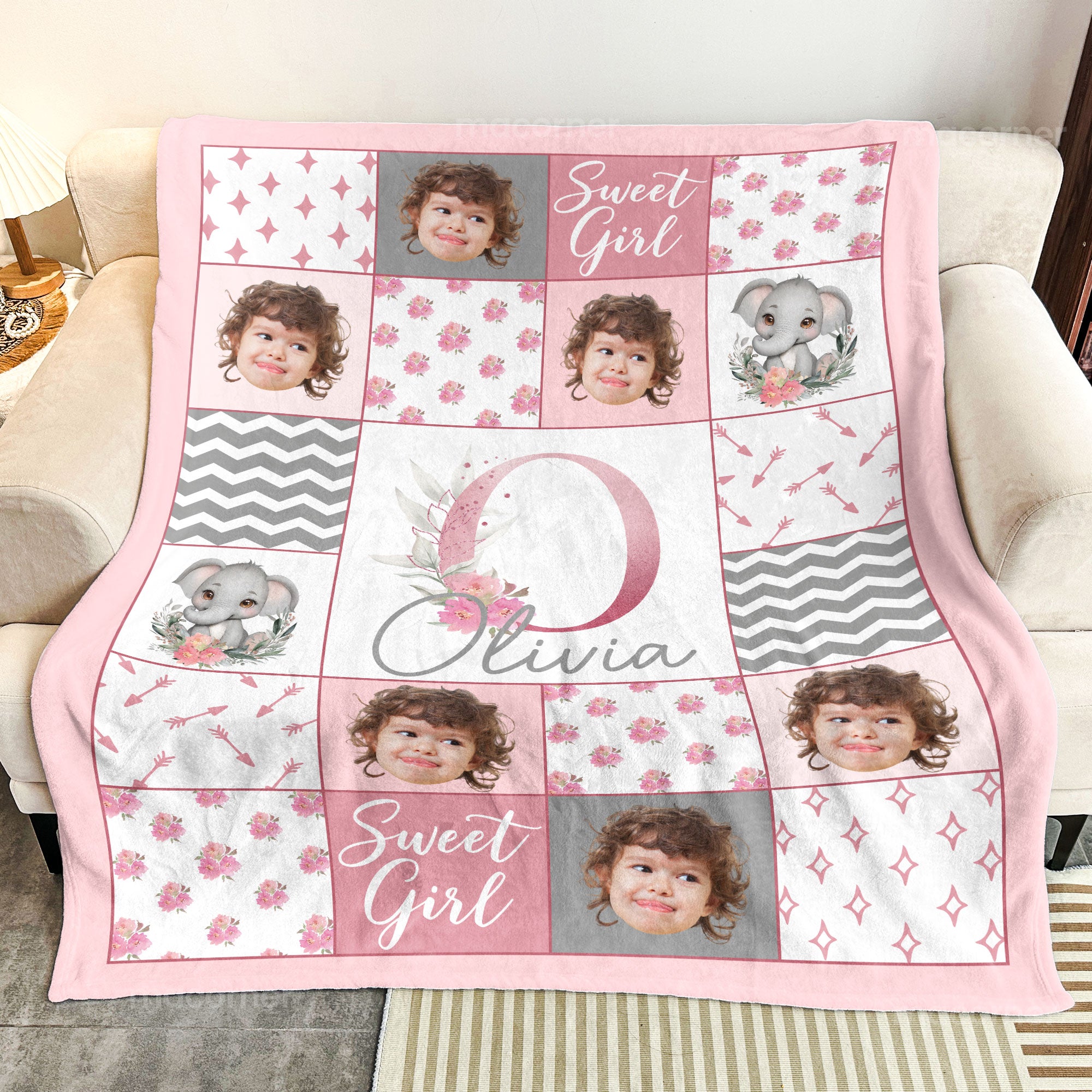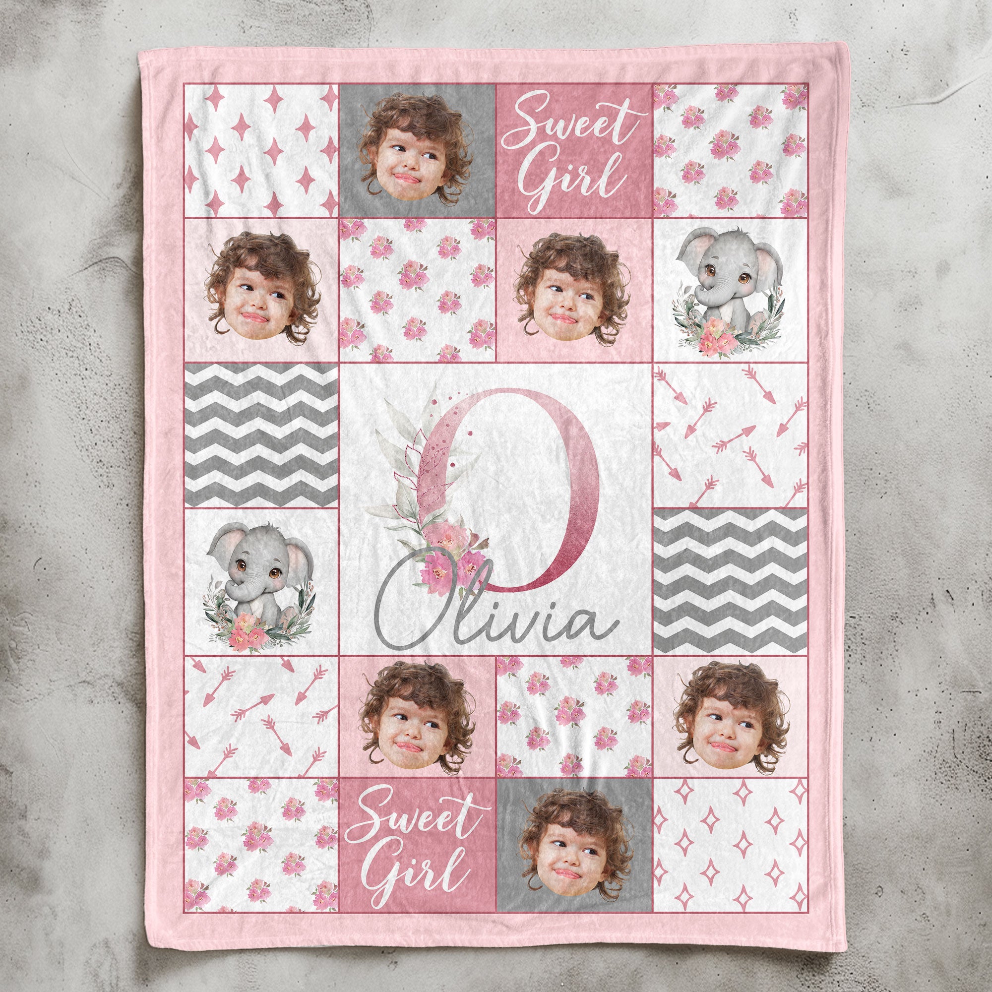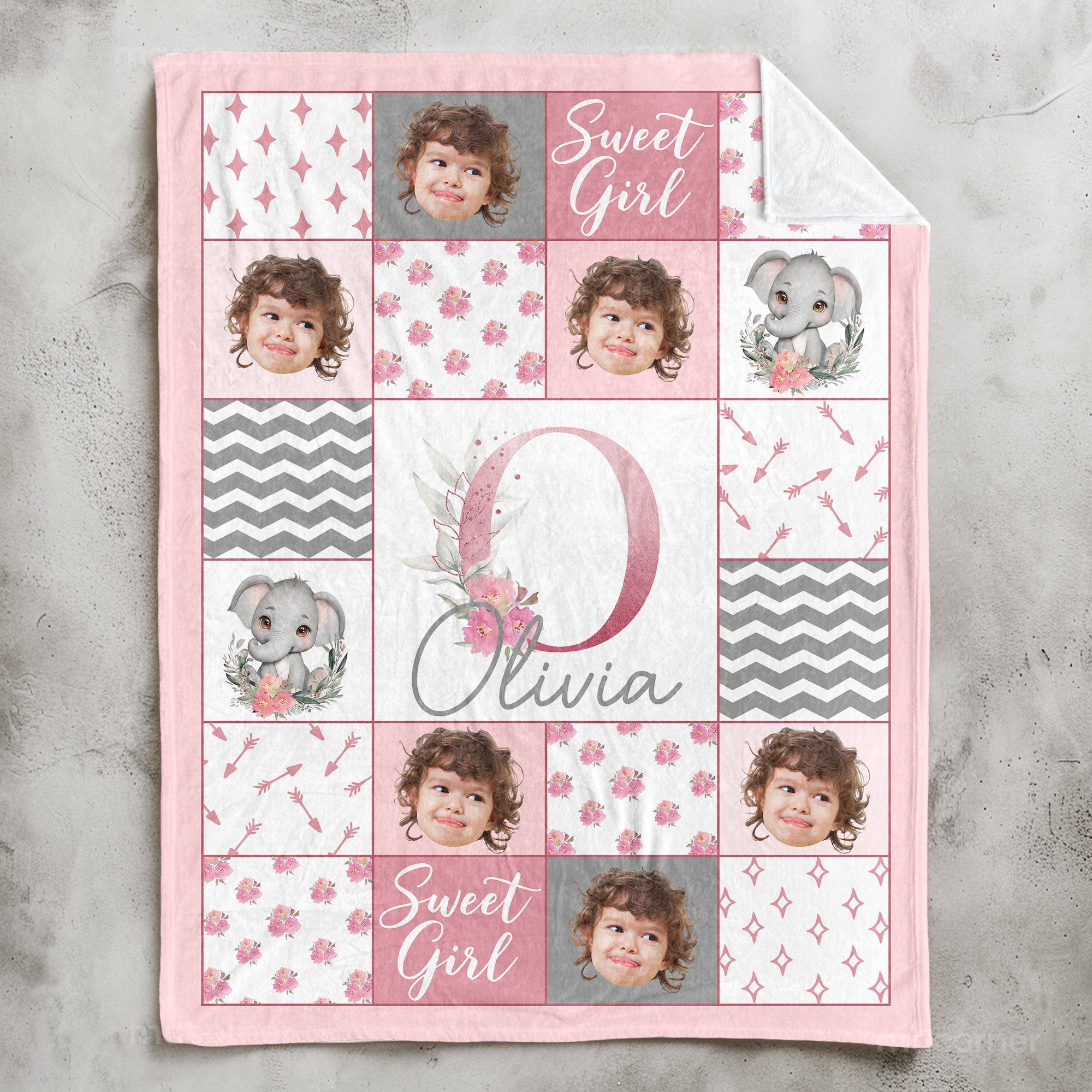 Wrap your little one in love and warmth with our personalized "Sweet Girl" Baby Blanket! This beautiful blanket features a soft pastel design with adorable floral and elephant accents, making it a perfect gift for baby girls. Customized with her name and sweet details, this blanket will become a cherished keepsake for years to come. Crafted from cozy, high-quality materials, it's gentle on your baby's skin and perfect for snuggling during naptime, bedtime, or playtime. Whether you're looking for a thoughtful baby shower gift or a special addition to your nursery, this personalized blanket is a wonderful way to celebrate your "sweet girl"!