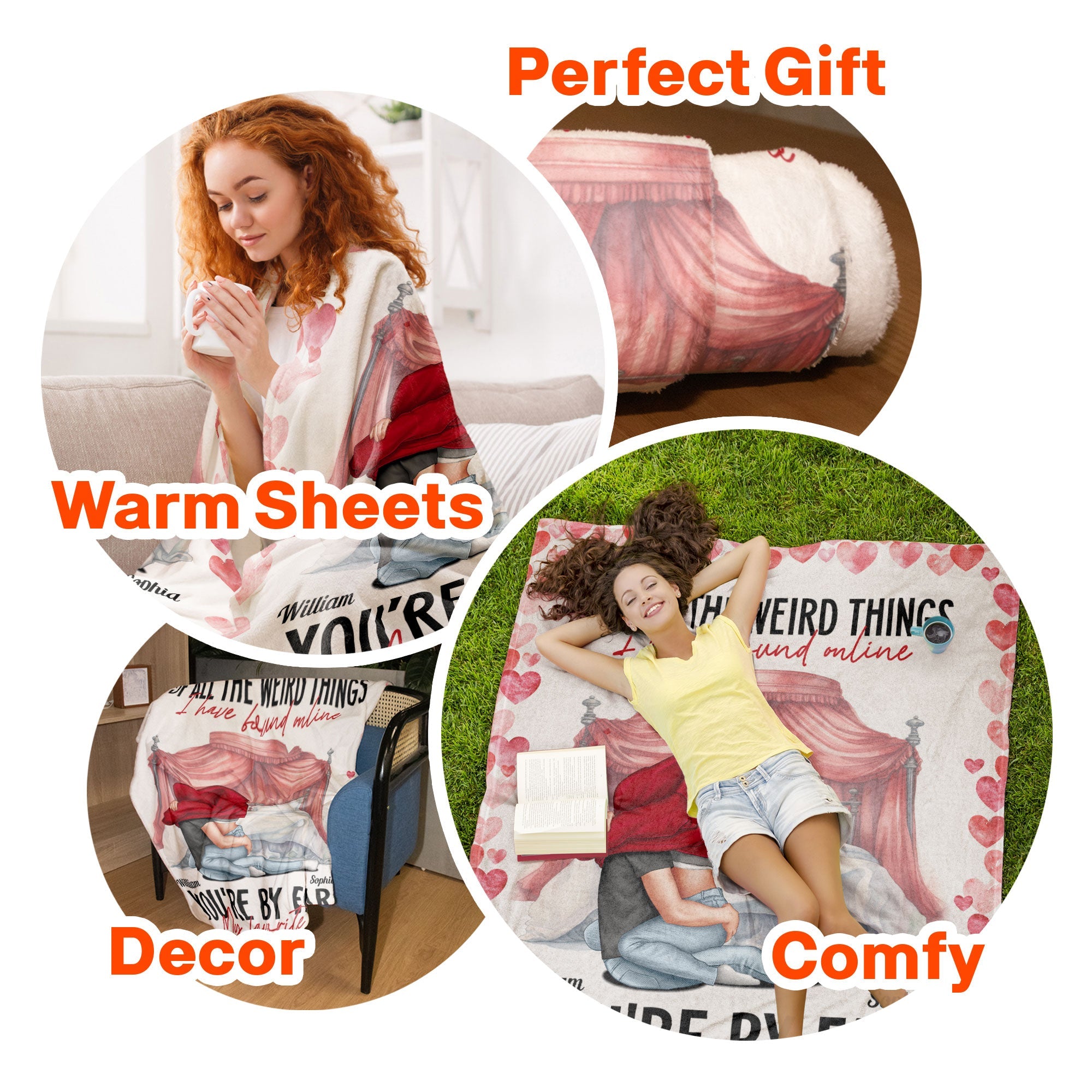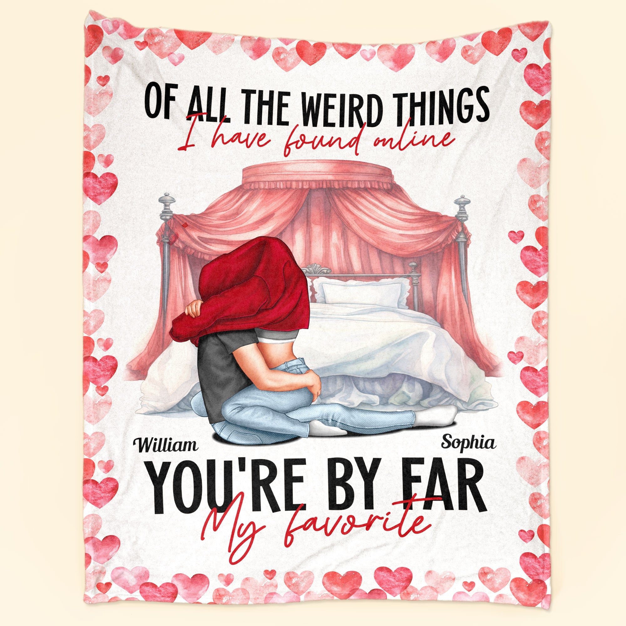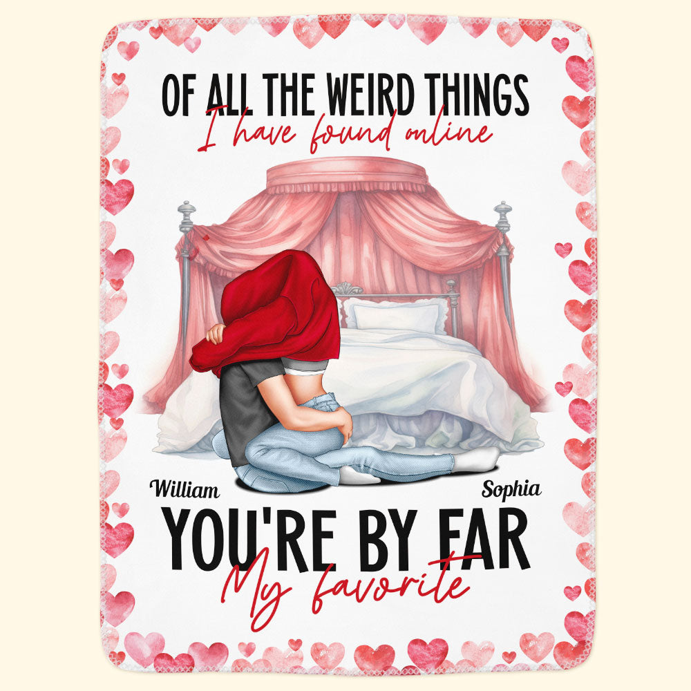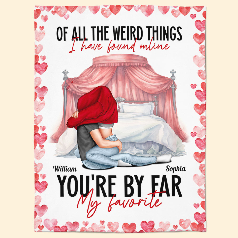 Express your love with a dash of humor using the "Of all the weird things I have found online - You're by far my favorite." This cheeky, customized blanket is a playful and unique way to show your affection and appreciation for your partner, making it a memorable gift for various occasions. Whether it's Valentine's Day, an anniversary, a birthday, or just because, this blanket adds a touch of fun and intimacy to your relationship, reminding your loved one of your deep and passionate love. This uniquely customized blanket is the perfect way to express your feelings, making it an excellent choice for girlfriend and boyfriend gifts, whether it's for a special occasion like Christmas or simply to show your love.