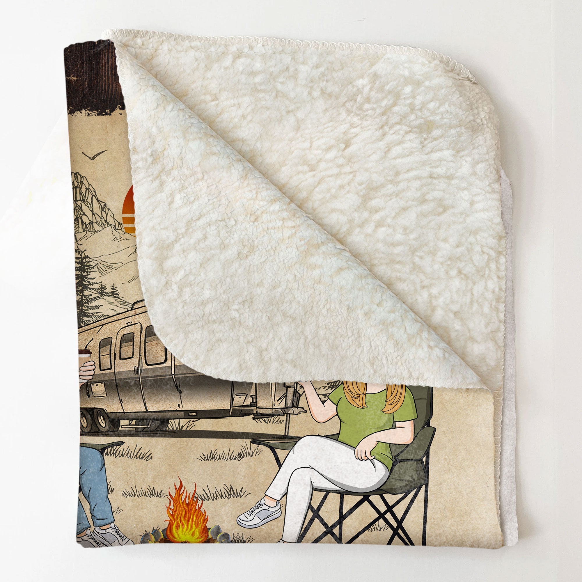 This personalized blanket is a funny gift for husband or a lovely gift for wife who really loves camping. This personalized Campfire and coffee blanket is crafted from premium-quality fabric, meticulously chosen to ensure a luxurious feel against your skin. You can customize your appearance and even include a quote from one of your favorite drinks.