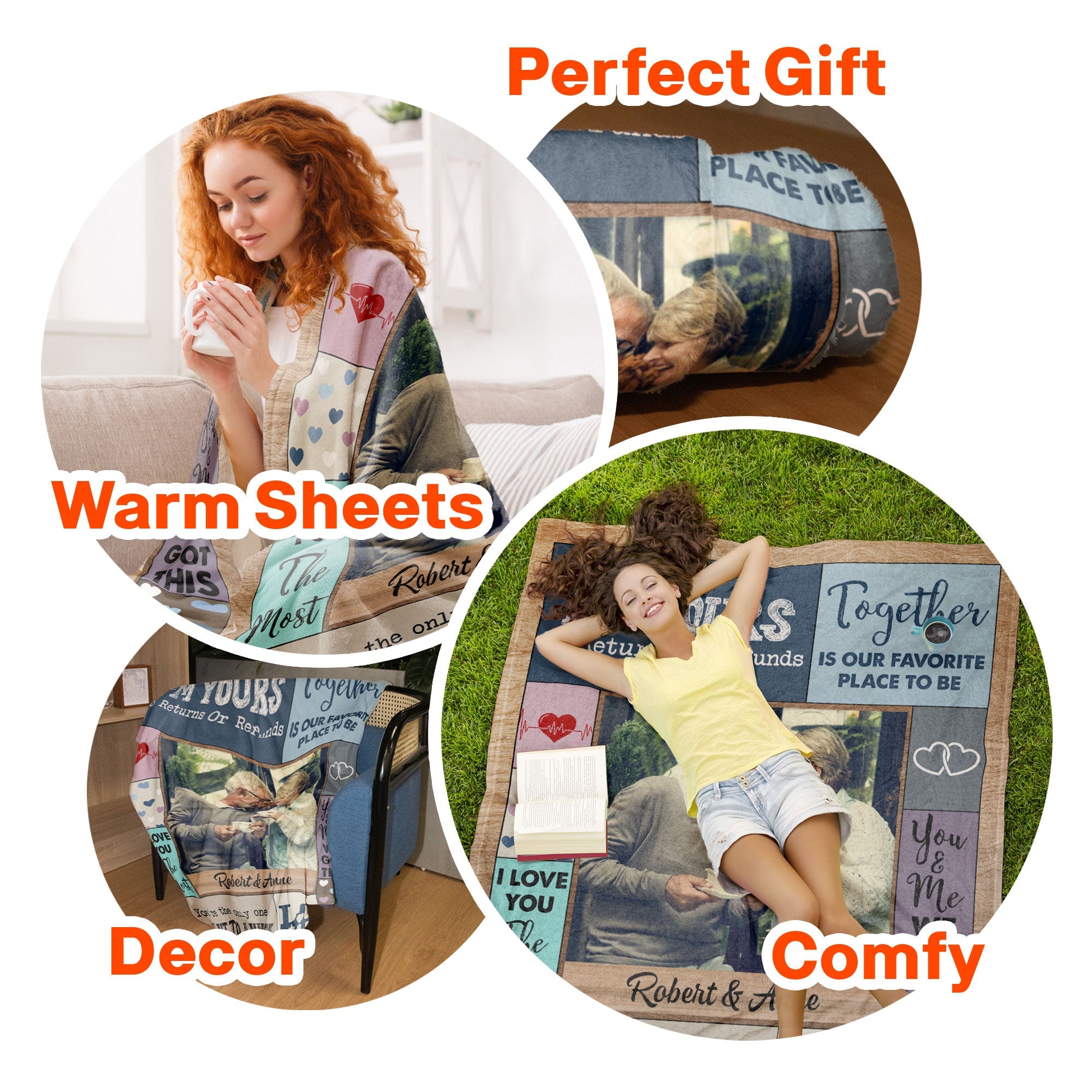 Our Favorite Place To Be - Personalized Photo Blanket - Anniversary Gifts For Her, Him