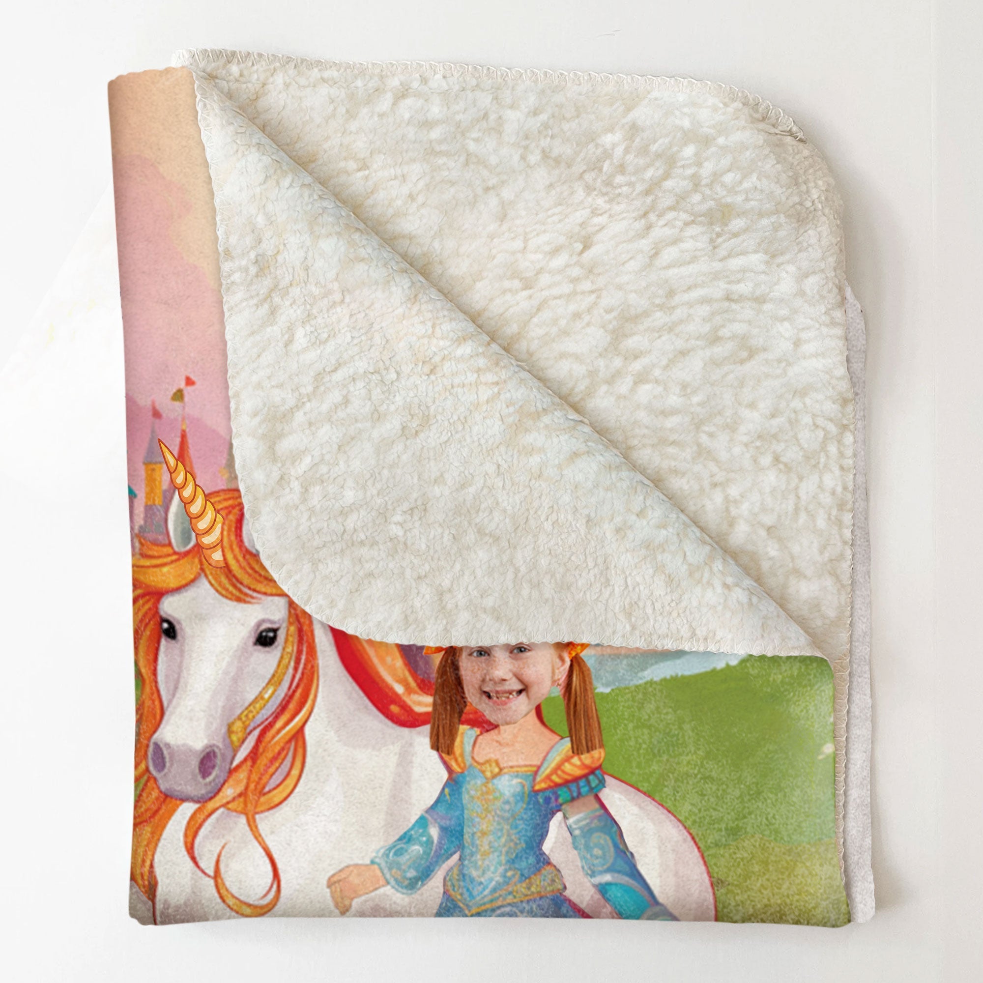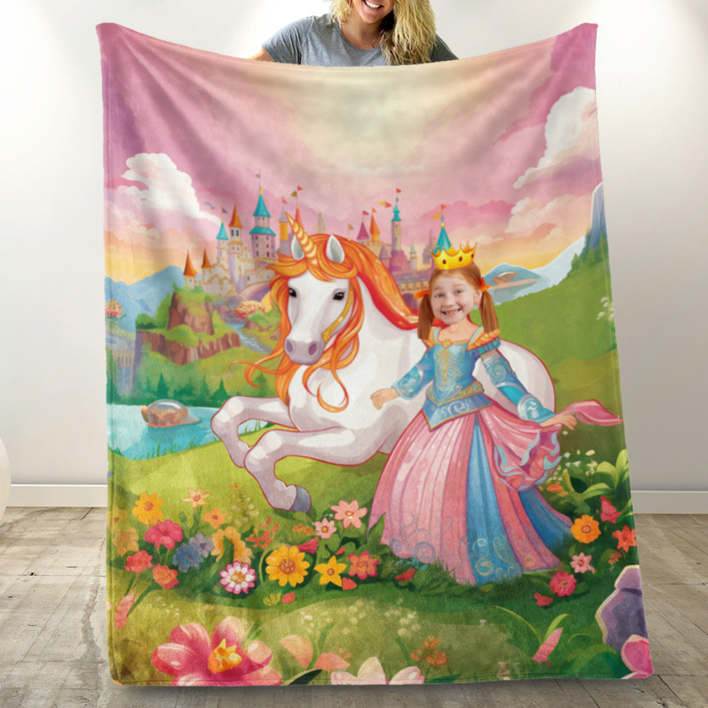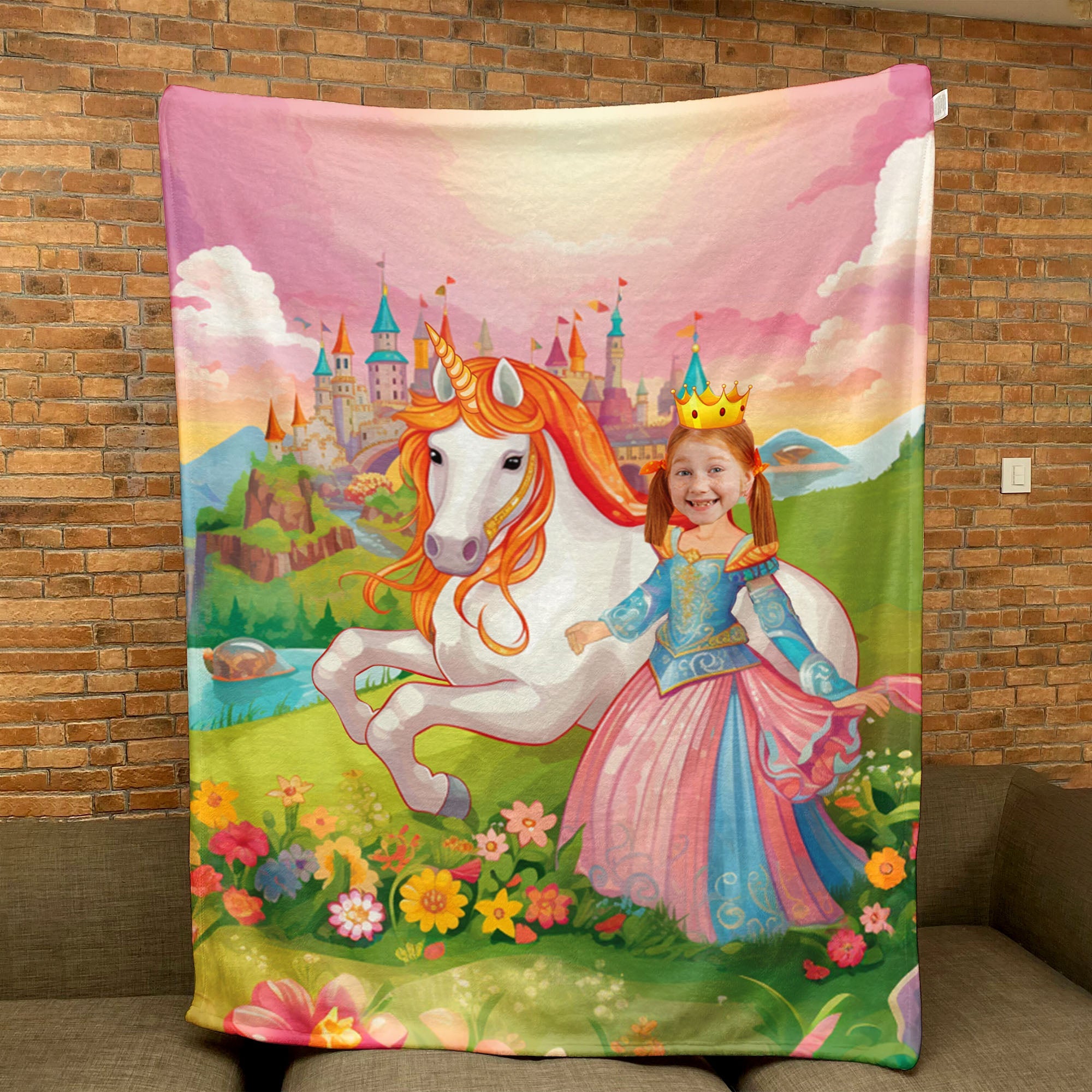 Create a world of enchantment for your little daughter or granddaughter with this Personalized Photo Blanket featuring a princess, fairy tale, and unicorn theme. This magical and cozy blanket is the perfect gift to spark her imagination and keep her warm during bedtime stories or chilly nights. Make her dreams come true with a unique and heartwarming present.