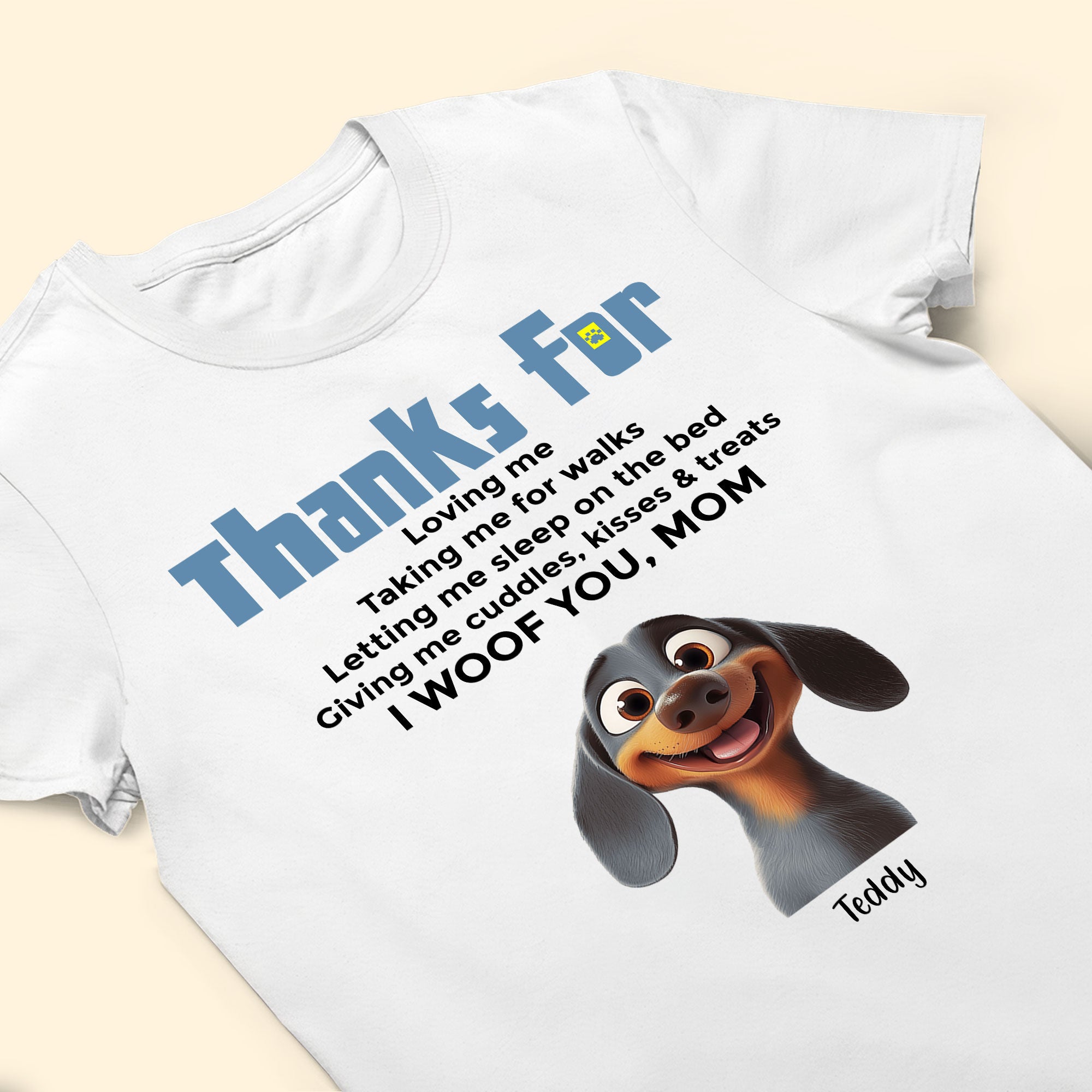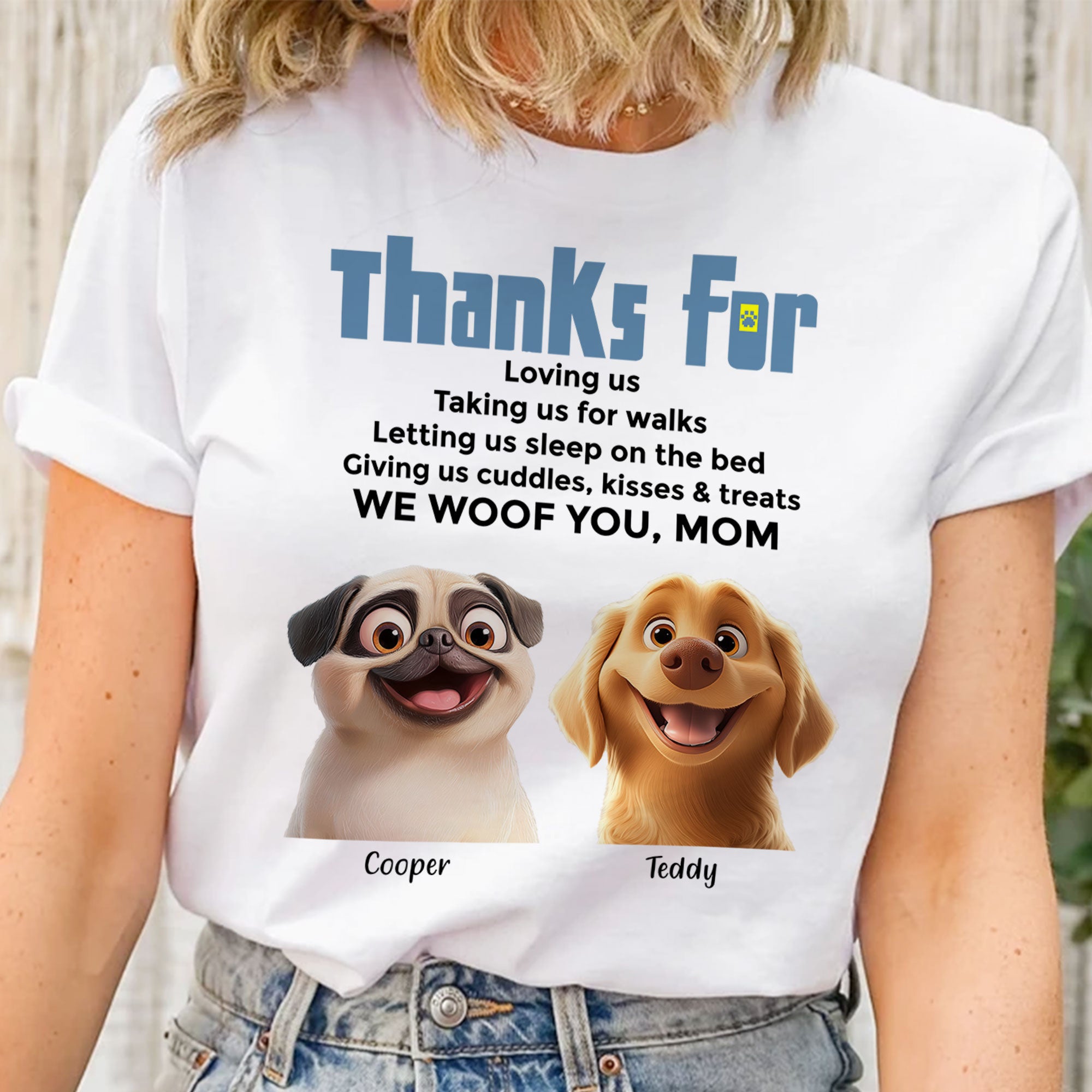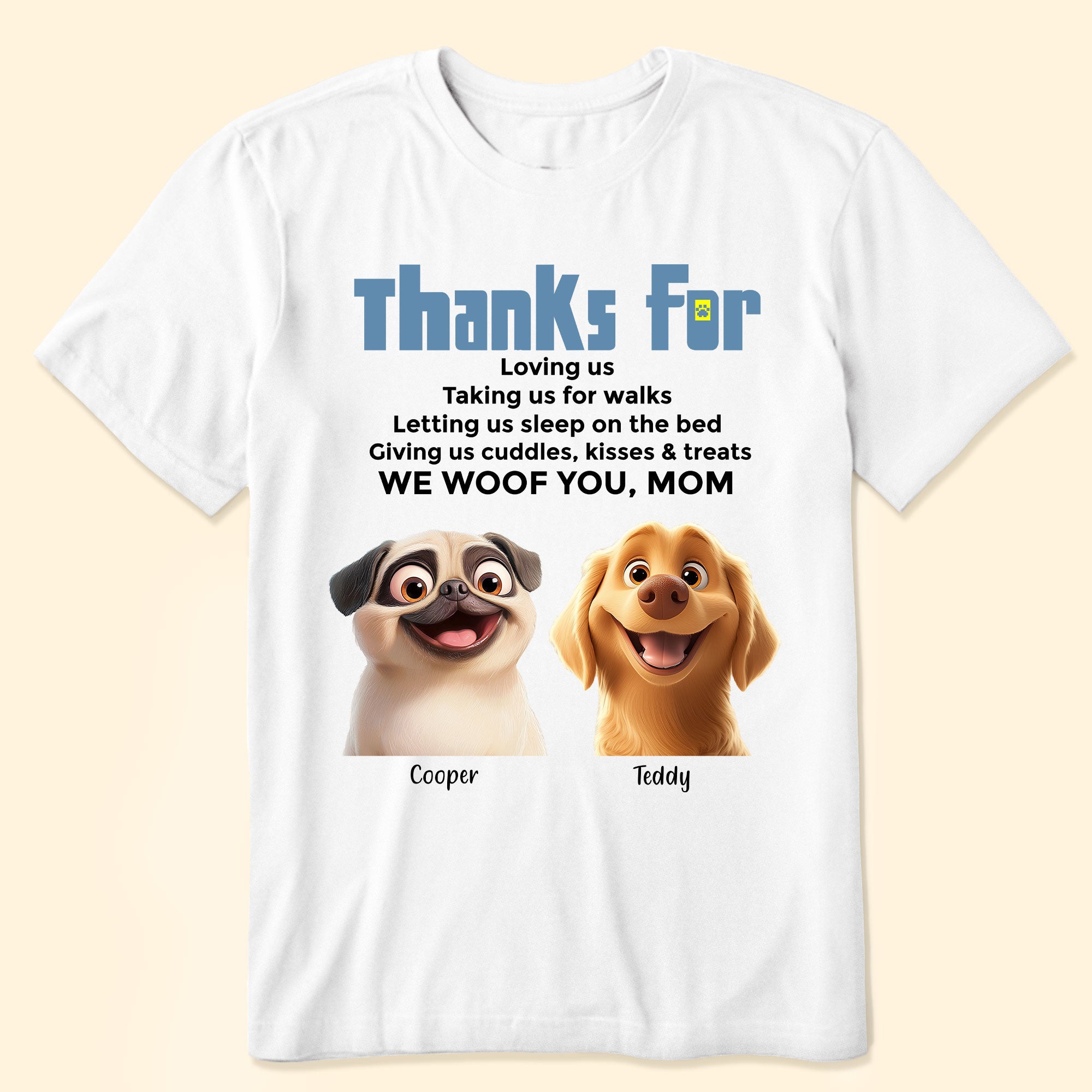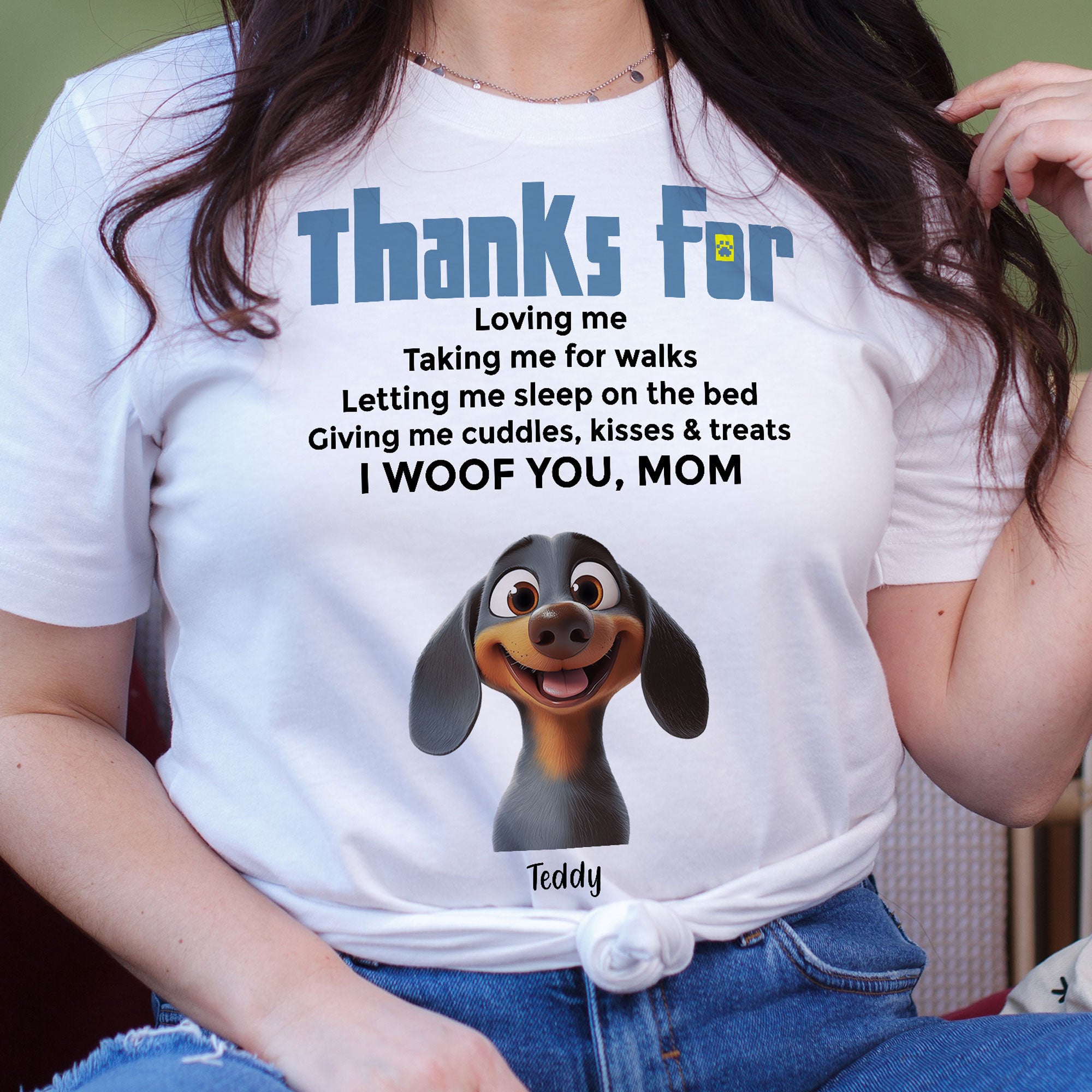 Express your love for your furry companion with this adorable Custom Dog Mom Shirt! Perfect for any proud dog parent, this comfy and stylish shirt features a heartfelt message of appreciation from your beloved pup. Whether you're walking your dog, lounging at home, or out and about, this personalized shirt lets you carry your furry friend's love everywhere you go.