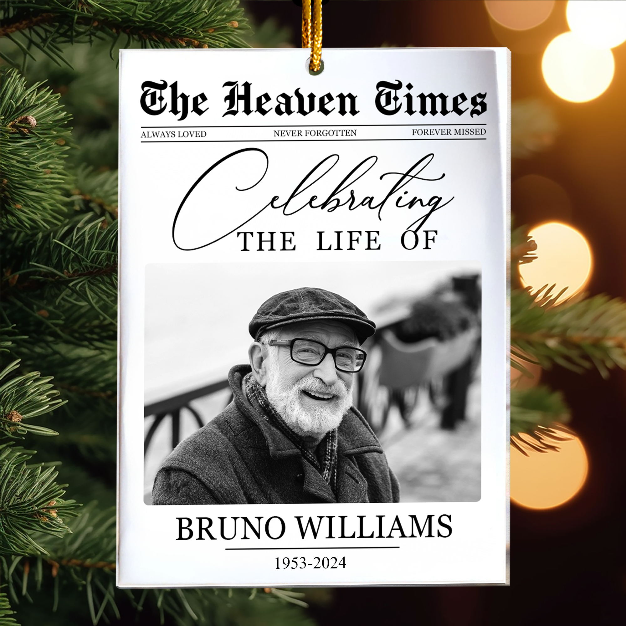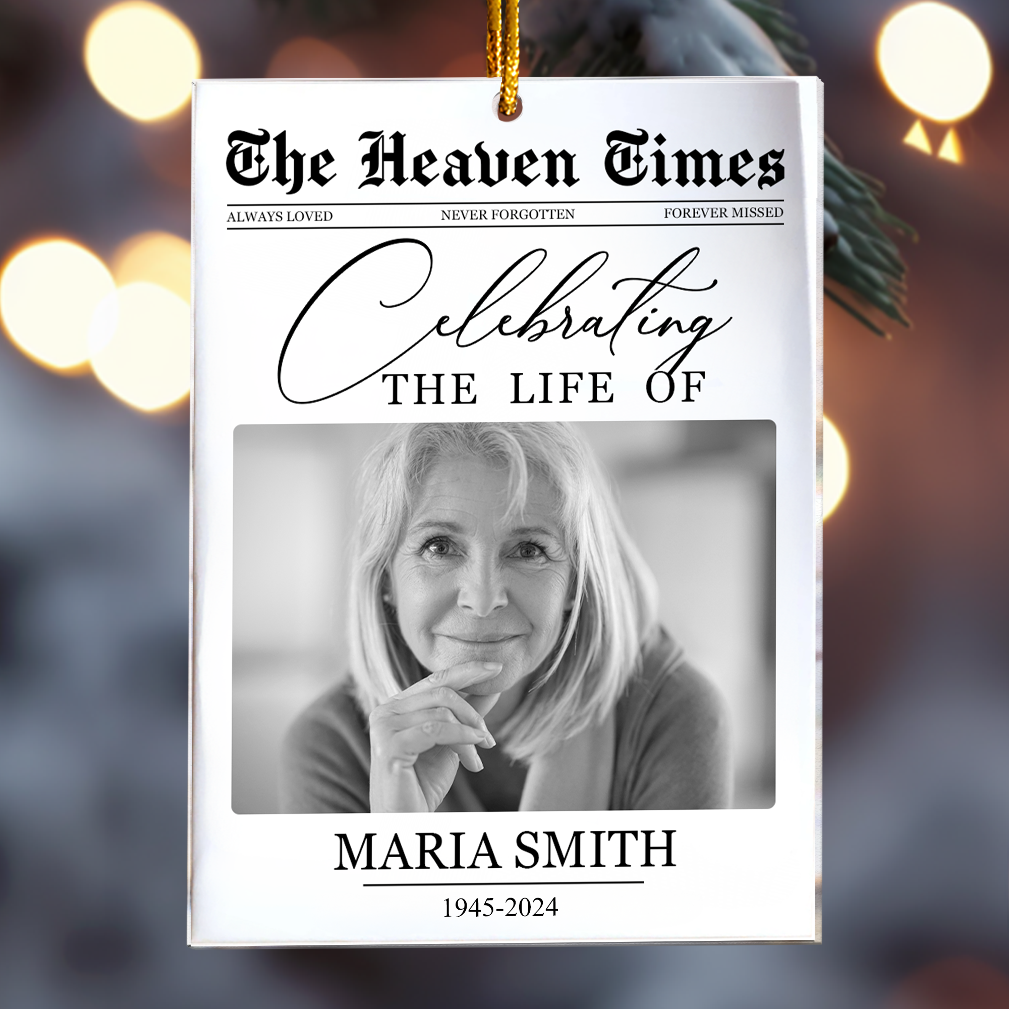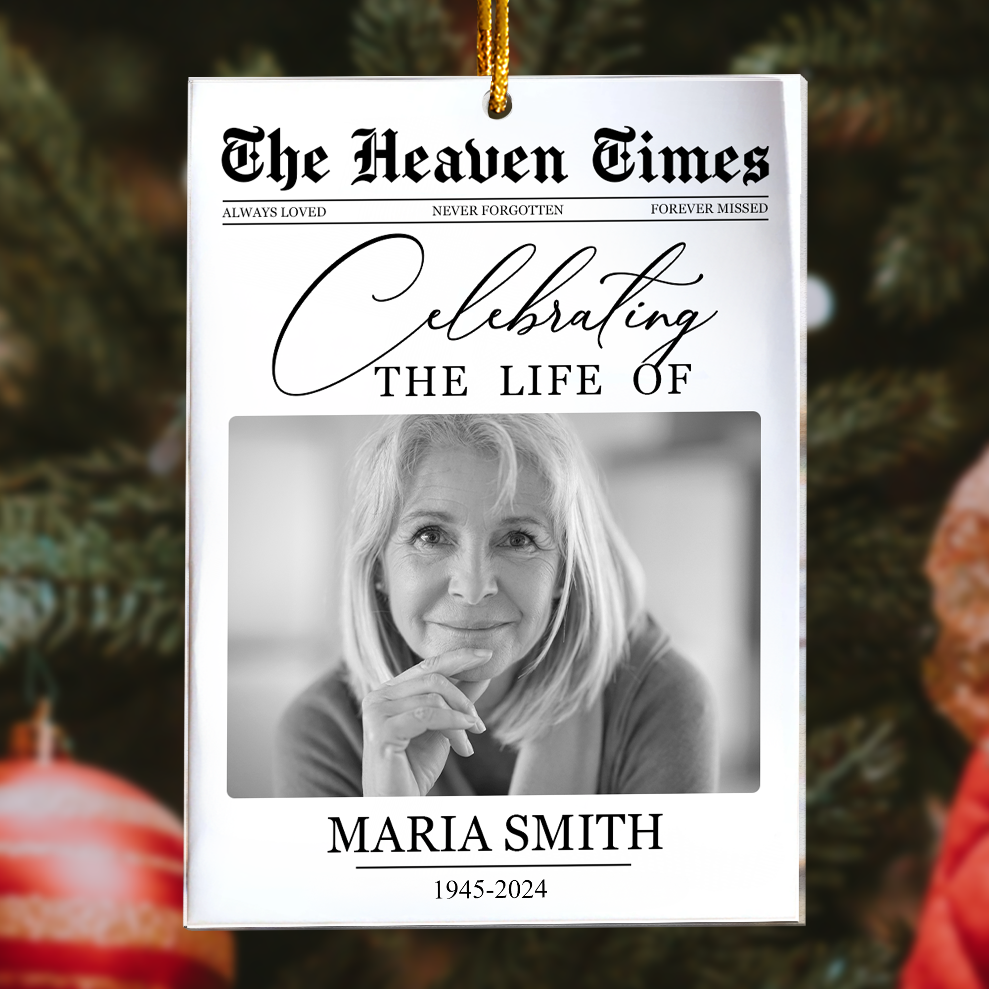 The Heaven Times - In Loving Memory Of Mom, Dad - Personalized Acrylic Photo Ornament