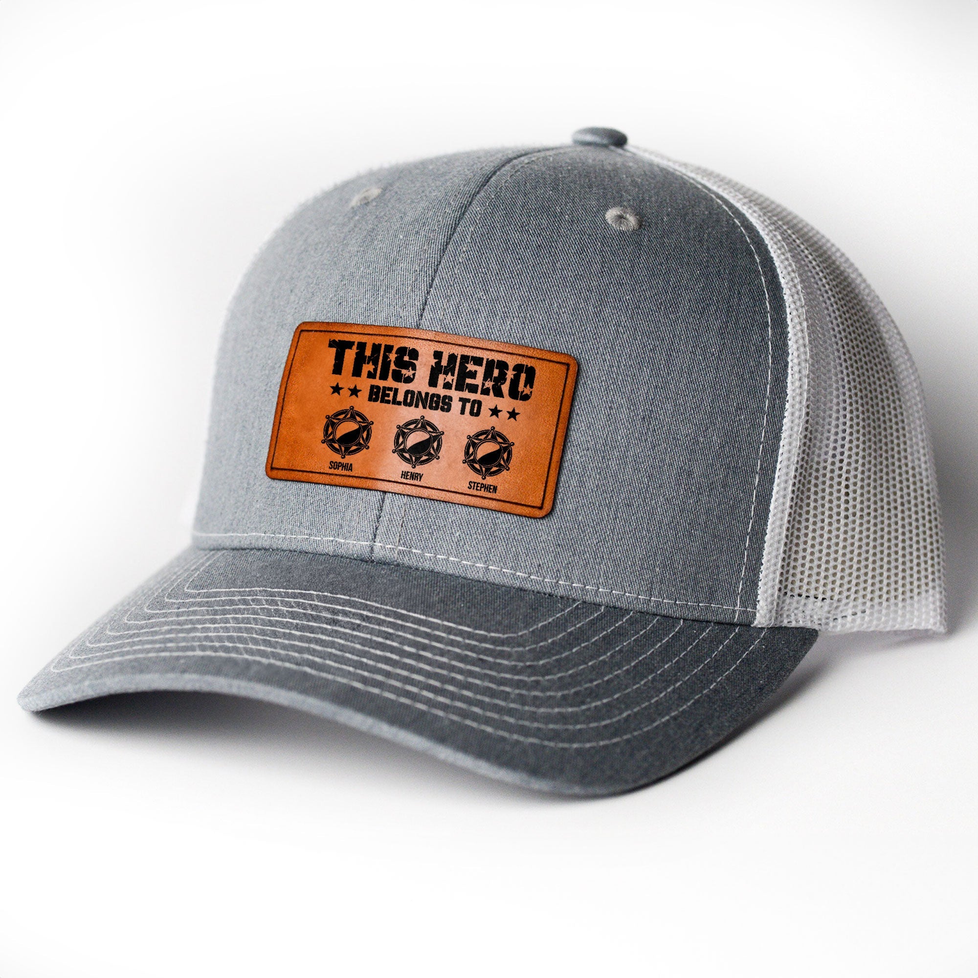 Introducing our Personalized Leather Patch Hat, a heartfelt tribute to the heroes in our lives with the endearing inscription "This hero belongs to me." Printed with a leather patch, this cap is not just an accessory but a symbol of love and admiration. What sets this hat apart is its personal touch—you can customize it with up to five stars resembling your children, making it a unique and cherished memento. Whether it's for your husband, a devoted father, a proud police dad, or any special man who plays a heroic role in your life, this hat is a meaningful gesture for any occasion. Perfect for Father's Day, Christmas, birthdays, or simply to show appreciation and respect, this hat is sure to become a treasured keepsake. Give the gift of personalized warmth and gratitude with our Personalized Leather Patch Hat.