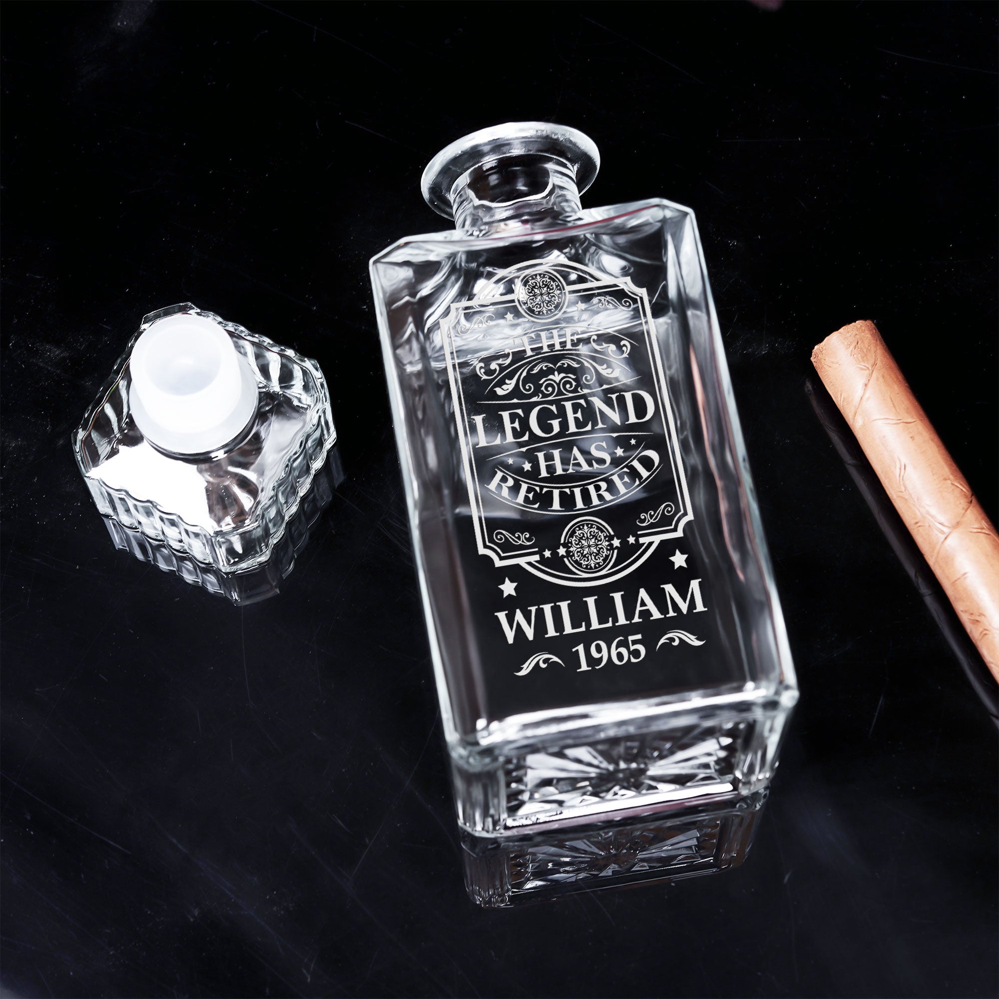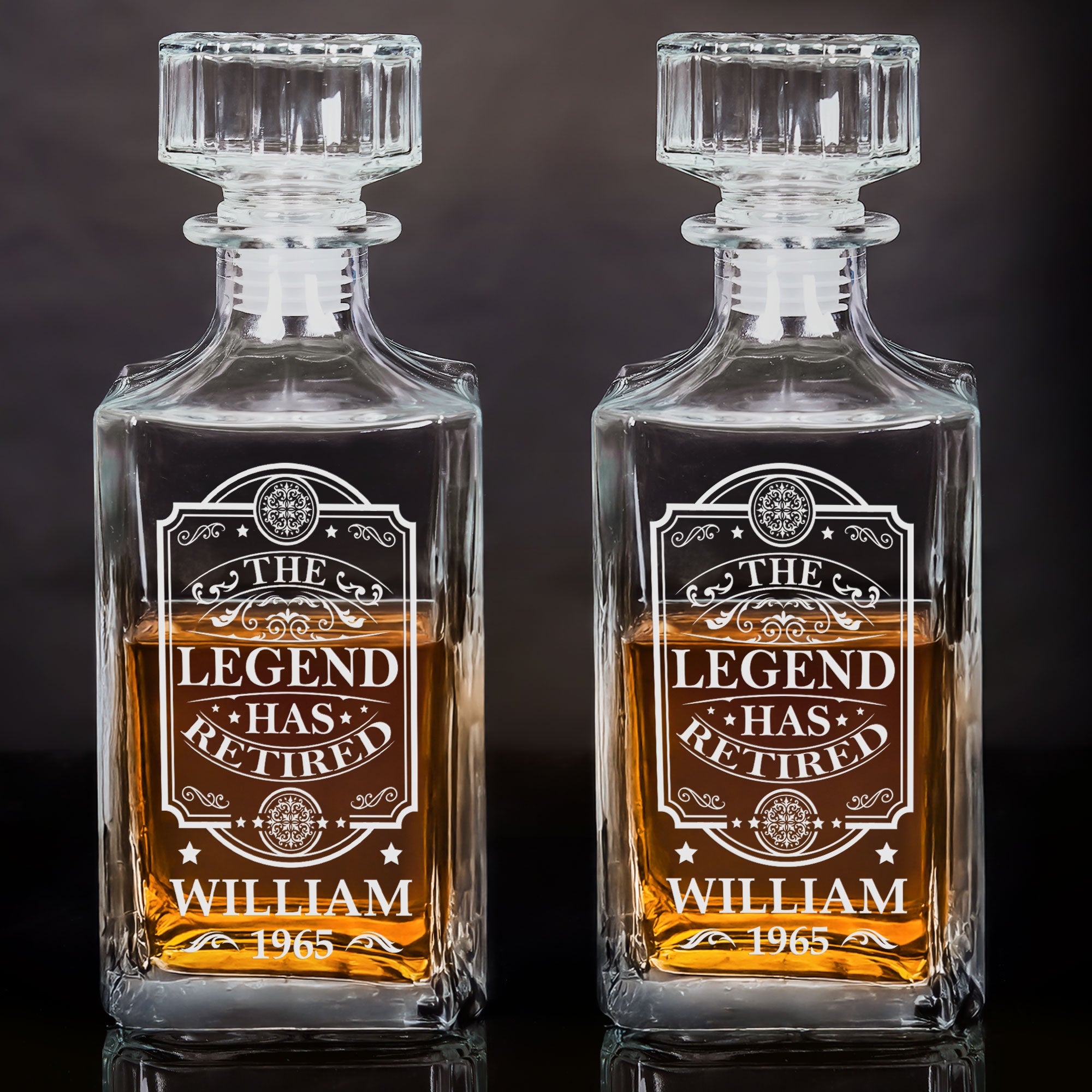 Celebrate a well-earned retirement with this Personalized Whiskey Decanter, printed with "The Legend Has Retired", along with a custom name and year. A perfect keepsake for dad, grandpa, husband, coworker, or any retiree, this elegant decanter is a timeless way to toast to their next chapter in life.