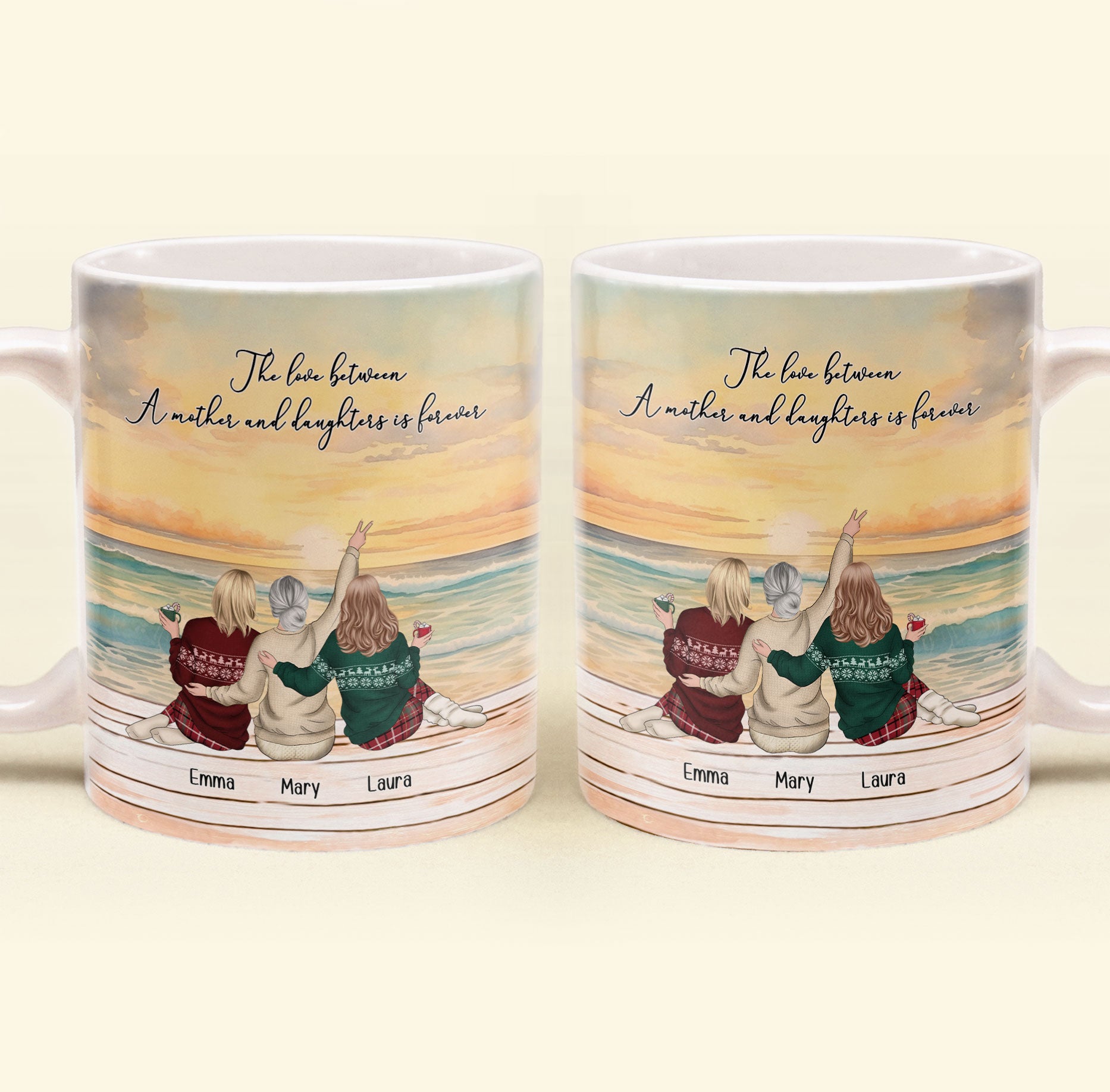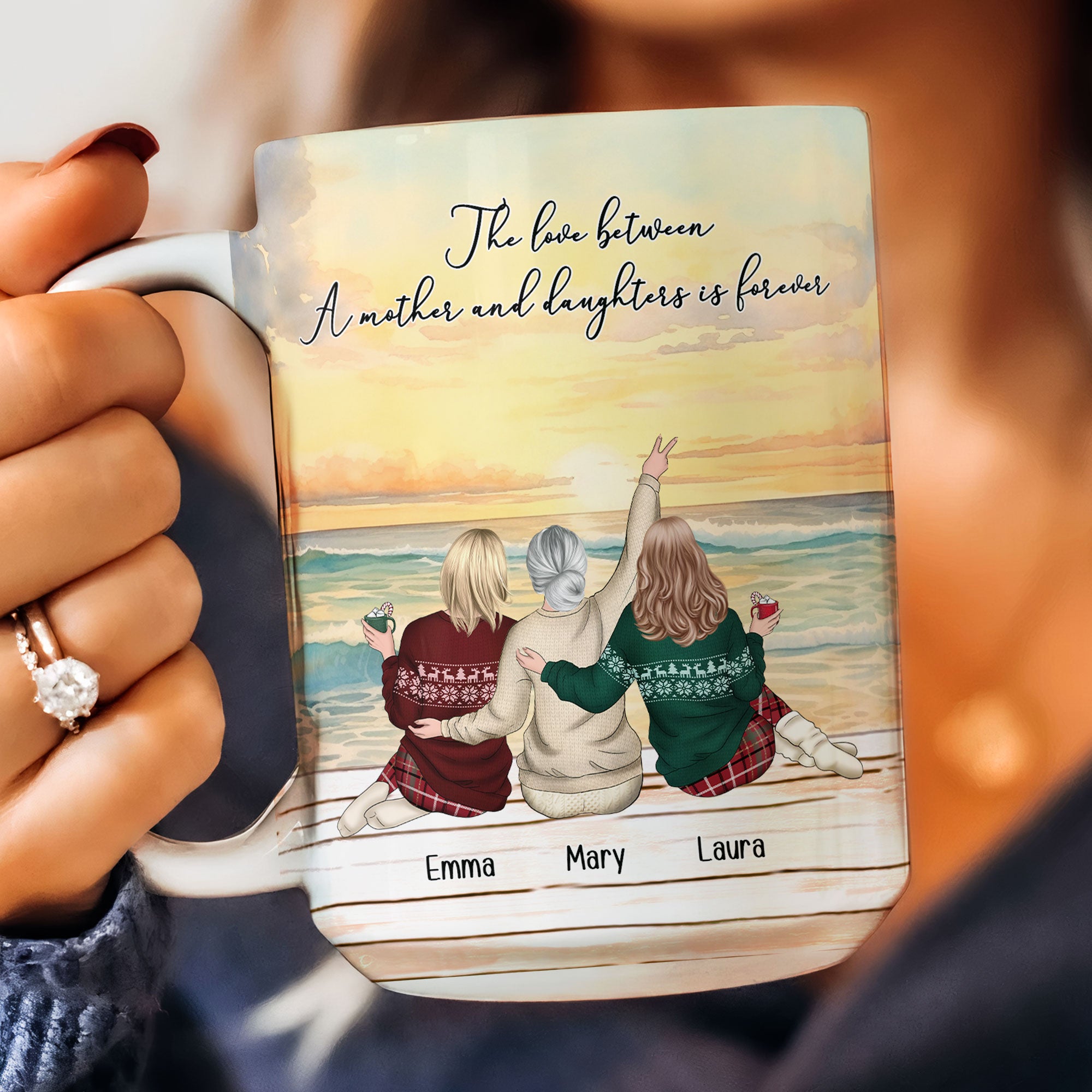 The "The Love Between A Mother And Daughter Is Forever" Personalized Mug is a beautiful and meaningful gift for moms, celebrating the unbreakable bond between a mother and her children. This custom mug can be personalized with names, making it a unique and heartfelt gift that shows just how much she is cherished. Whether it’s for Christmas, Mother's Day, or just to remind her of your love, this mug serves as a daily reminder of the deep connection between a mother and her daughter. Perfect for sharing a warm drink while reflecting on the precious moments shared together.