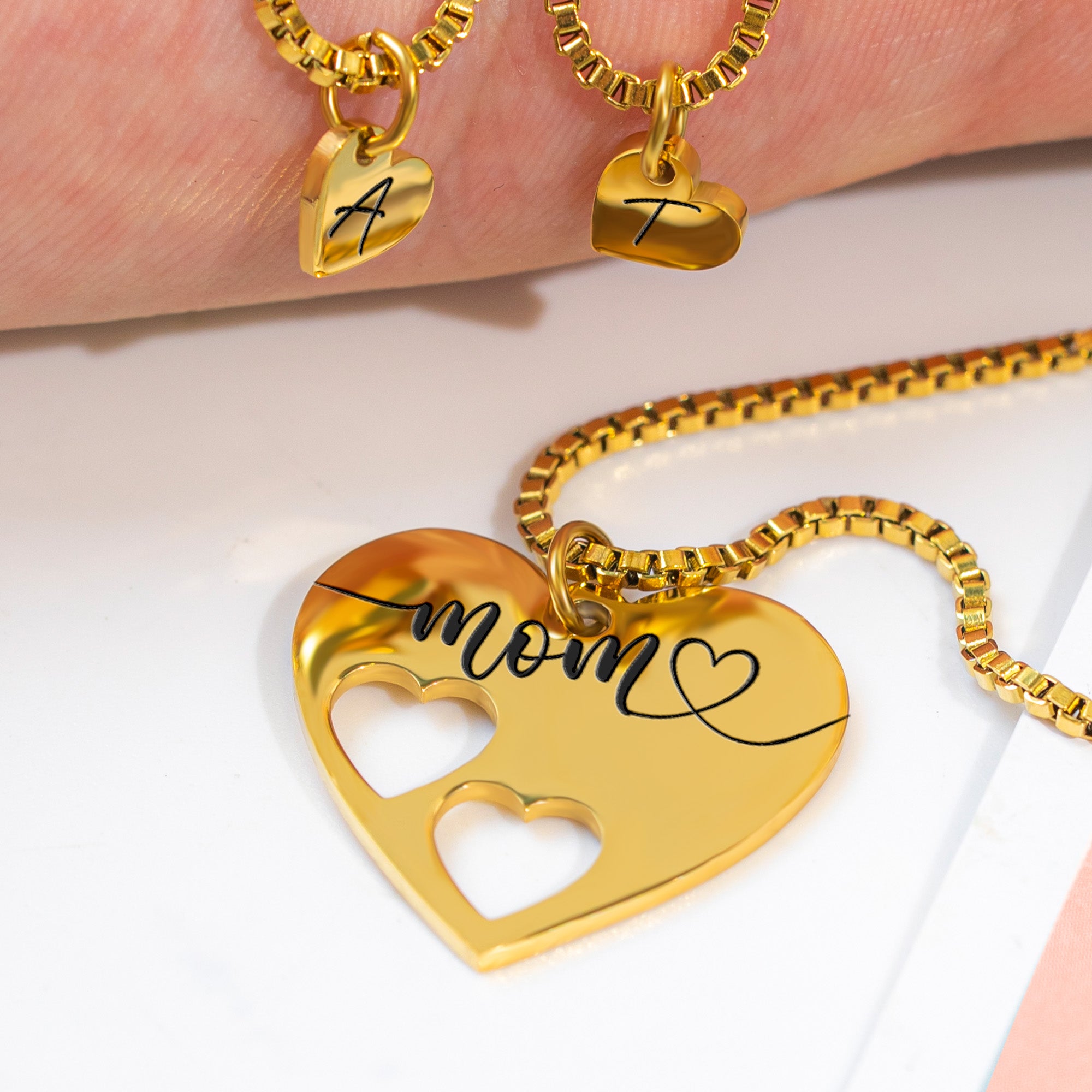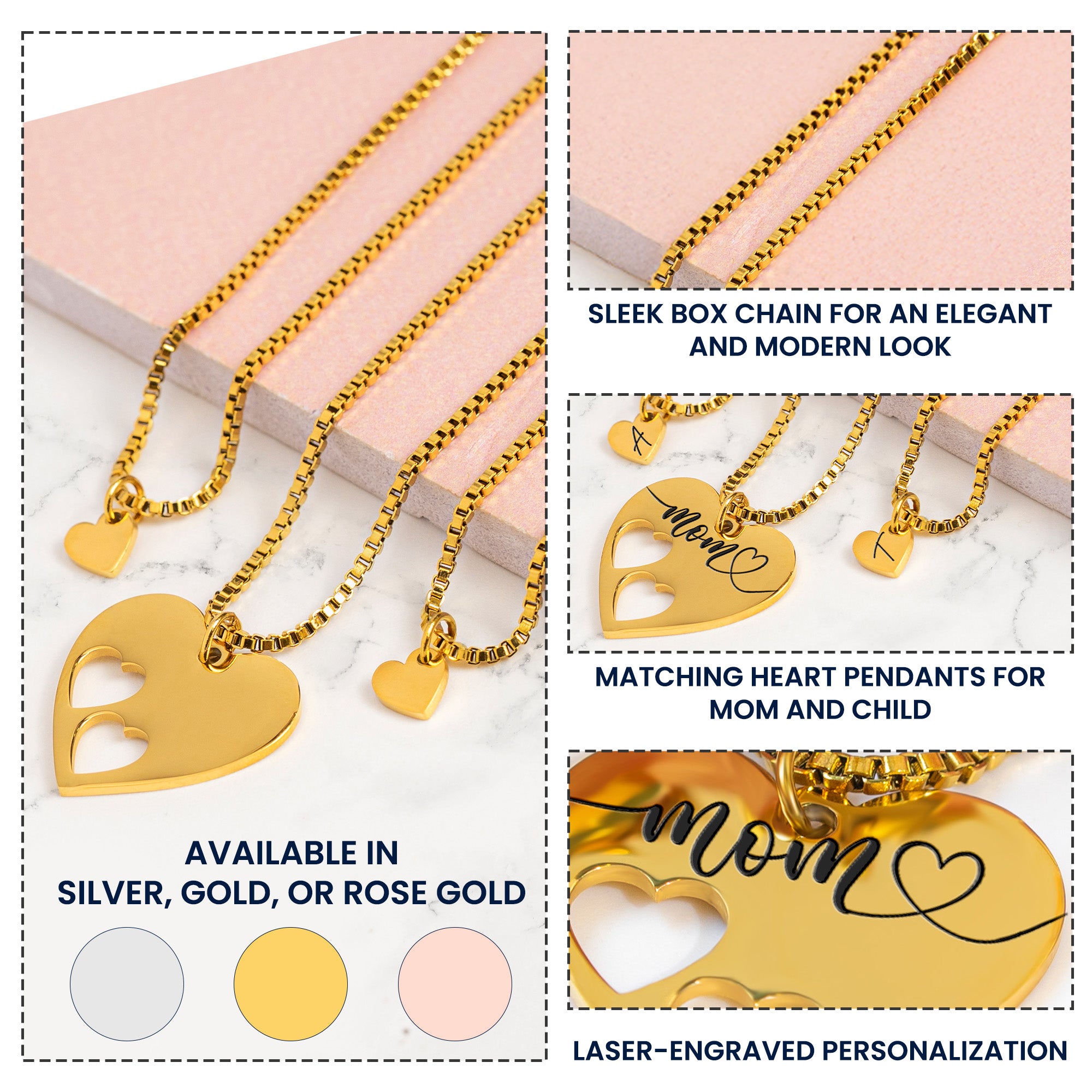 + Matching heart pendants designed for mom and child.