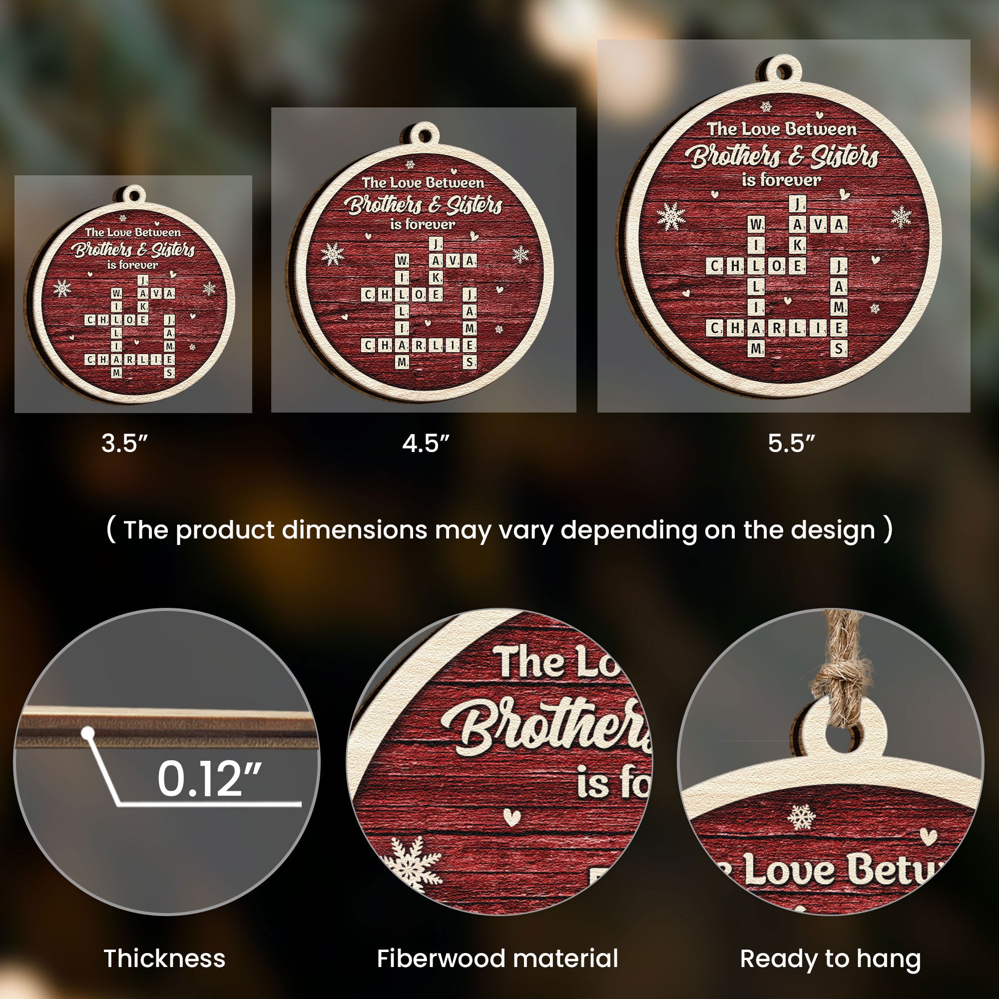 Perfect for Christmas, birthdays, anniversaries, or any occasion that calls for a unique testament of familial bond, this wooden ornament will stand as a cherished treasure among your family heirlooms. Express your love and strengthen your bond this holiday season with a gift that speaks volumes about the timeless bond among siblings. Delicately carved with a heartfelt message, this ornament serves as a constant reminder of the love that forever flows between brothers and sisters. Don't delay, adorn your tree this season with an ornament that stands for an endless bond of love.