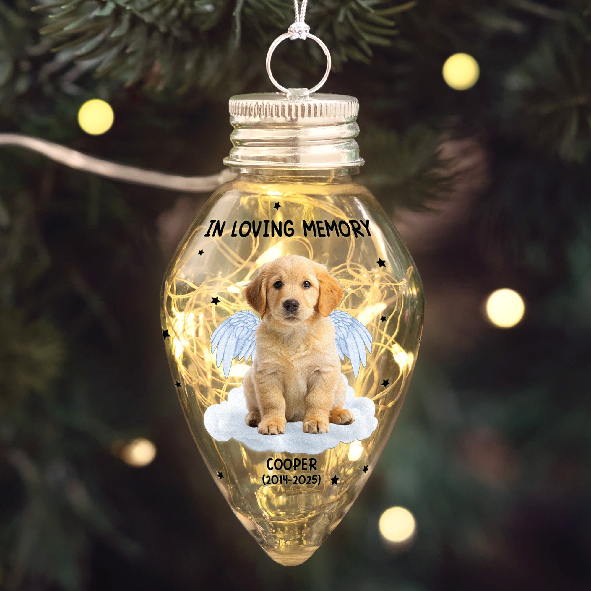 Brighten a special someone's home this Christmas season with our LED Light Bulb, a lovely sentiment that your cherished pet's memory will forever burn bright. This unique gift allows you to personalize it with a heartwarming photo, serving as a perfect memorial that will touch their soul on a Christmas Eve. All pet lovers who miss their beloved dog or cat will appreciate this gentle reminder that their pet's light will continue to shine in their hearts. Perfect for Christmas, memorial days, anniversaries, or any occasion when you want to commemorate your beloved four-legged friend.
