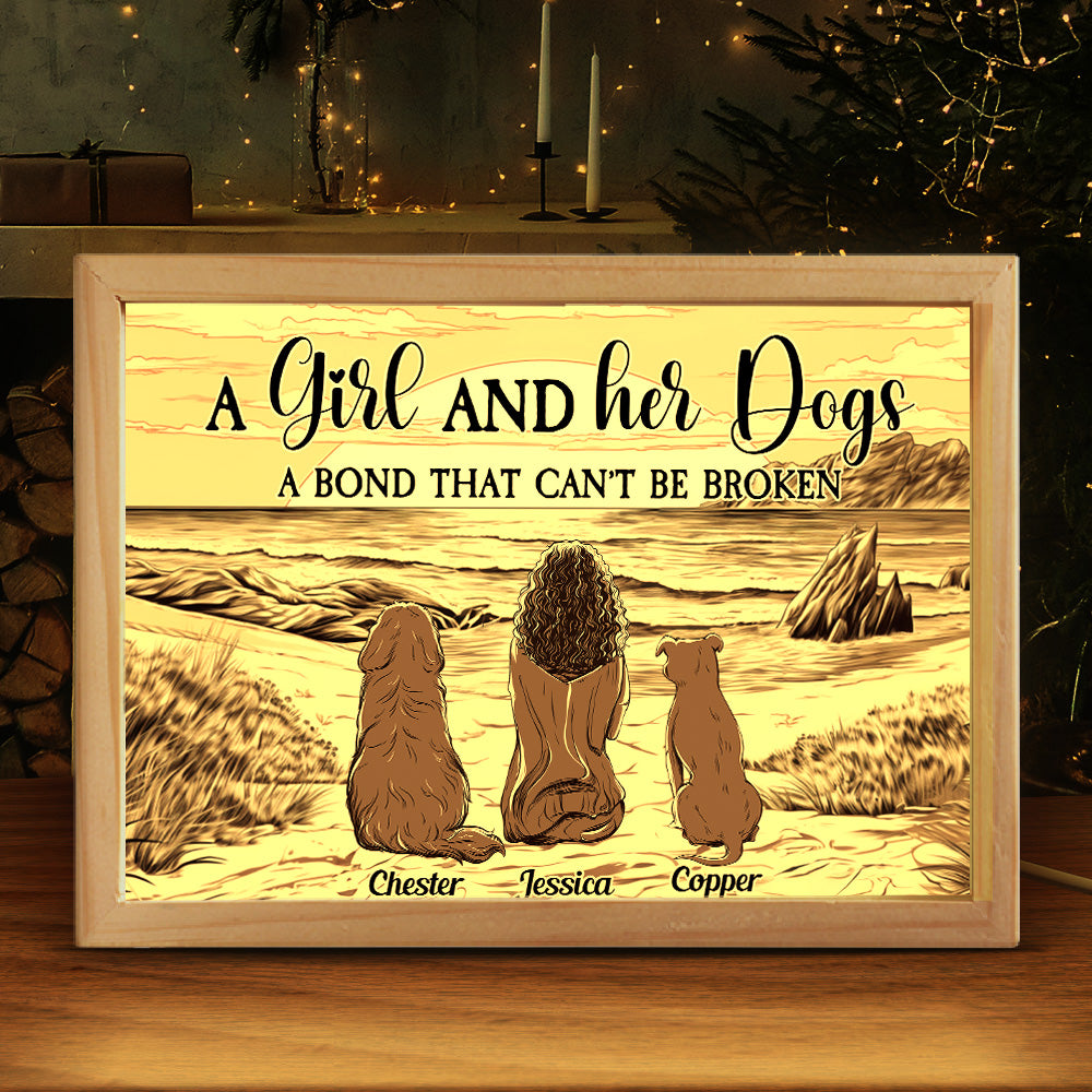 A Girl And Her Dogs A Bond That Can't Be Broken - Personalized Frame Light Box