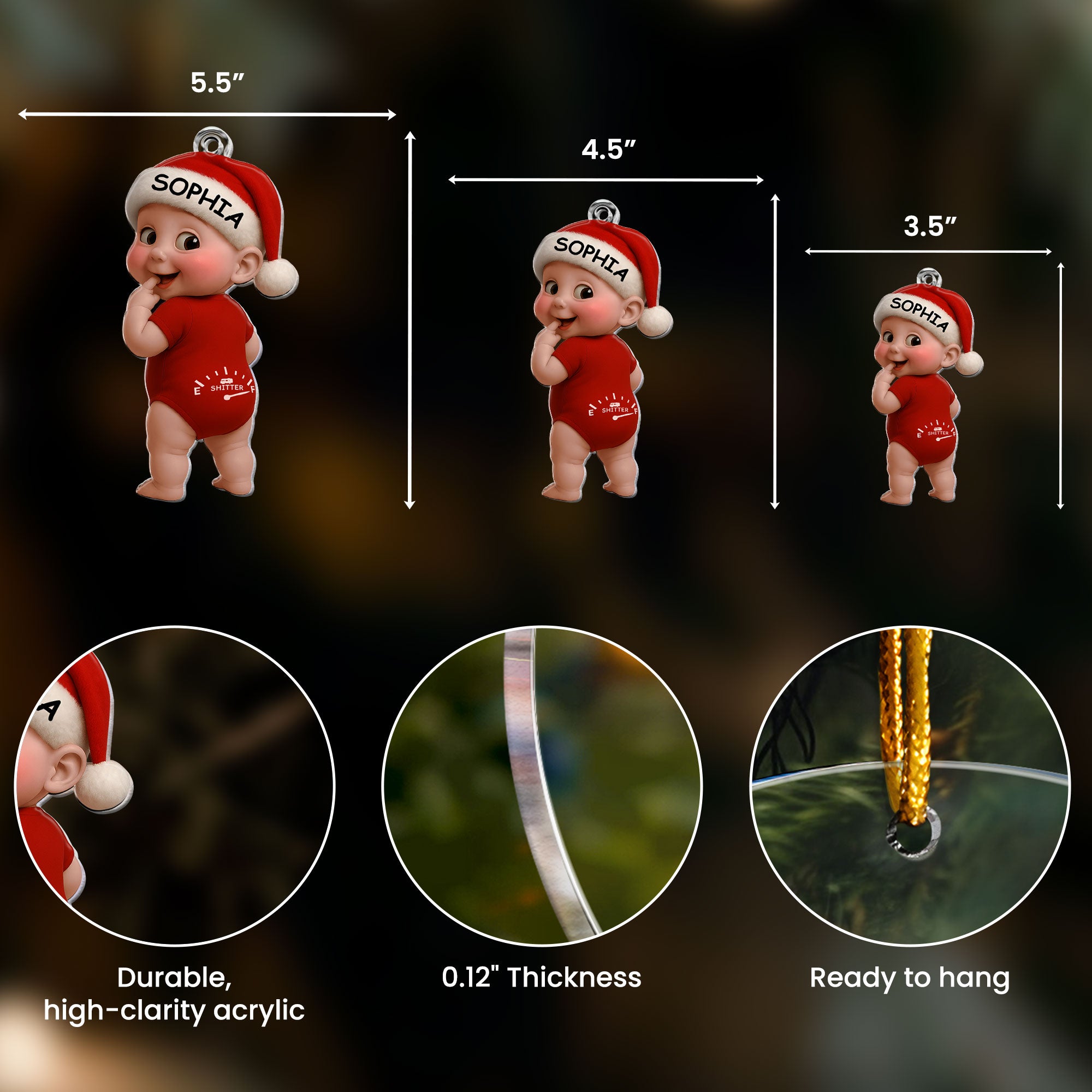 This ornament is a perfect gift for new parents who are celebrating their child's first Christmas, and is sure to bring a lighthearted smile. It serves as a lovely reminder of a truly special time in a family's journey, and the fun and excitement shared during the festive season. Whether it's for Christmas or commemorating newborn milestones, this ornament is a present full of love and humor. Hang it up on your tree and enjoy the reminiscence of the joyful celebrations. Don't hesitate, get one today to celebrate those delightful festive moments.