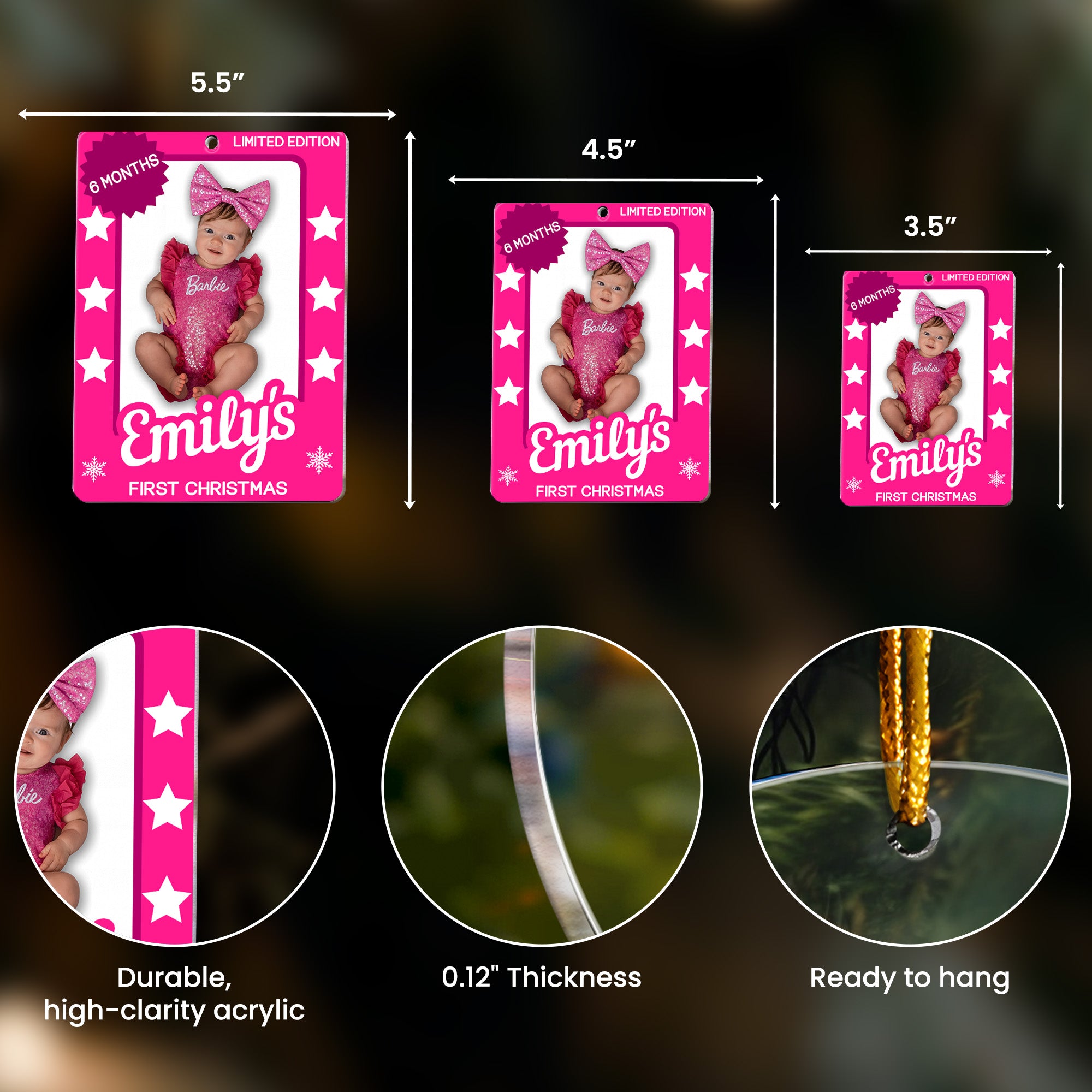 Capture your baby's first Christmas in a wholly unique way with our custom shaped acrylic ornament. Aptly titled 'Baby's First Christmas Toy Box,' reveal those heartwarming memories in a personalized way. It's an ideal gift that reflects the sentiment and beautiful bond established during a child's first festive season. Light and durable, it beautifully immortalizes that cherished photo you choose, perfect for family members who relish in the joy of a kid's happiness.