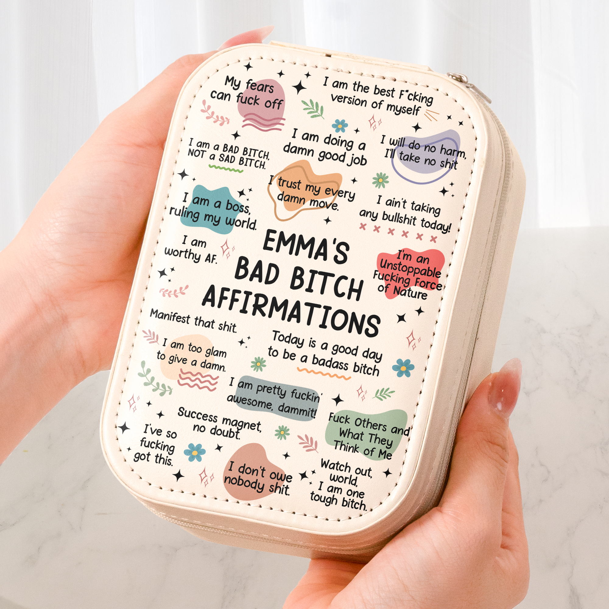 Featuring a stylish makeup and jewelry box with a built-in LED mirror, this practical yet sentimental gift will motivate them every time it’s used. Whether it’s for applying makeup, styling hair, or simply enjoying a moment of self-care, they’ll always be reminded of love and support. This personalized box is a perfect keepsake, adding a touch of luxury and affection to their daily routine.