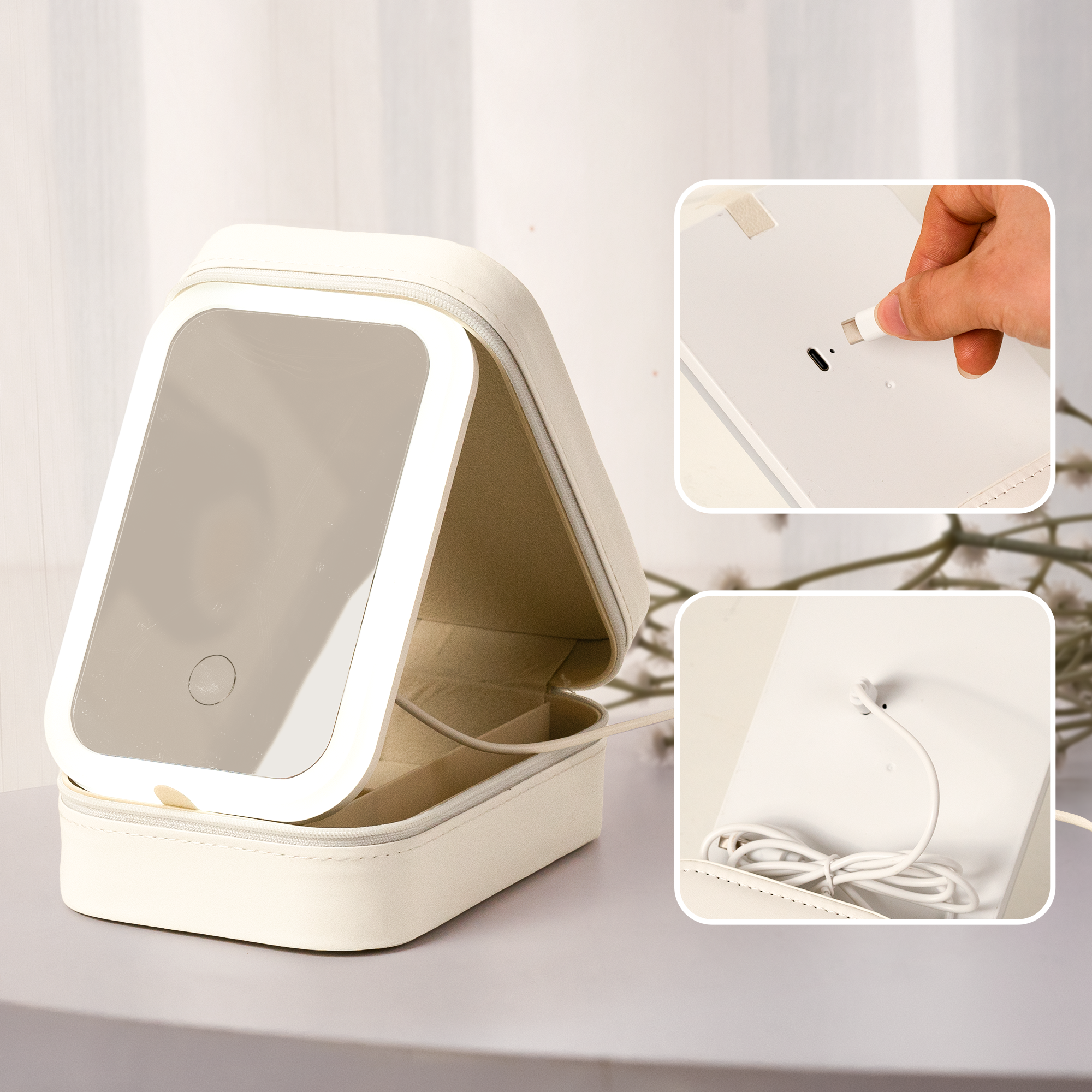 + Compact & Travel-Friendly: Lightweight and portable, this makeup bag is rechargeable via a Type-C cable. It’s the perfect travel companion, keeping you ready for quick touch-ups wherever you go.