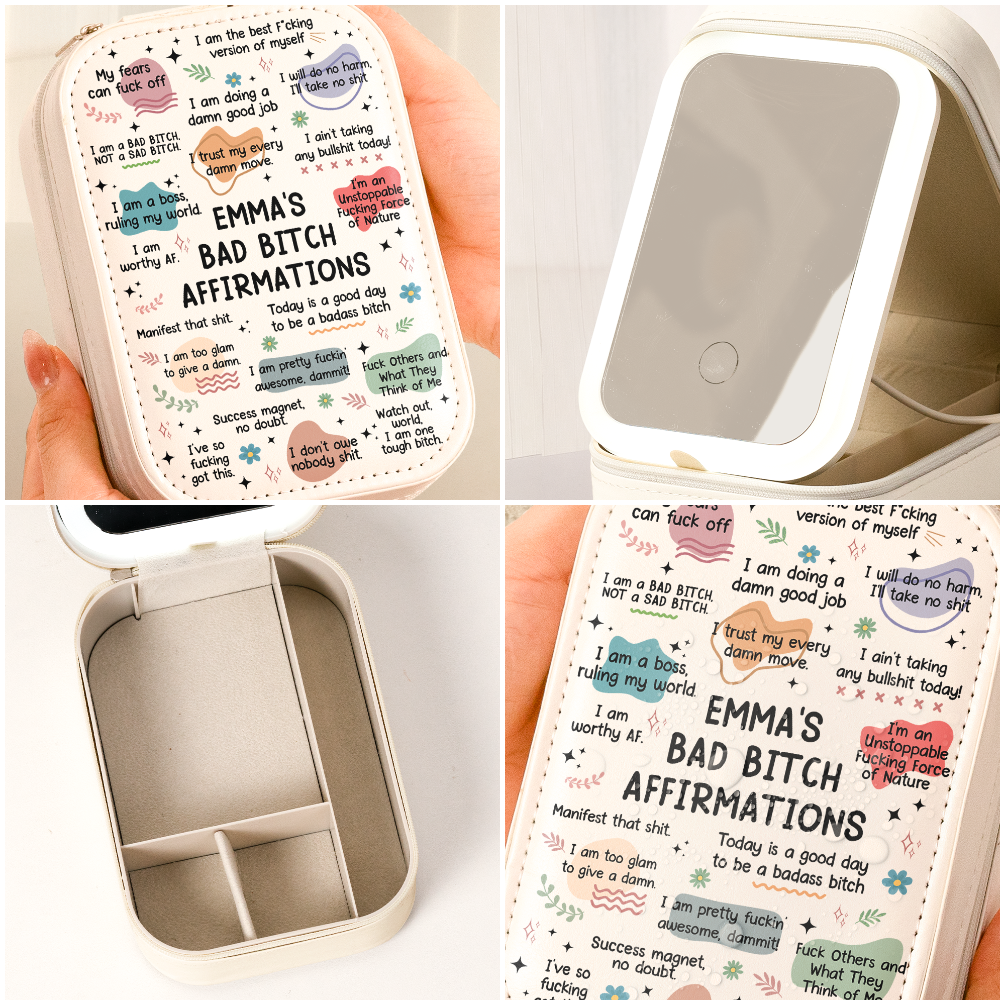A truly heartfelt gift, this Custom Makeup Box With LED Mirror is a constant reminder of love and encouragement. Perfect for birthdays, Mother’s Day, Valentine’s Day, Christmas, anniversaries, graduations, or just because, this thoughtful gift from mom to daughter, granddaughter, mom, sisters, friends, or any special woman in your life will light up their space and their heart.