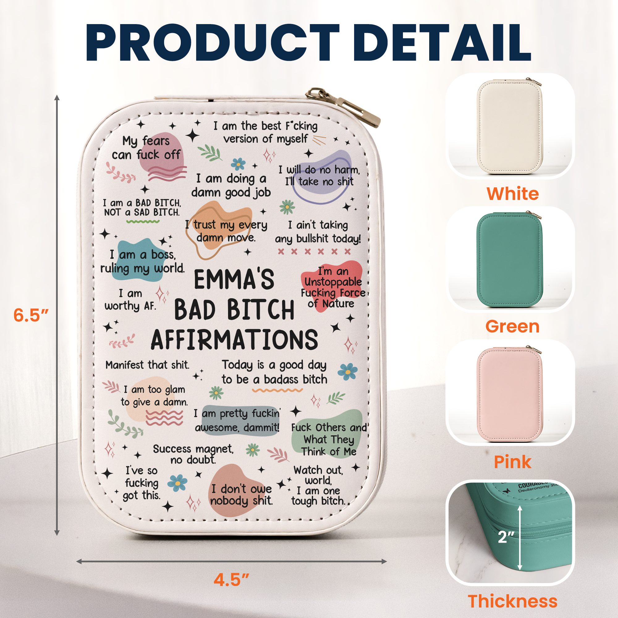 - Material: Crafted from high-quality PU leather, this makeup bag is durable, dustproof, and easy to clean.