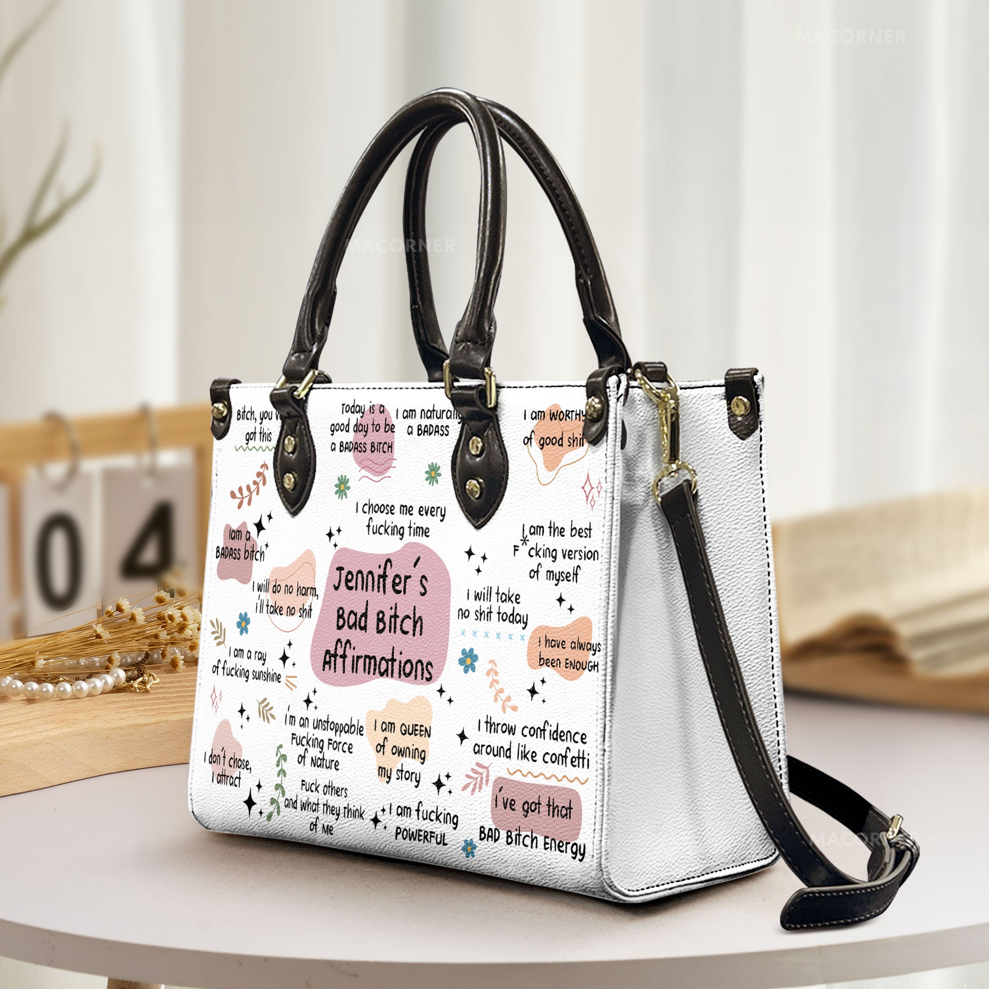 Elevate your style with the Bad B*tch Affirmations Personalized Leather Bag, the perfect blend of sass and sophistication! Ideal for coworkers, friends, or yourself, this bag features bold affirmations that celebrate confidence and individuality. A chic and functional gift for Christmas, birthdays, or any occasion, it’s perfect for work, travel, or everyday use. Make a statement with a leather bag that’s as fierce and fabulous as you are!