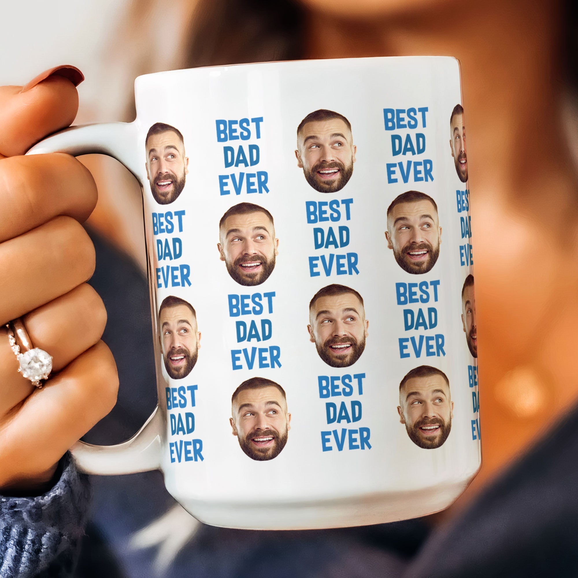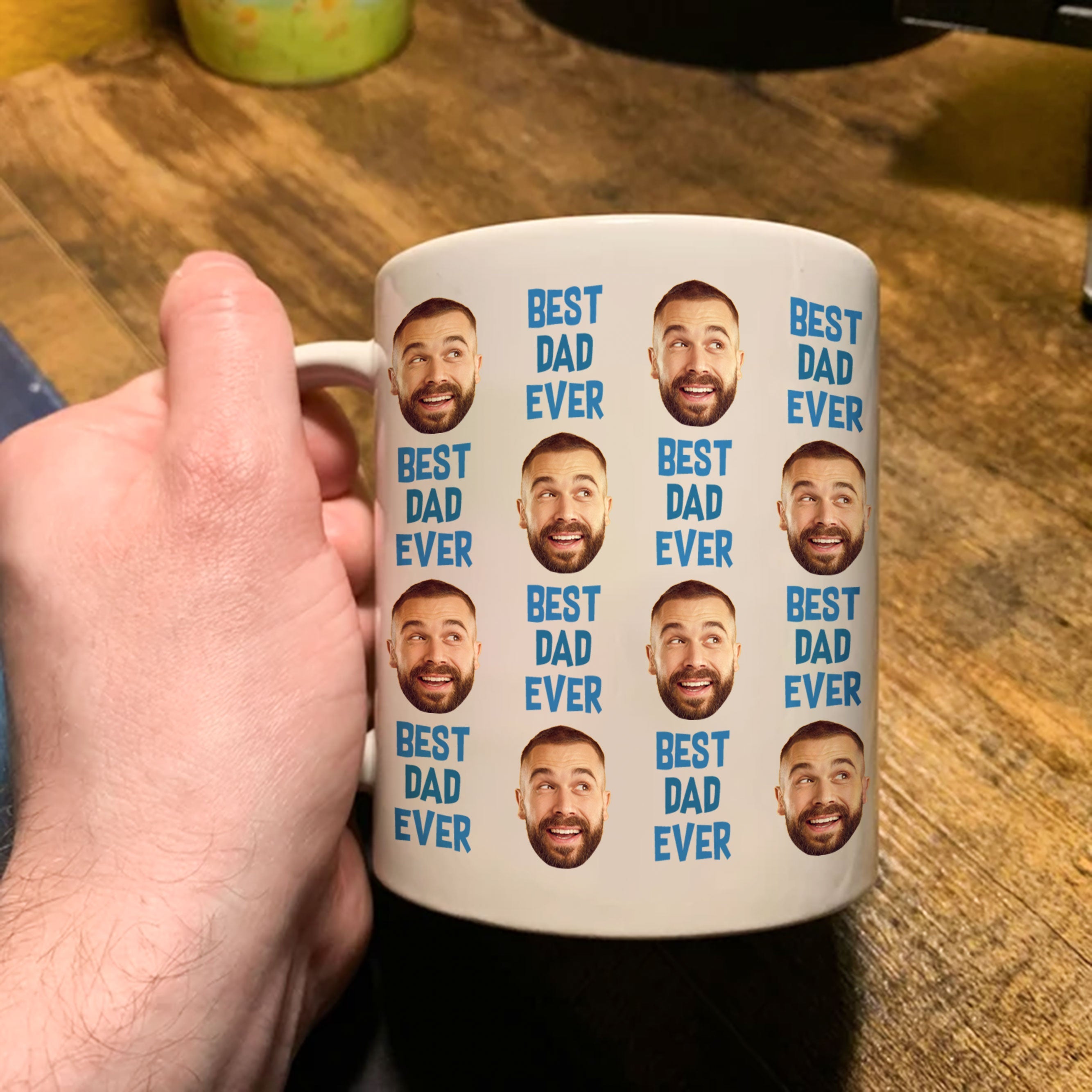 Celebrate the extraordinary bond with your dad by gifting him this personalized Father Photo Mug, a unique and heartwarming token of your love and appreciation. This one-of-a-kind mug features a custom image of your father's smiling face, capturing cherished moments that reflect the joy and warmth he brings to your life. The phrase "Best Dad Ever" adorns the mug, serving as a constant reminder of the special place he holds in your heart.