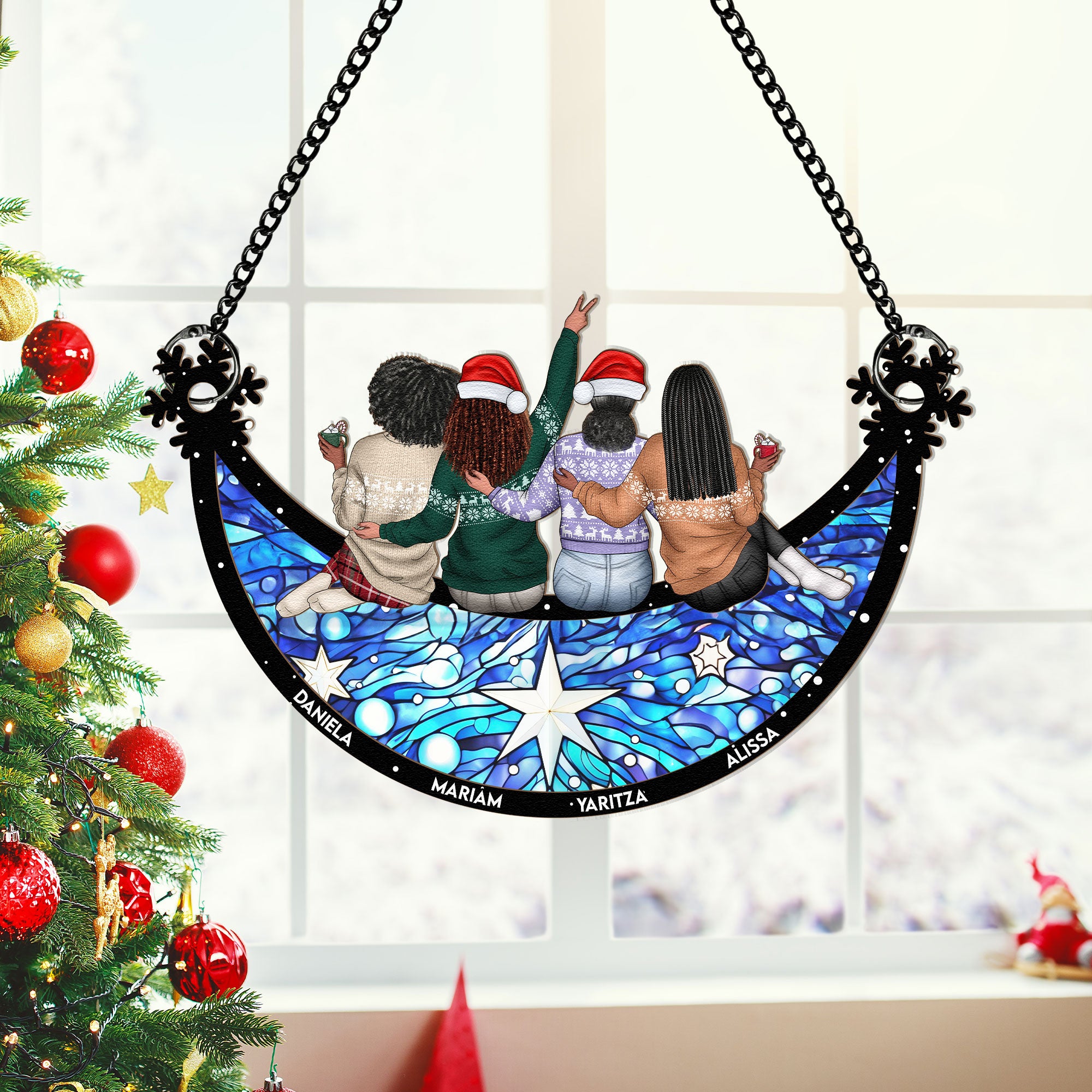 Besties Christmas Together - Personalized Window Hanging Suncatcher Ornament