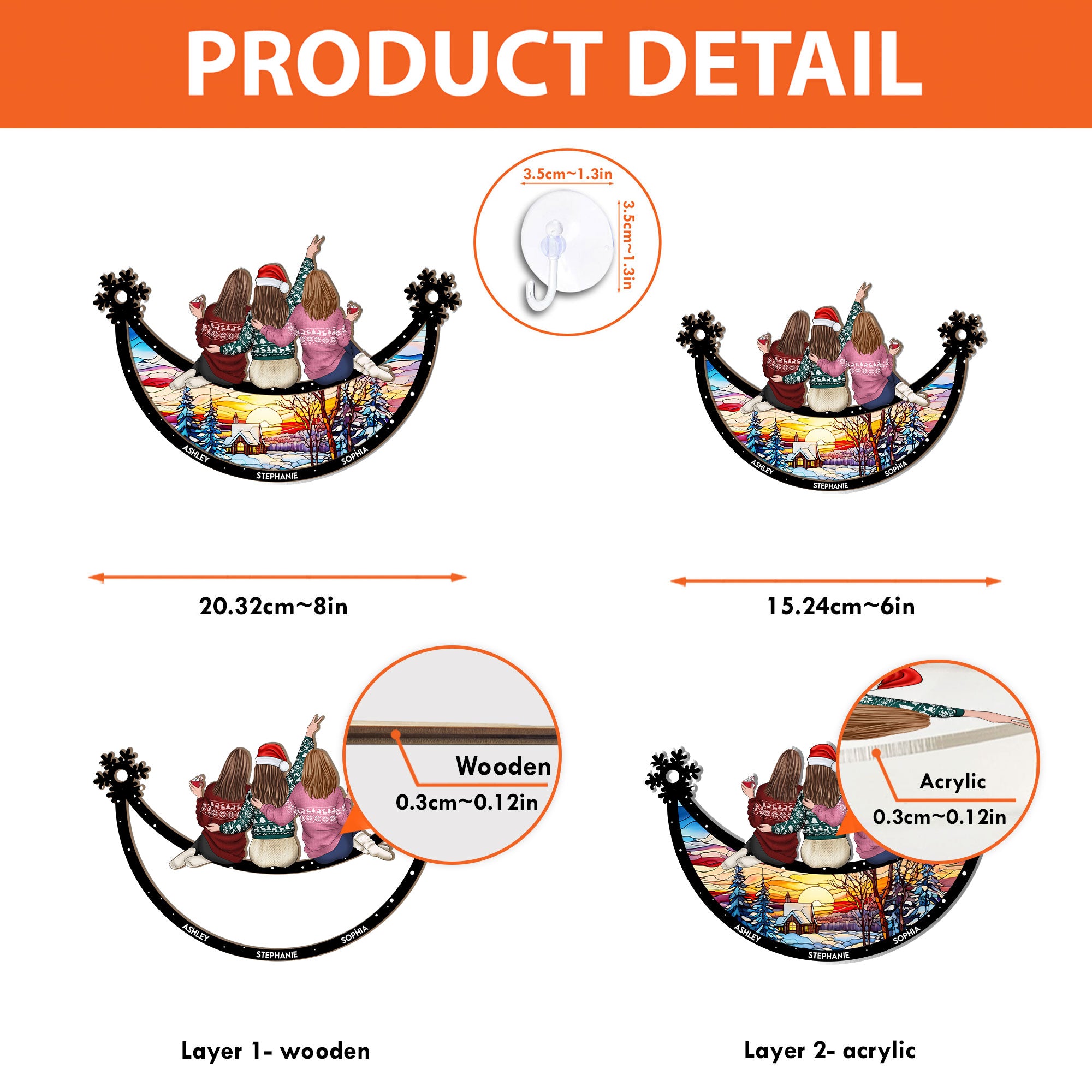 Celebrate the unbreakable bond of friendship with this beautifully crafted window hanging suncatcher ornament. Perfect for birthdays, anniversaries, or Christmas, this thoughtful gift captures the joy and warmth shared between best friends. The vibrant colors and personalized design make it a meaningful keepsake that will brighten any room, reminding you and your besties of the cherished memories and love that connect you. Whether it's for a special occasion or just because, this suncatcher is the perfect way to show your friends how much they mean to you, every single day.