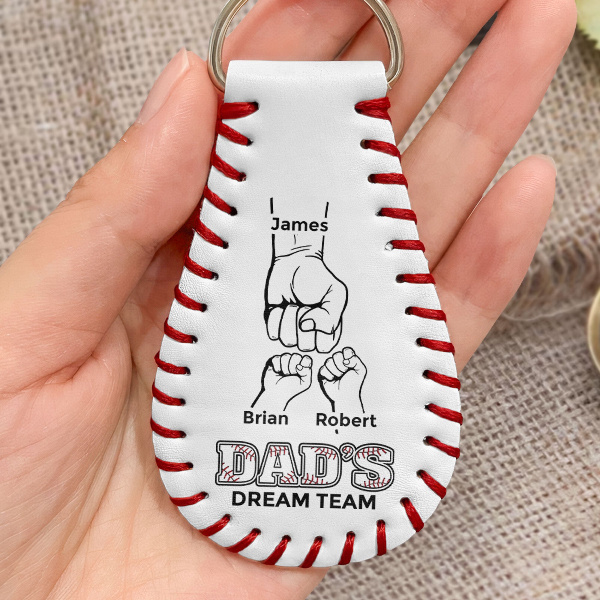 This keychain is absolutely fantastic! It combines sentiment and style in the most thoughtful way. The "DADDY'S DREAM TEAM" design is not only heartwarming but also cleverly represents the bond between a dad and his children. The personalized fist bump graphic on the back makes it so unique and special, showcasing each family member’s name. It’s the perfect blend of fun and sentimental, making it an ideal gift for any proud dad. This keychain is not just an accessory; it's a keepsake that will be treasured for years to come! A wonderful gift that truly celebrates family.